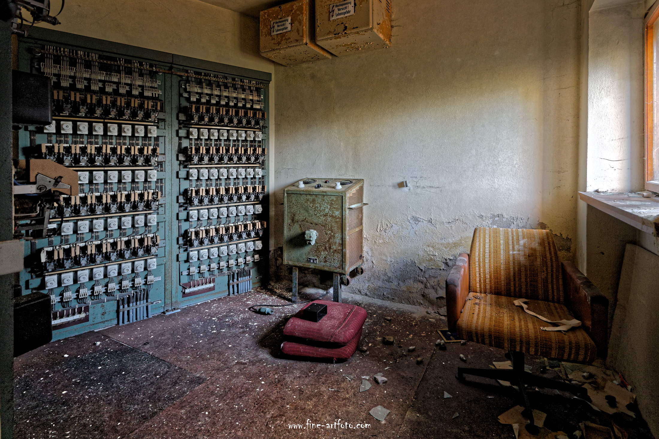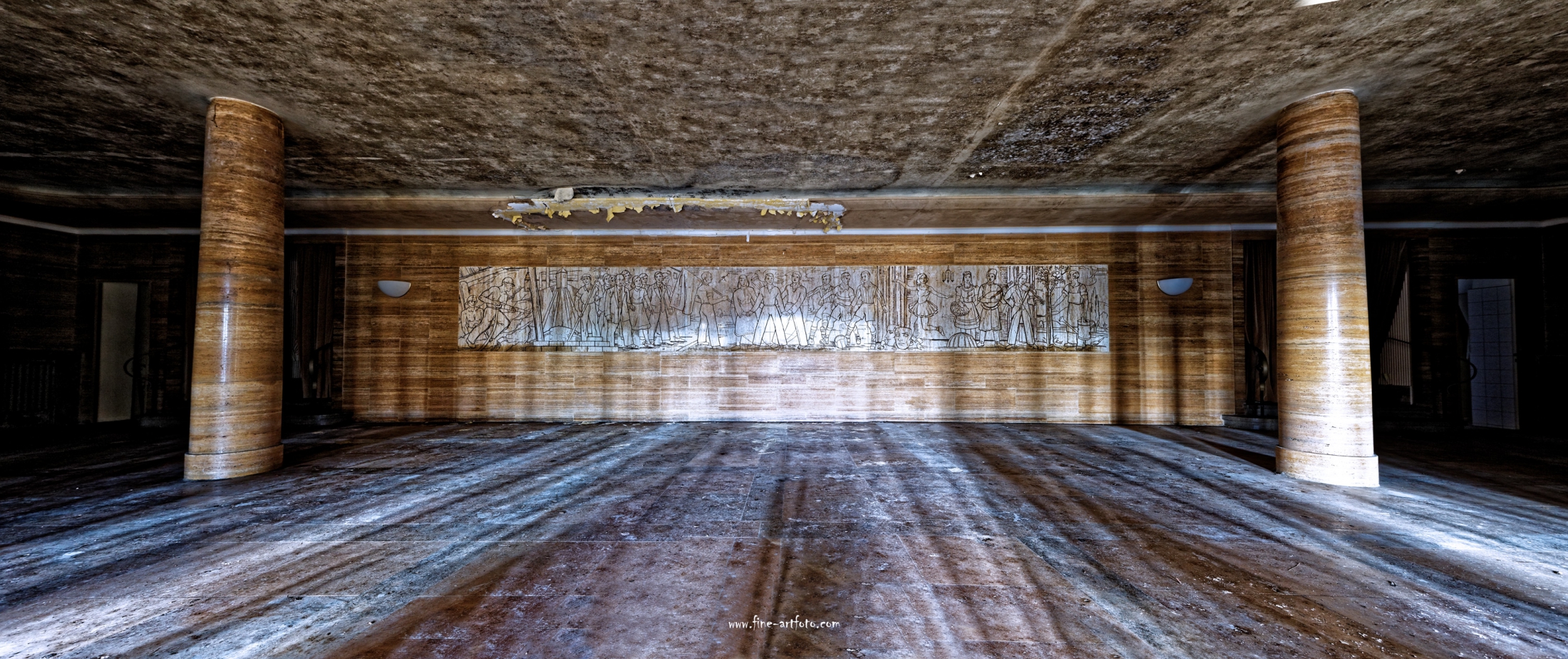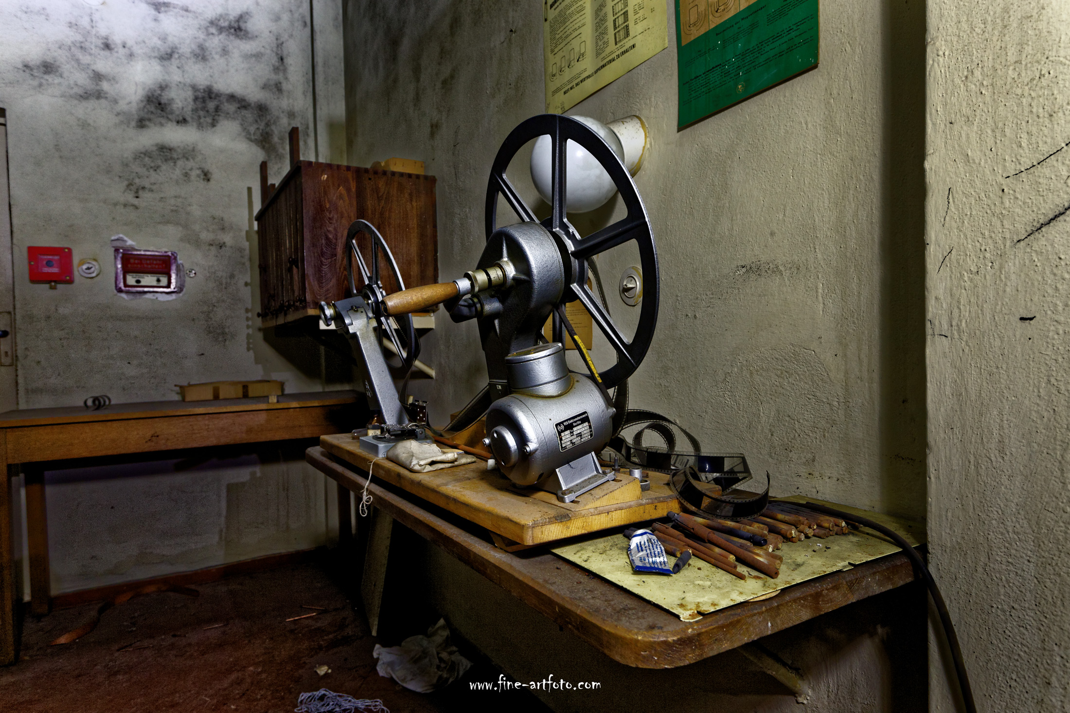 Somewhere in Germany, far out in a very small village rests this huge theater between other big buildings that are still in use and quite actual. The theater can take actors performance as well as serve as a cinema. Besides the cinema all other rooms of the building are completely empty. Construction workers have started to renovate the building.