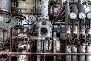 A small factory hidden somewhere in Europe. A stunning place that took my breath away. Pipes, tubes, tanks, pumps and all this connectee by a maze of pipes. Rotting away every day.