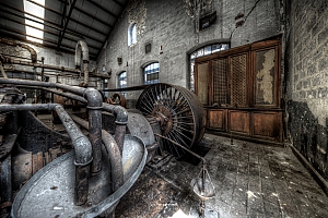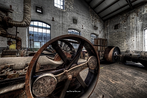 A small factory hidden somewhere in Europe. A stunning place that took my breath away. Imagine all the noise from the single and double cylinder steam engines. The wheels, the belts the turning of metall. The huge number of people in this confined place. A window into time just 70 years back.