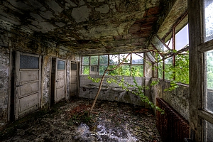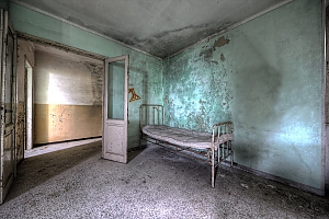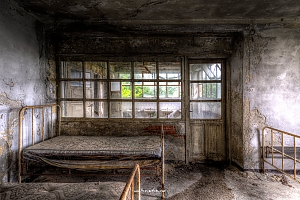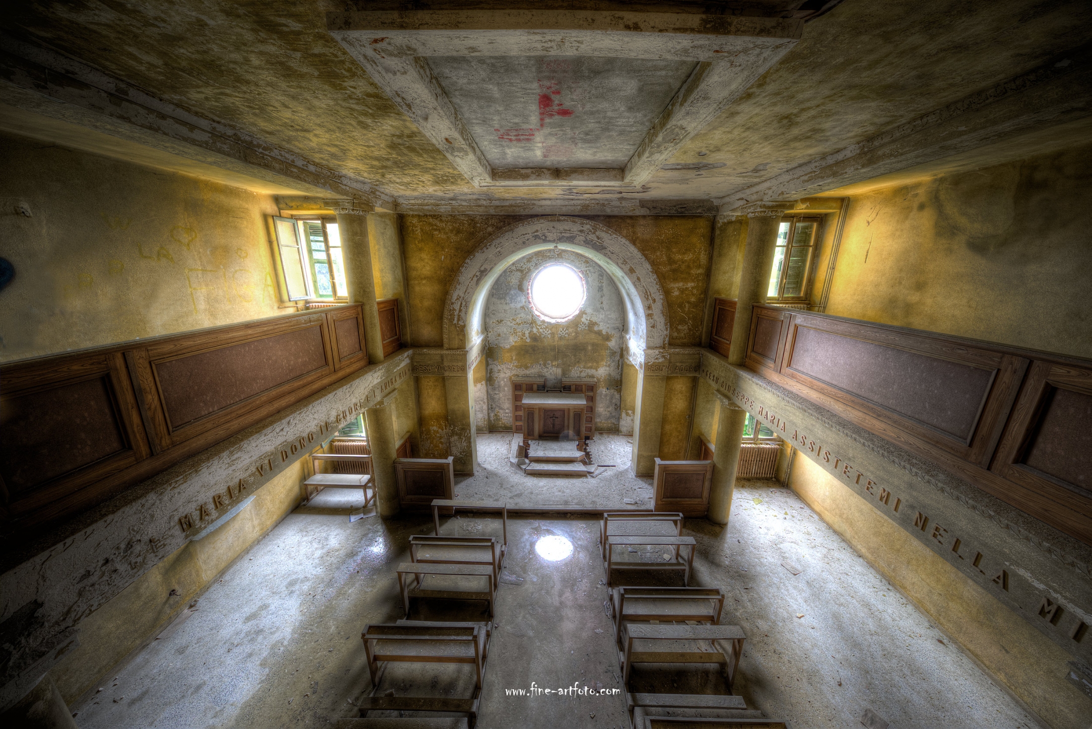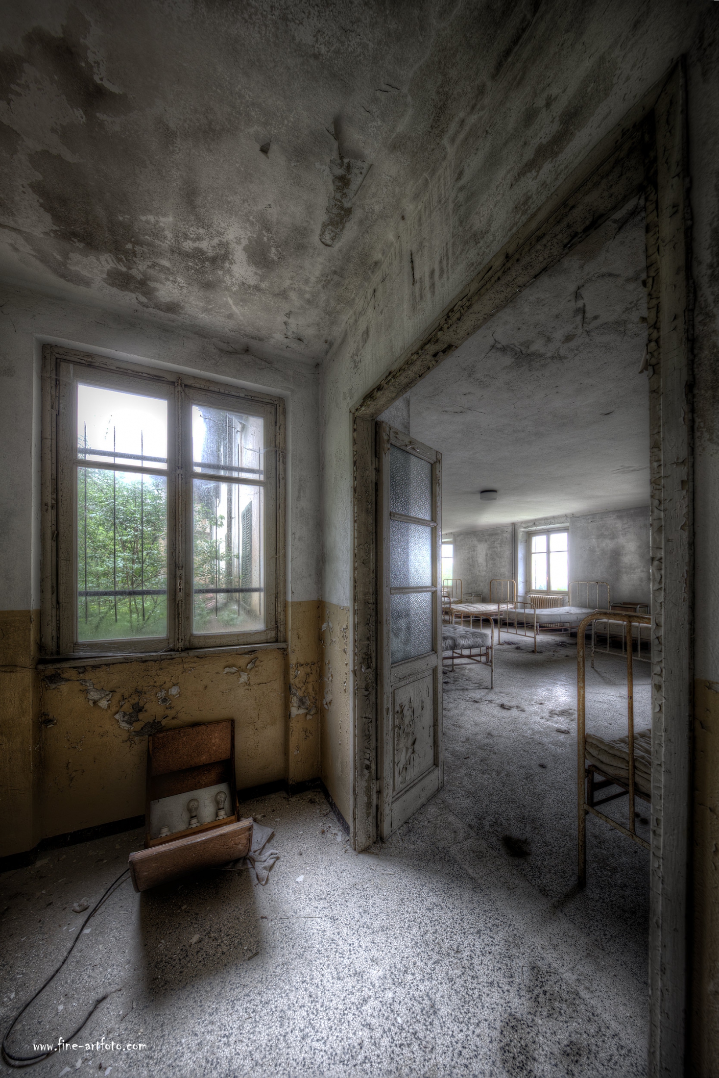Somewhere far out in an idyllic lakeview surrounding, hidden in dense foliage lies a catholic children sanatorium. Long abandoned. Rain is seeping through all roofs and floors. You can still feel the stiff and strict ruling that governend the place. A deep devoutness still percolates through all rooms and and now, since the place is so innocently calm you are still touched with belief and a higher spirit.
