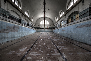 This nice swimming pool lies hidden deep in Germany´s forests. It is part of larger conglomerate of buildings. All lost for a long time. The nice part here is that it is basically untouched. No vandalism and graffiti and a lot of interiour is still undamaged at its place. The place looks like humans just vanished like the water that evaporated from the pool having the lane dividers still now hanging in the air.