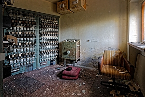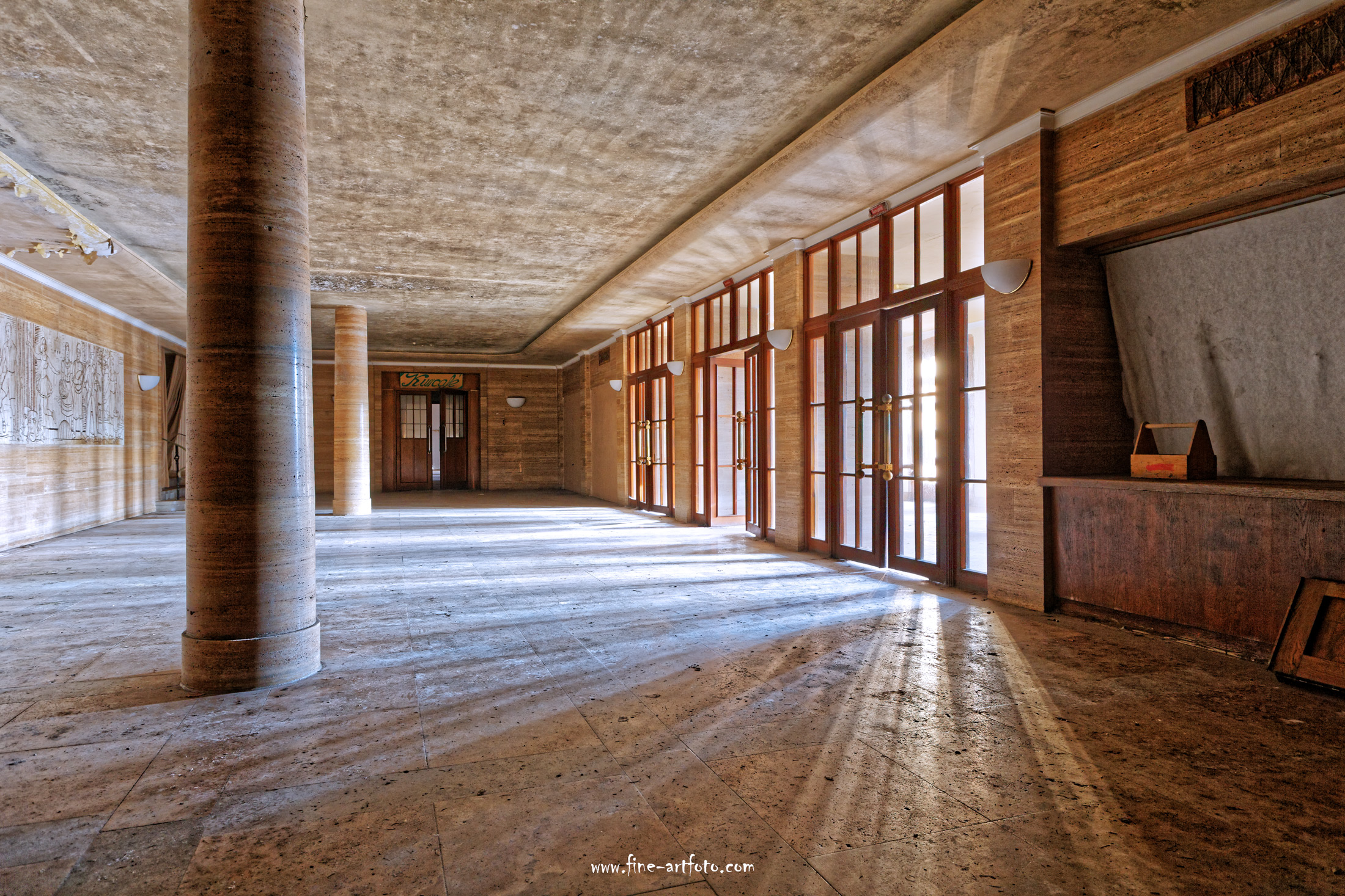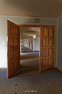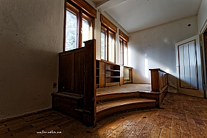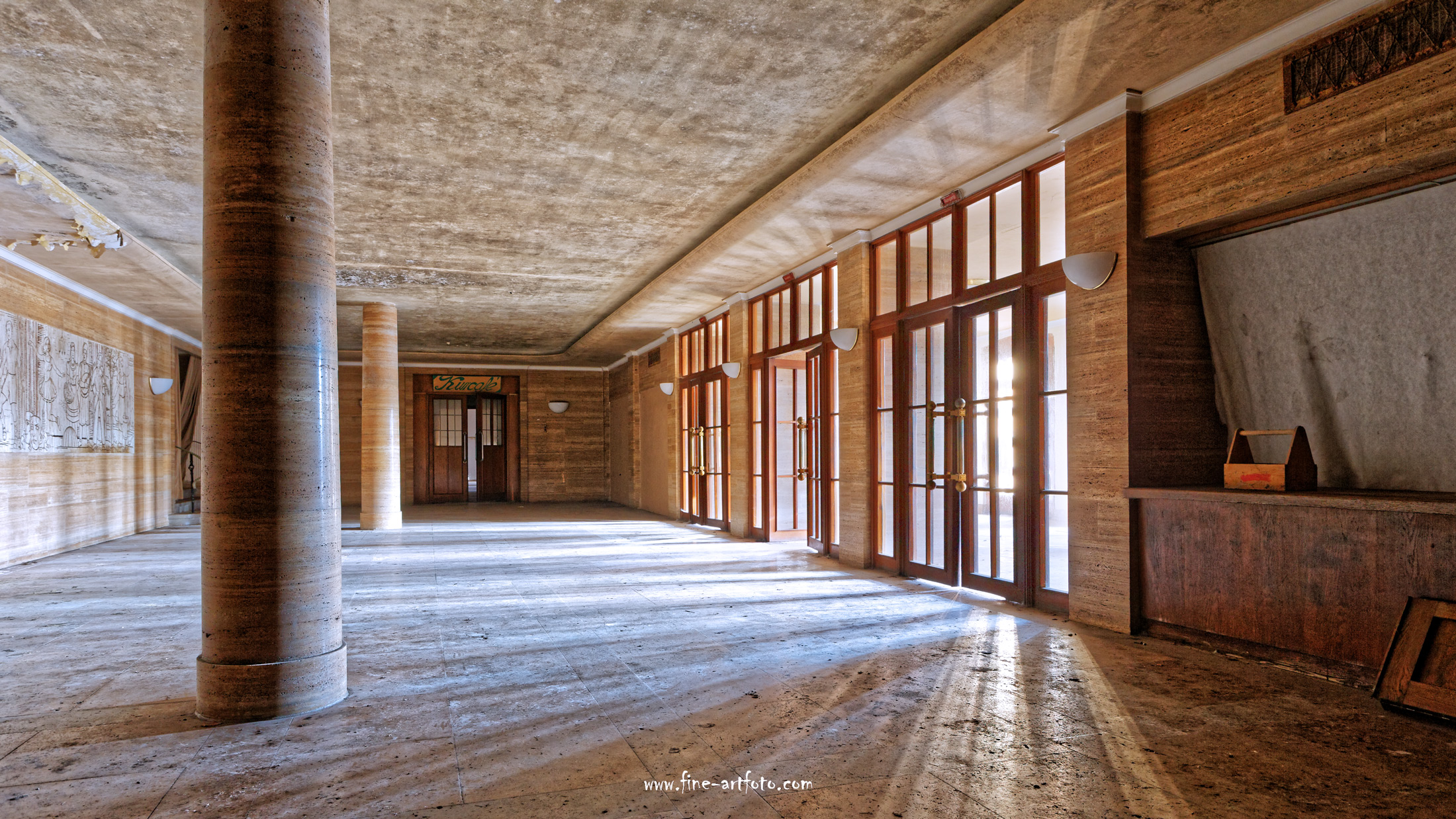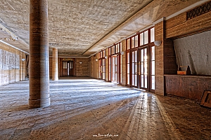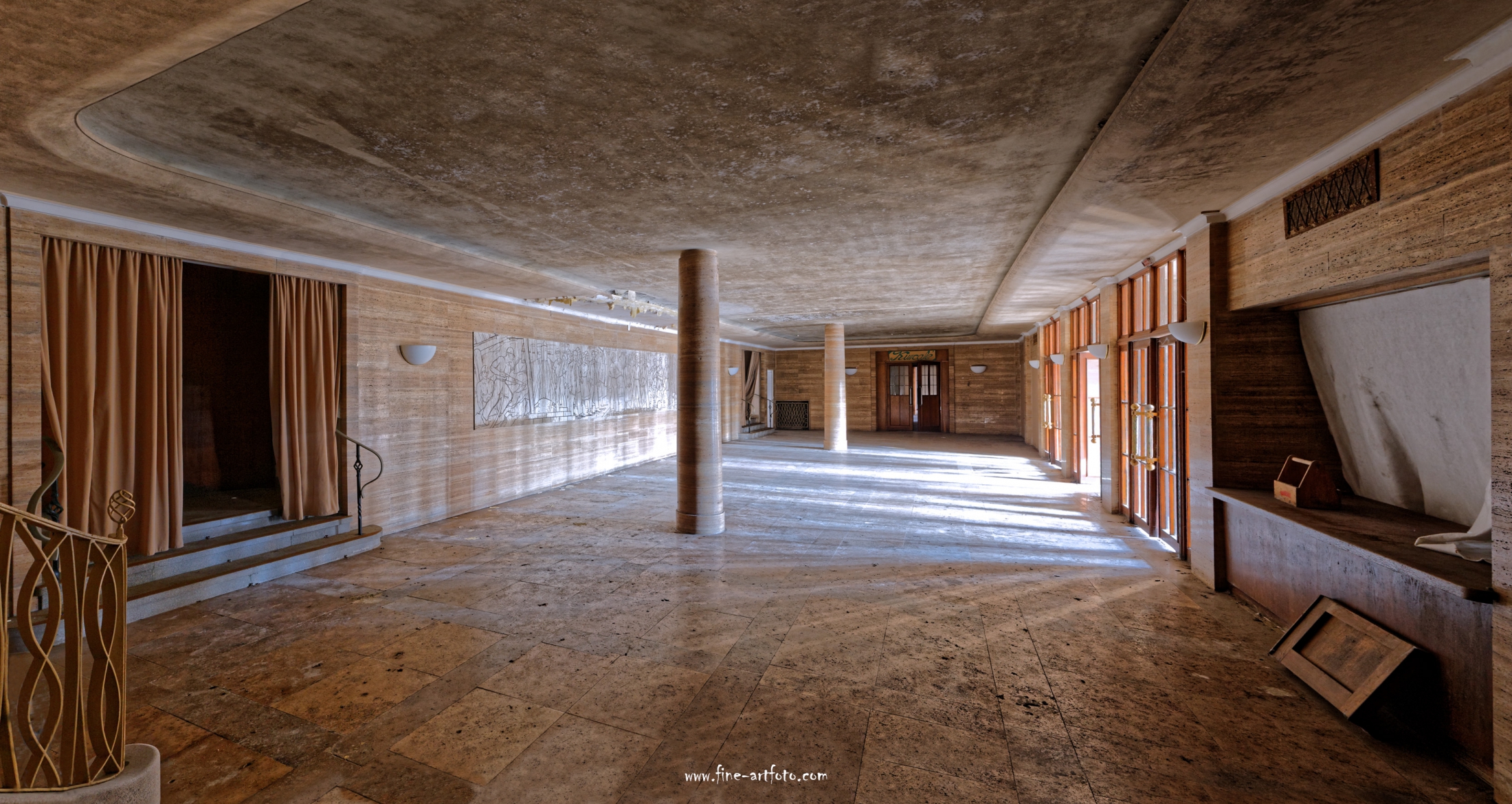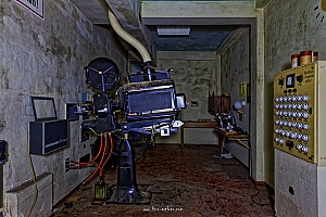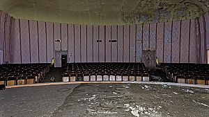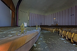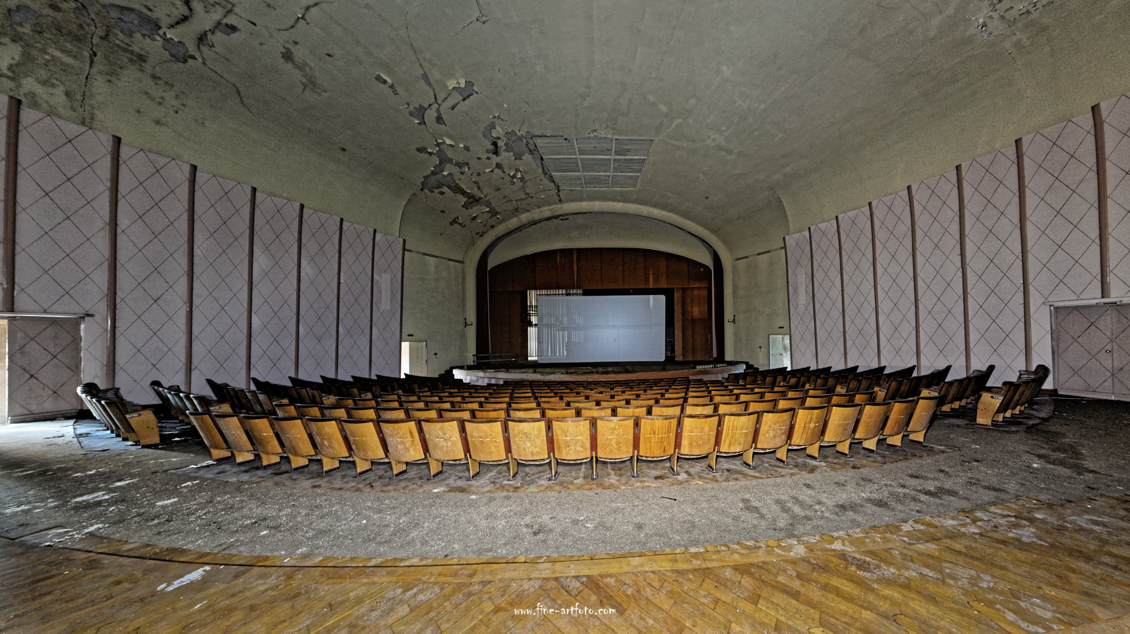 Somewhere in Germany, far out in a very small village rests this huge theater between other big buildings that are still in use and quite actual. The theater can take actors performance as well as serve as a cinema. Besides the cinema all other rooms of the building are completely empty. Construction workers have started to renovate the building.