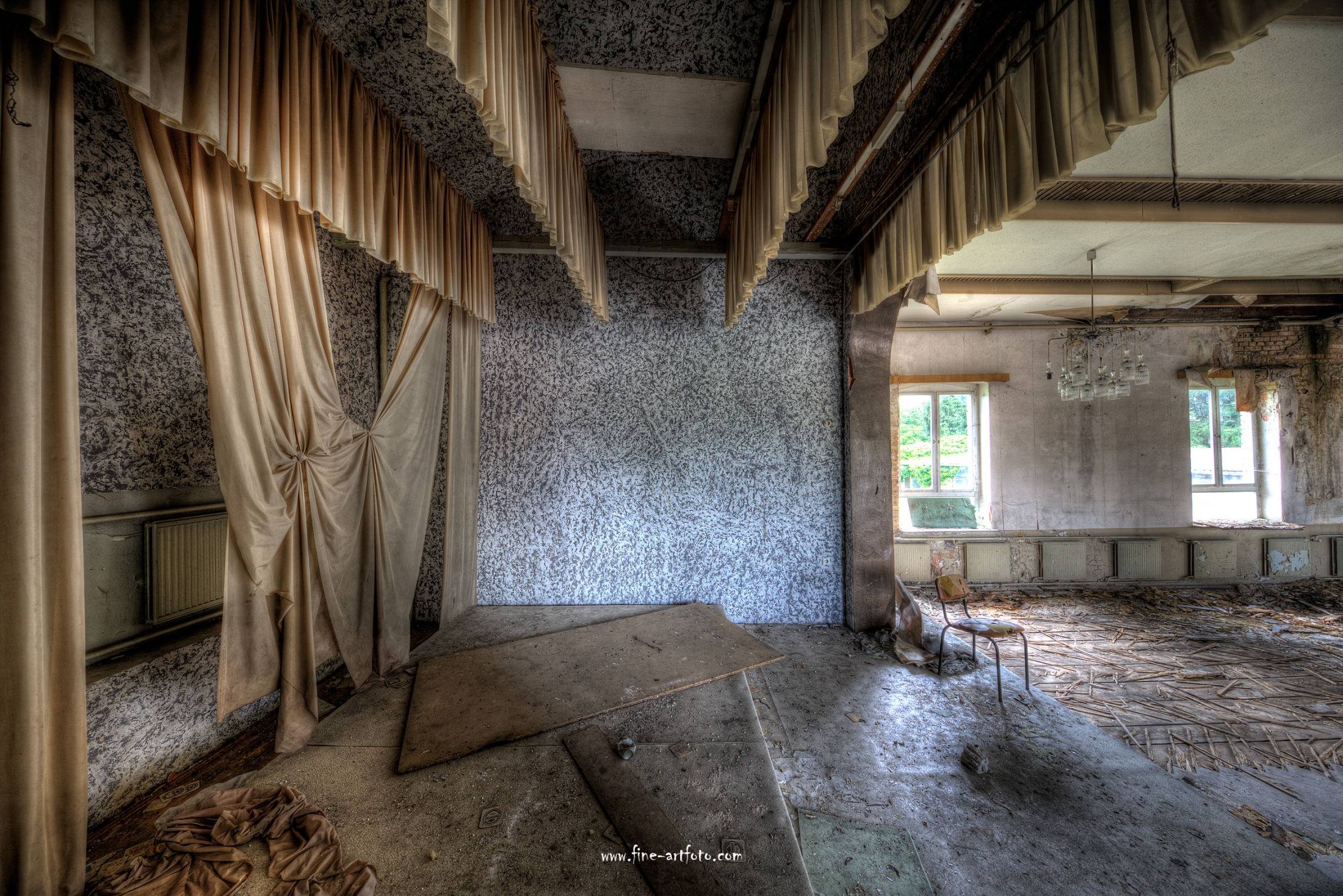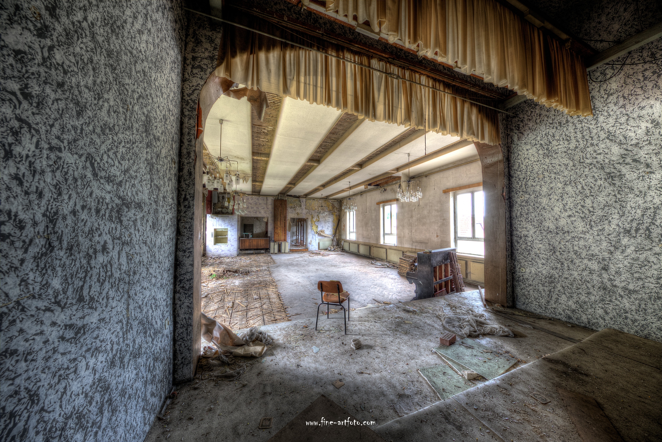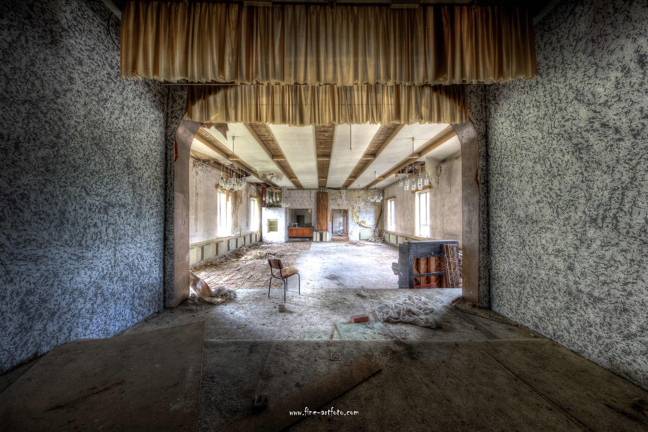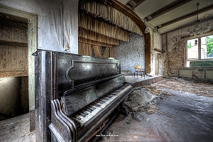 A small former cozy village far in the German outback close to a calm brook. Even being an idyllic place their people partly left the grounds. What is wrong with this place when even the only common and social place is lost, where once weddings, parties and canivals have been celebrated. Future where are you ?