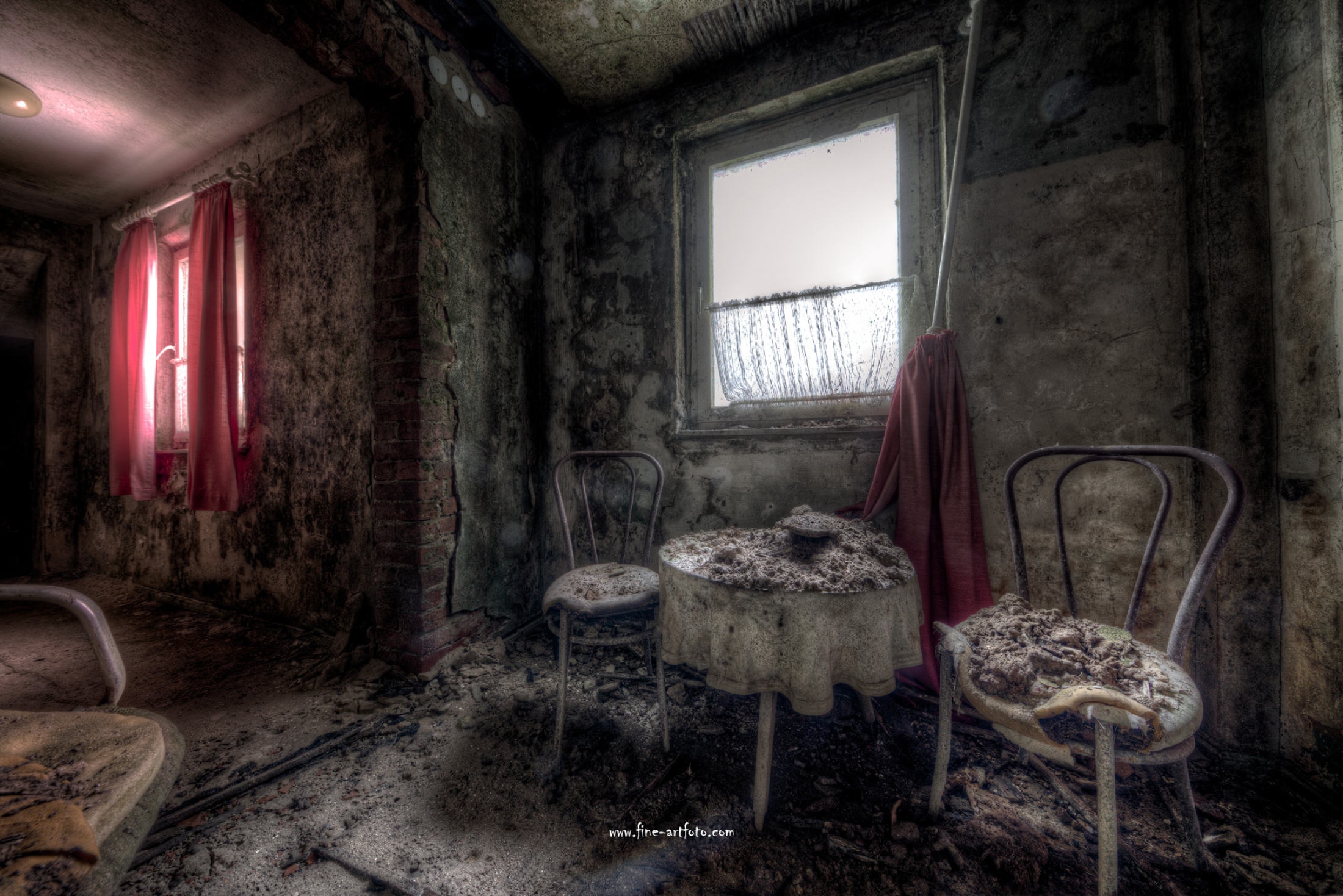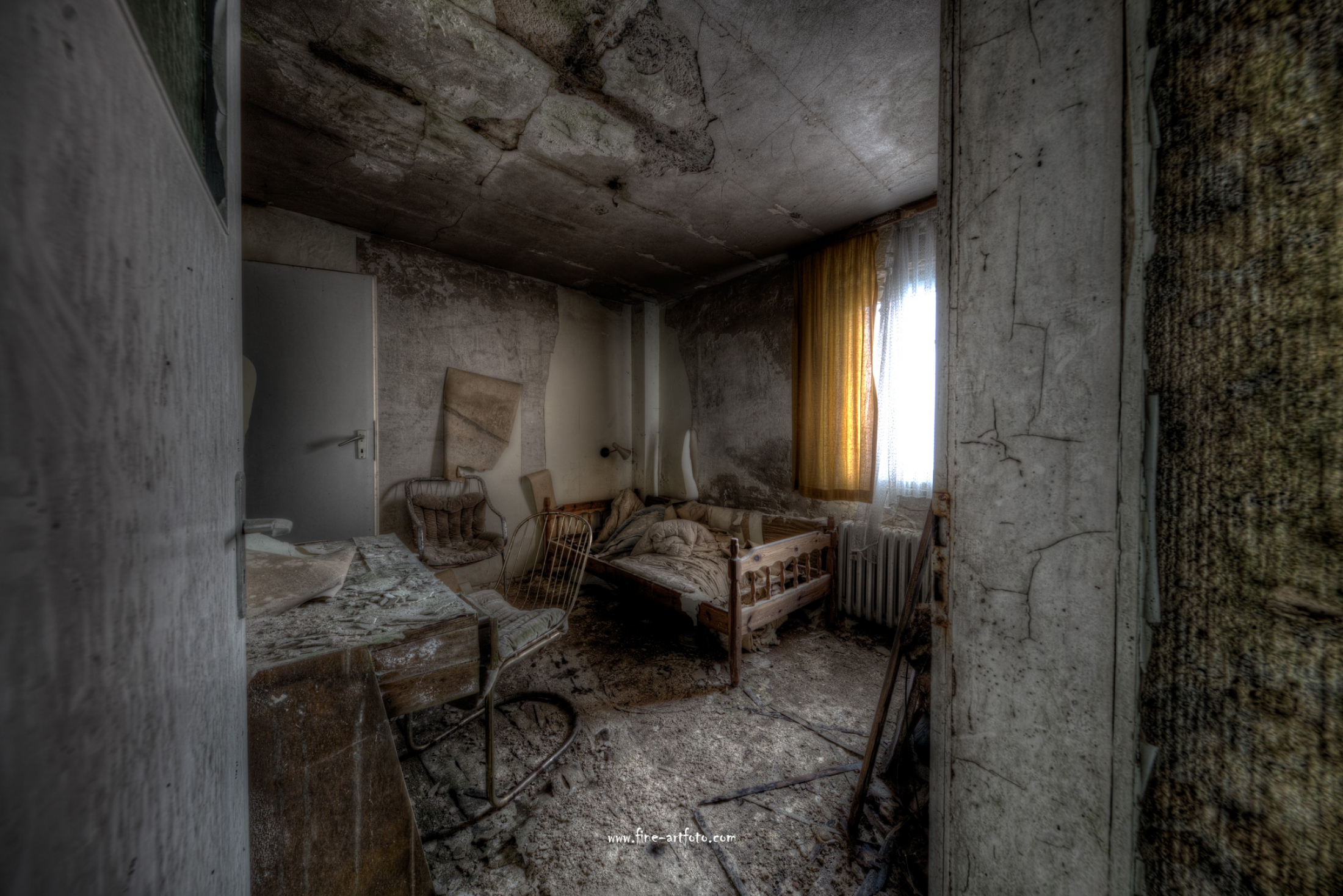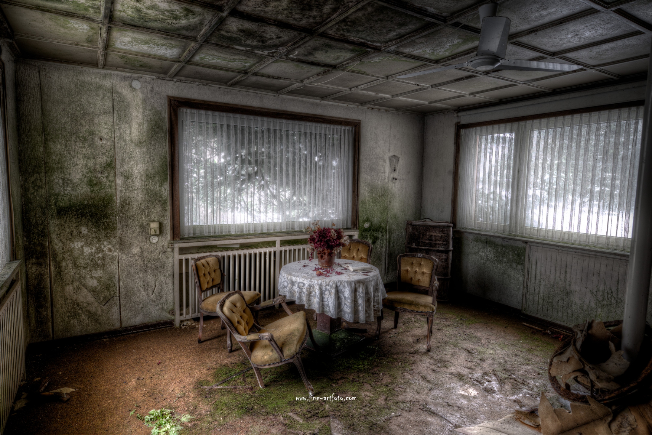 A small city in the mid of Germany with a lot of bankrupt hotels. An ailing area. To poor to even clear the bankrupt house. If a roof leaks this is what it means to decompsition and rotting. The home of mold.