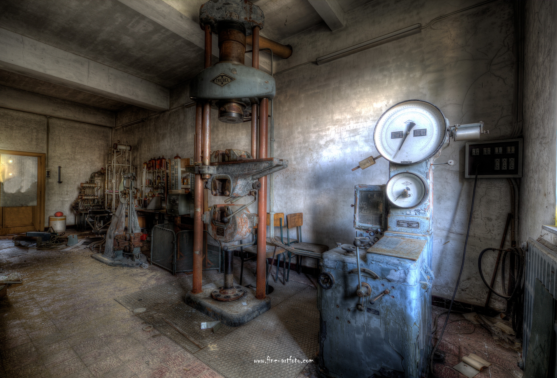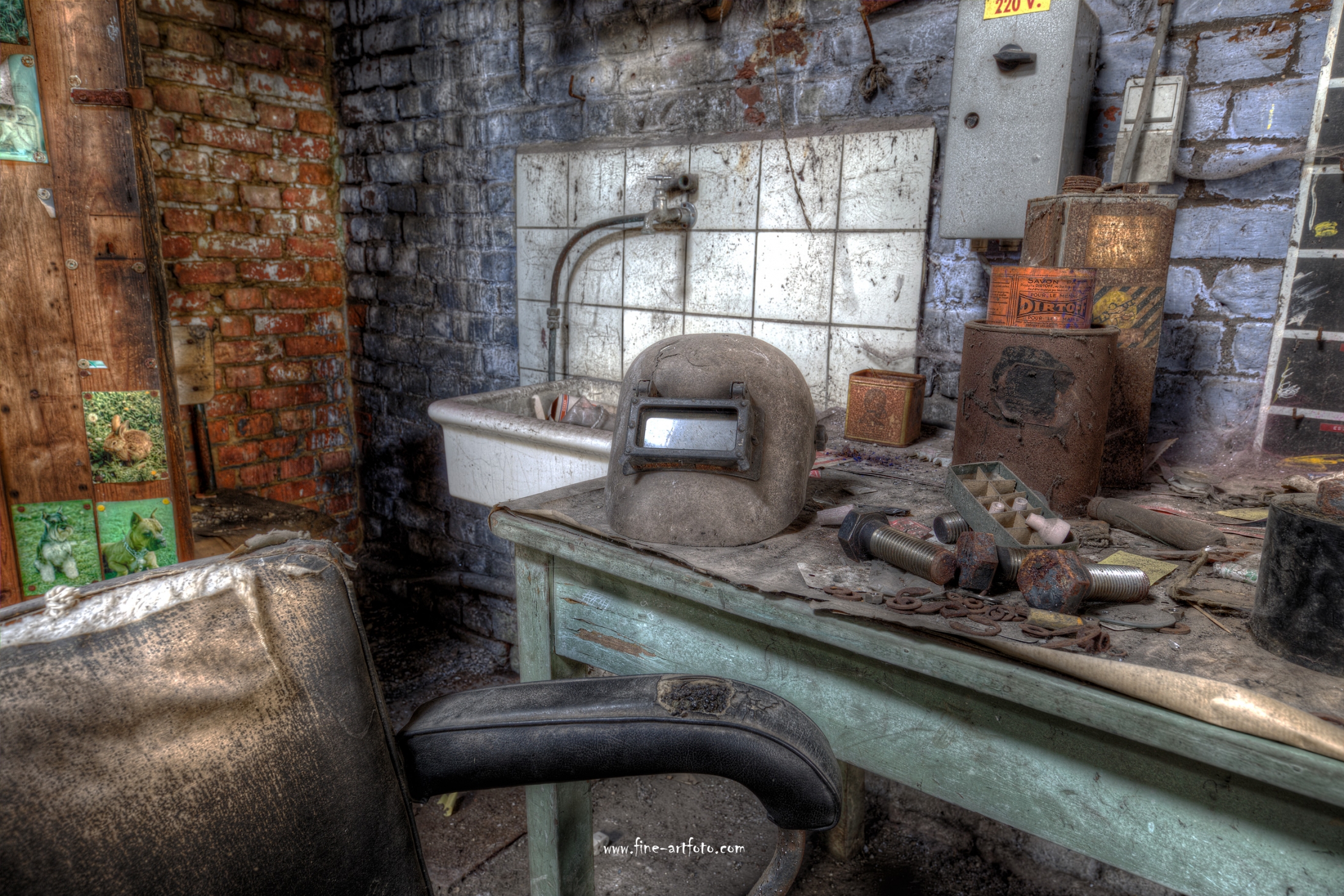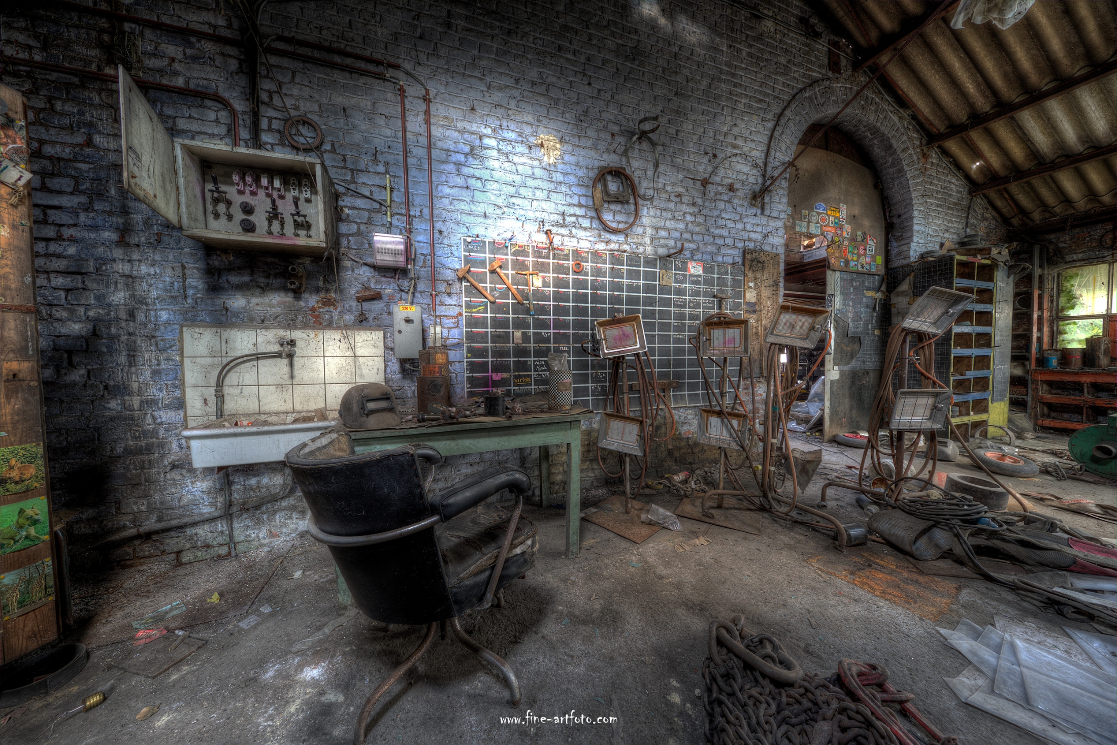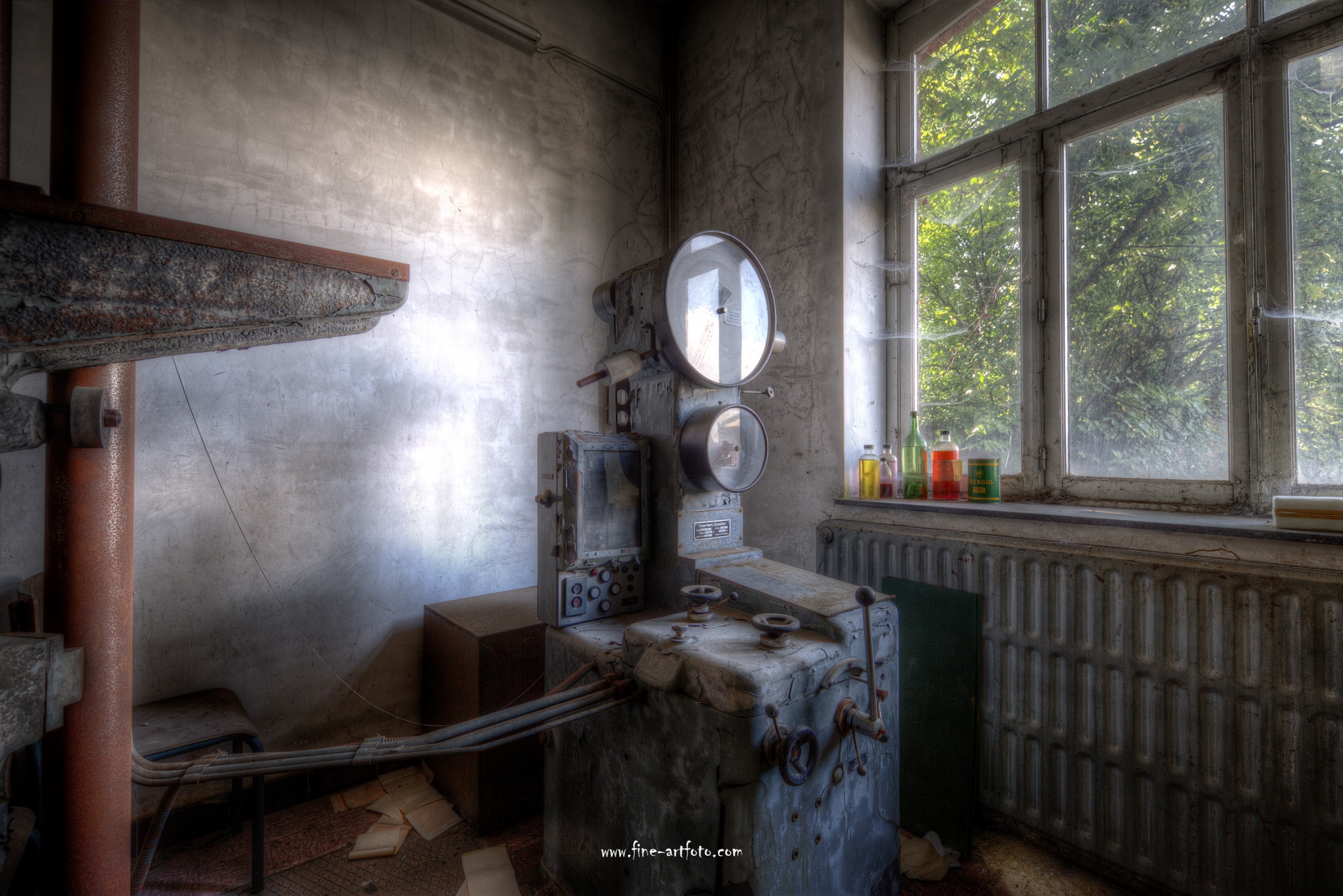 A small /medium enterprise surely run for a generation long, building boilers, just suddenly could not hold up with competition and the fast dvelopments in engeneering. So progress ate it up. Boss and empoyees left the place on their last working day and since then the place is fogotten. The place is full of details and it is still very easy to imagine the place and its hierachy of people working there.