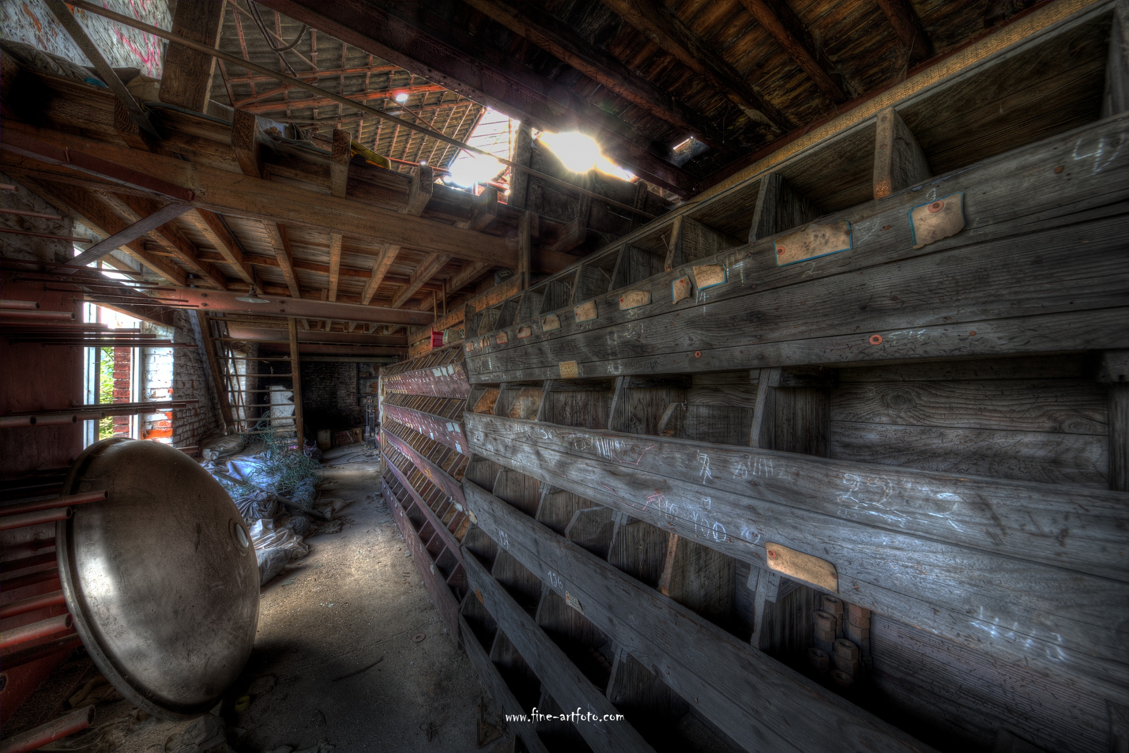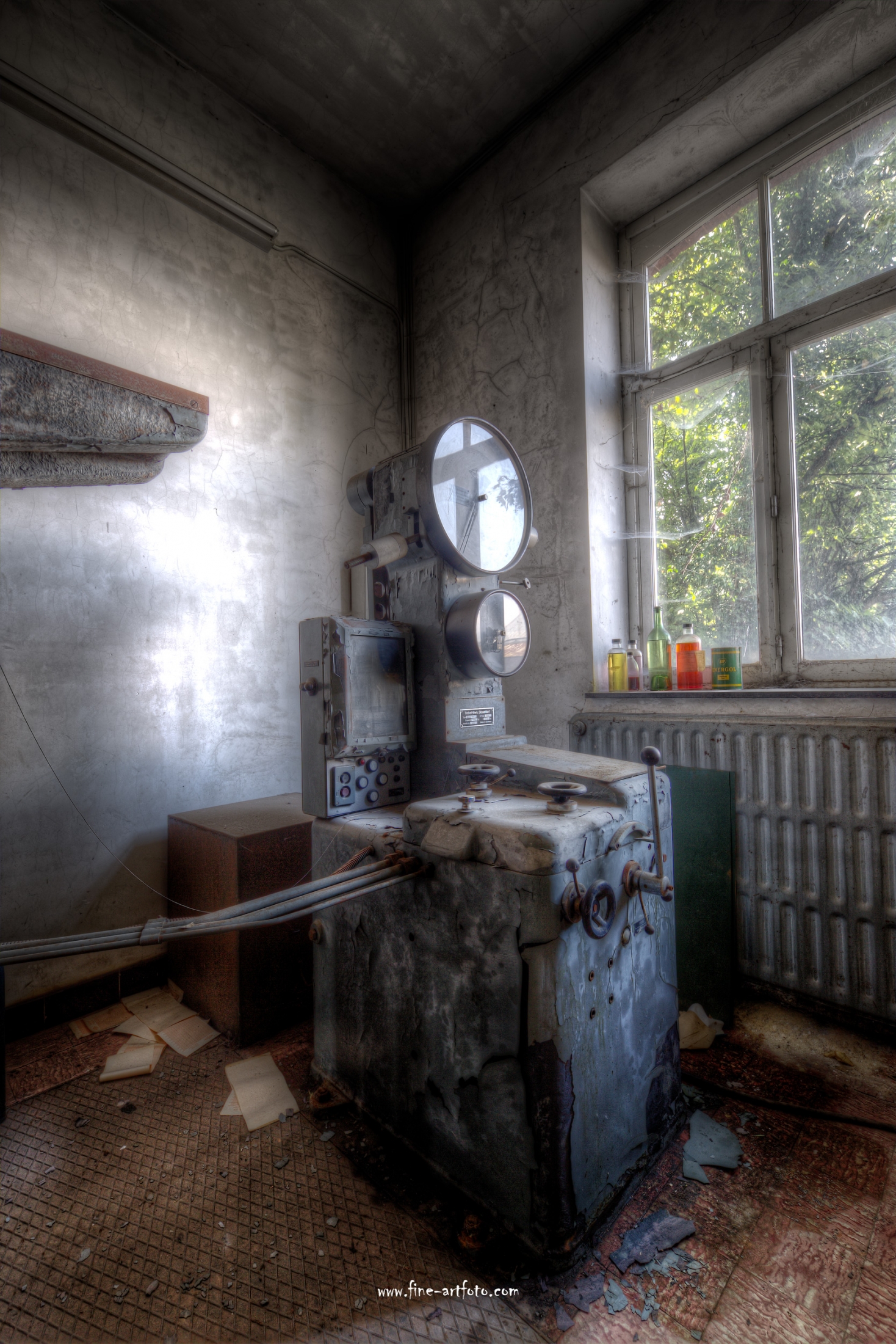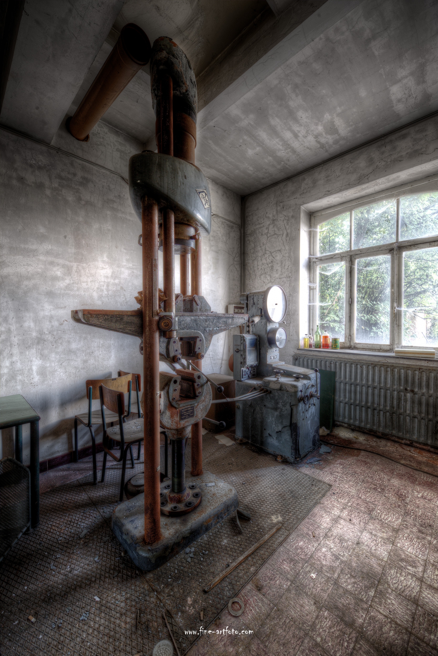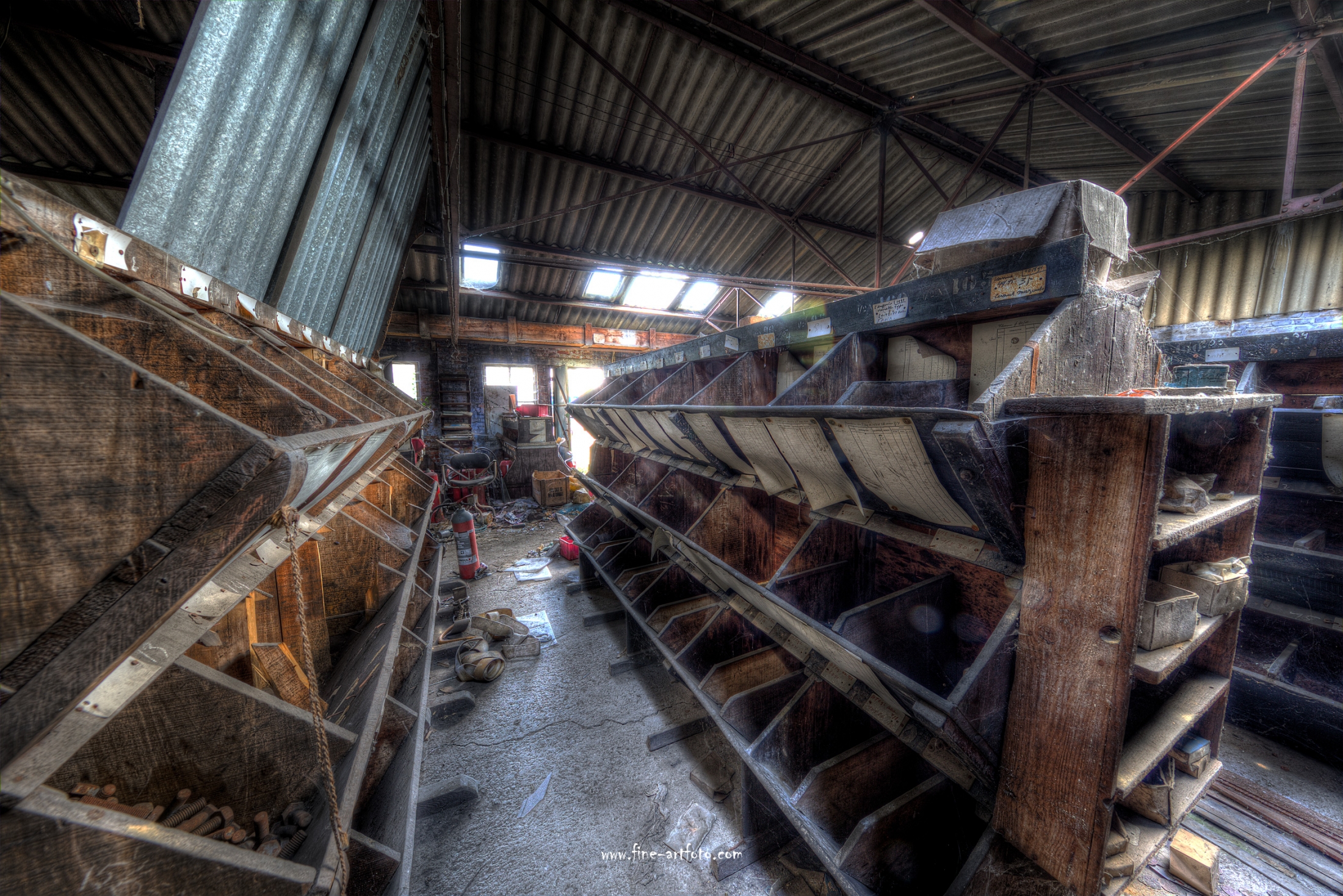 A small /medium enterprise surely run for a generation long, building boilers, just suddenly could not hold up with competition and the fast dvelopments in engeneering. So progress ate it up. Boss and empoyees left the place on their last working day and since then the place is fogotten. The place is full of details and it is still very easy to imagine the place and its hierachy of people working there.
