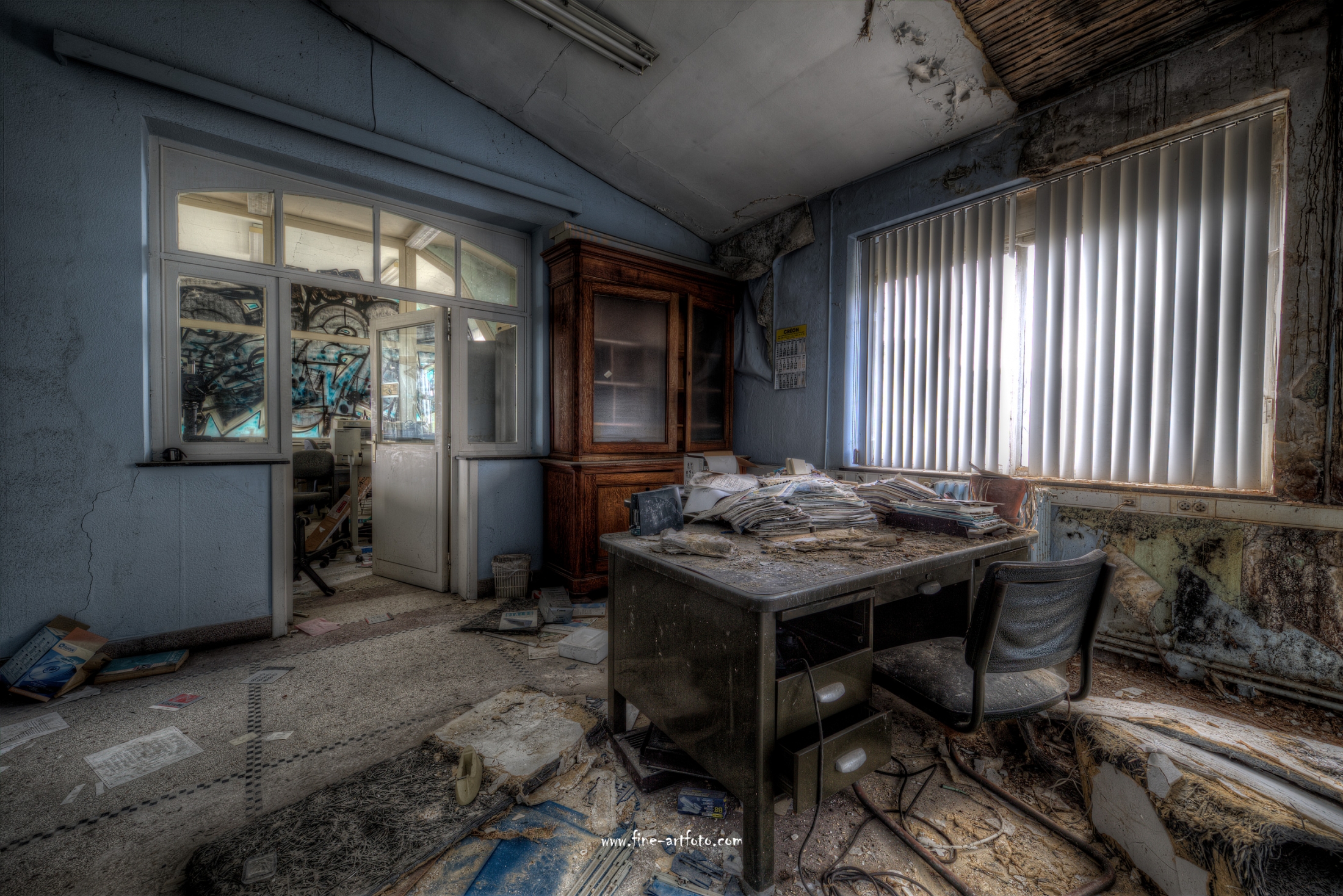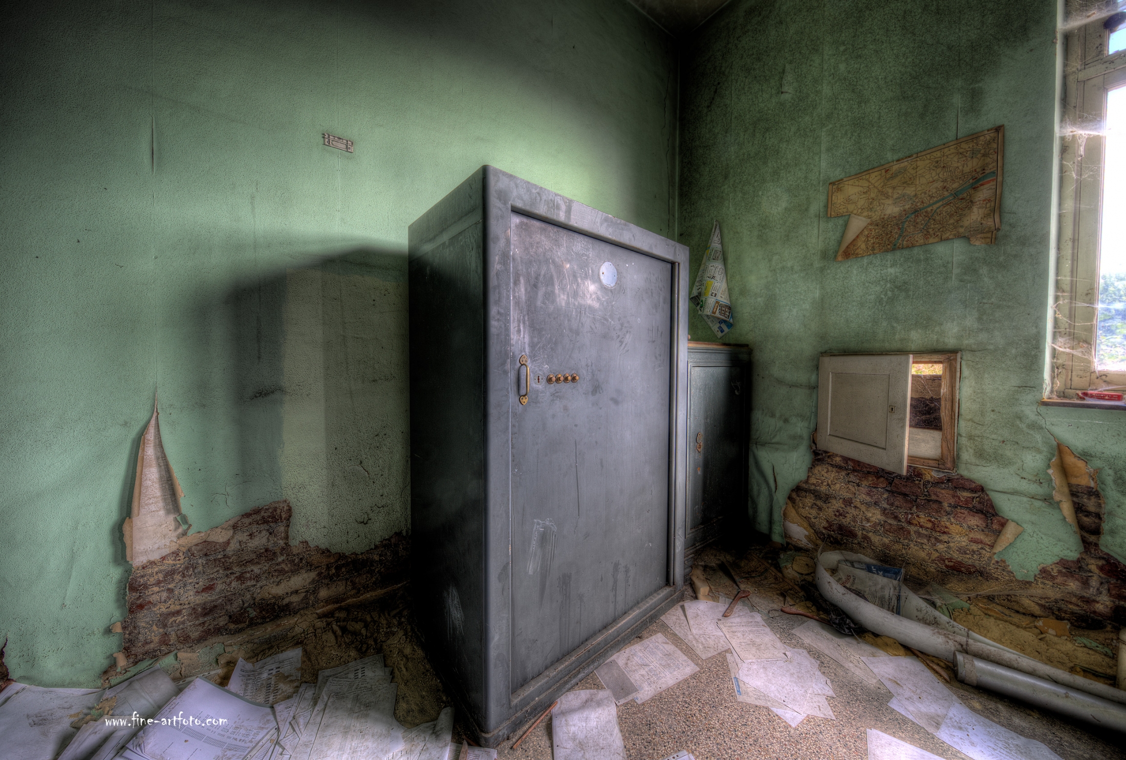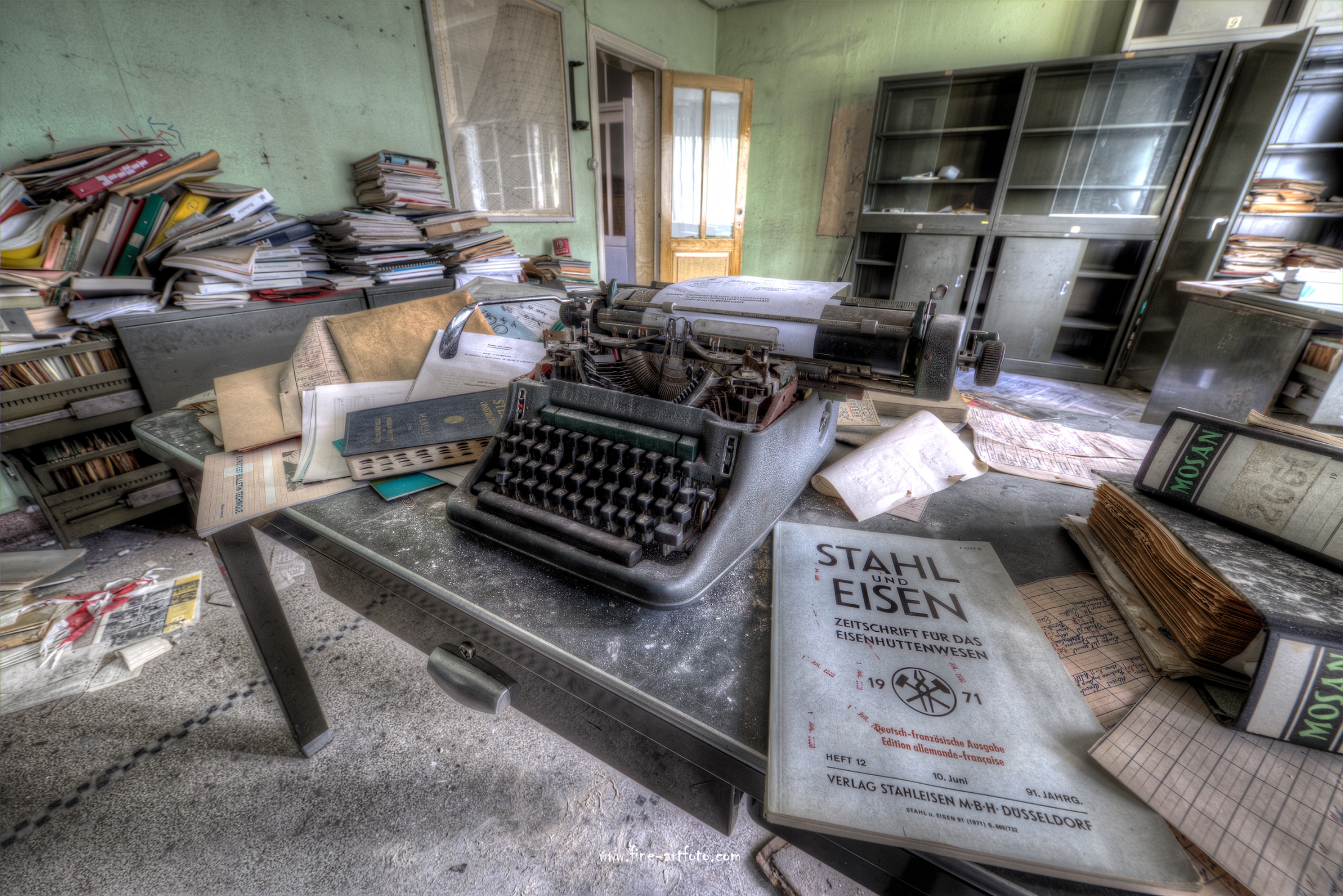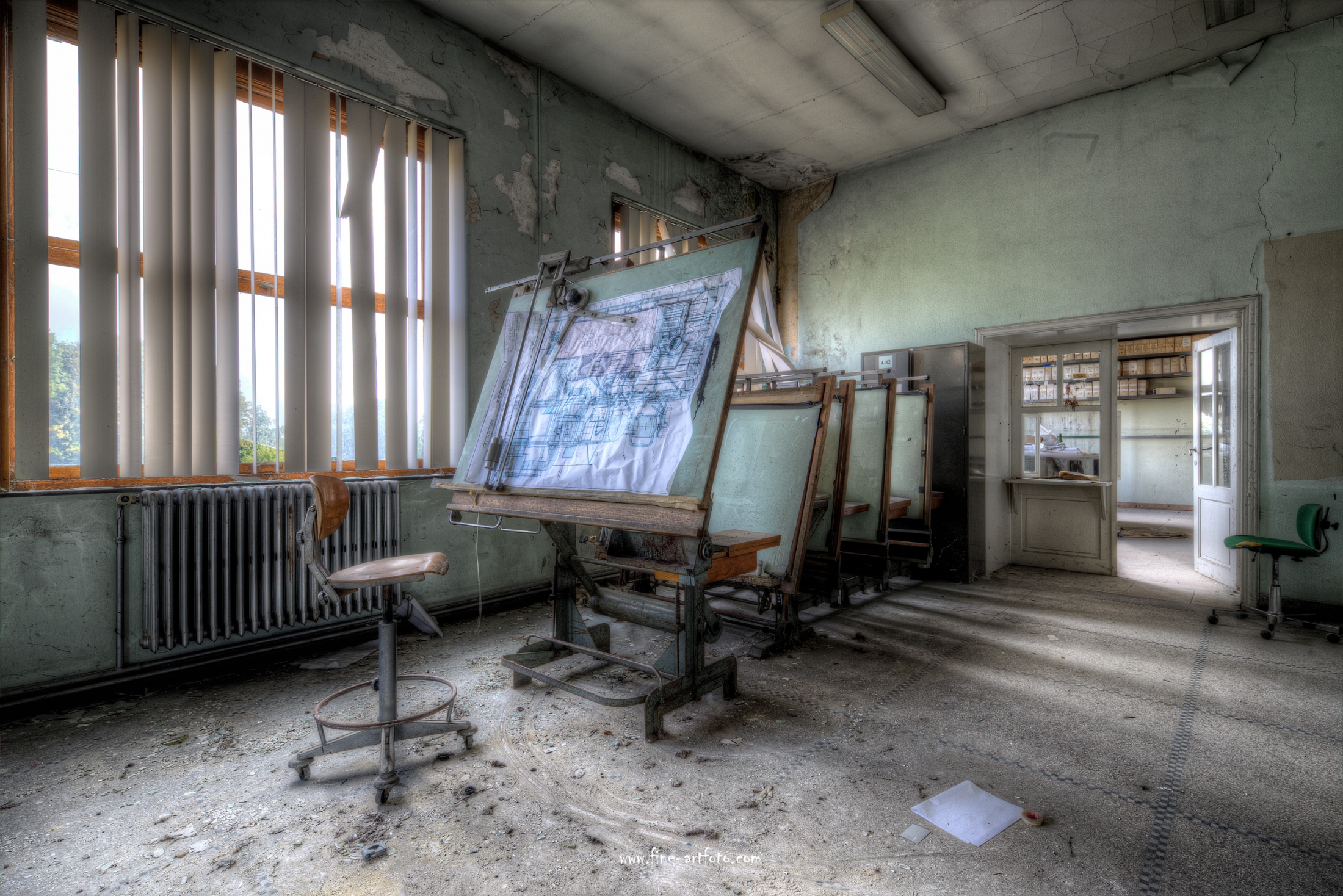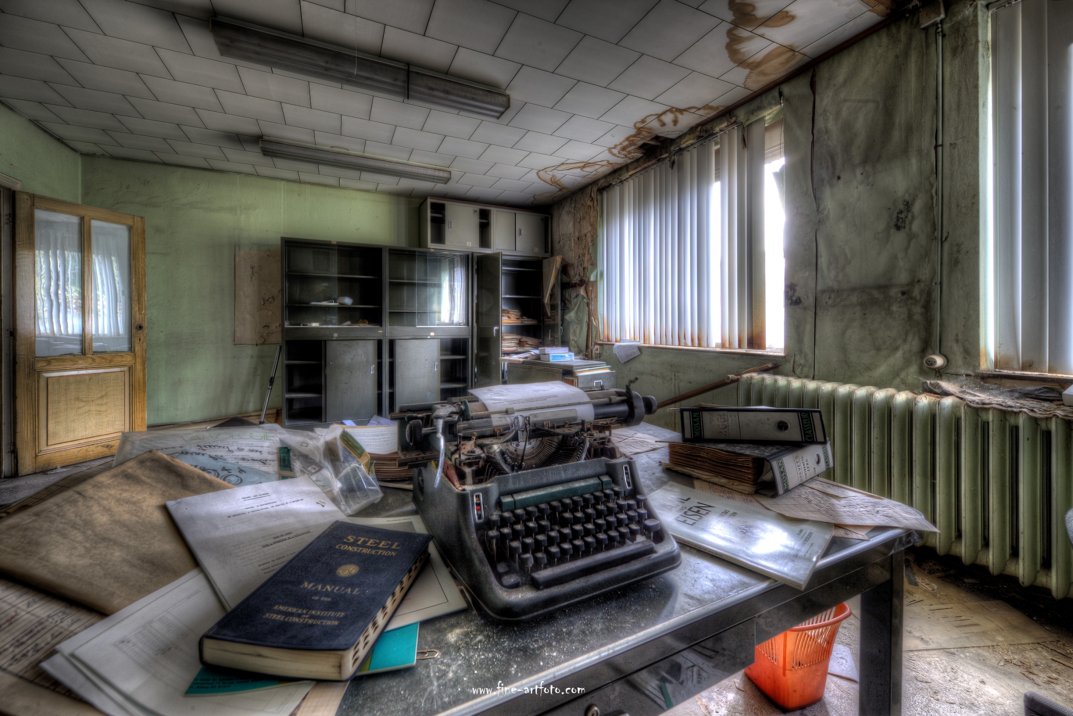 A small /medium enterprise surely run for a generation long, building boilers, just suddenly could not hold up with competition and the fast dvelopments in engeneering. So progress ate it up. Boss and empoyees left the place on their last working day and since then the place is fogotten. The place is full of details and it is still very easy to imagine the place and its hierachy of people working there.