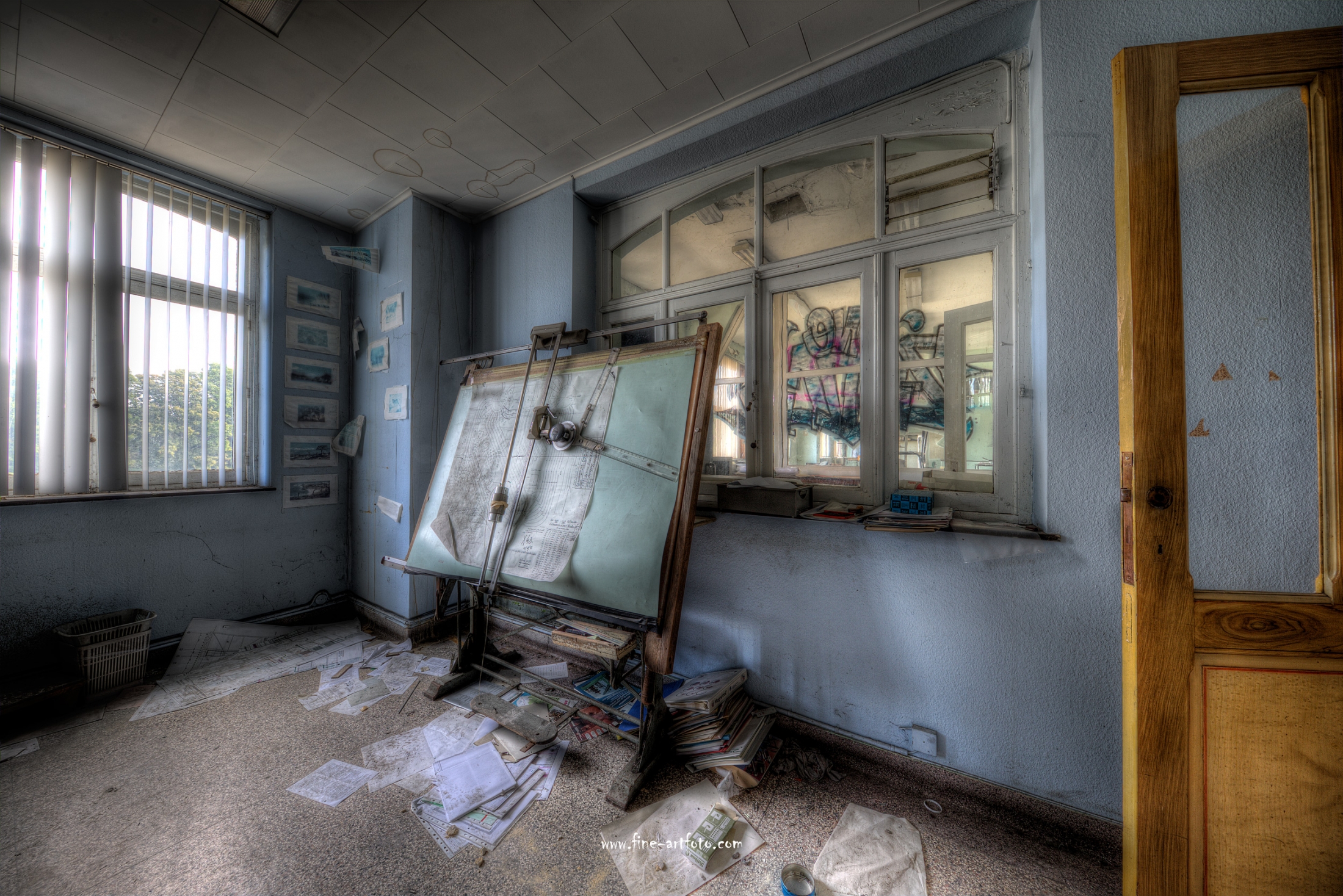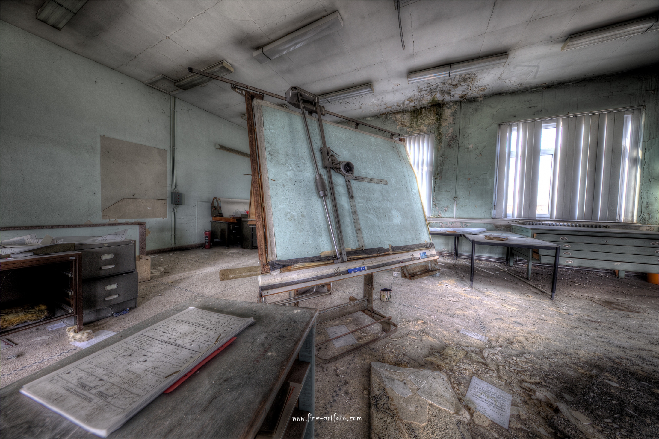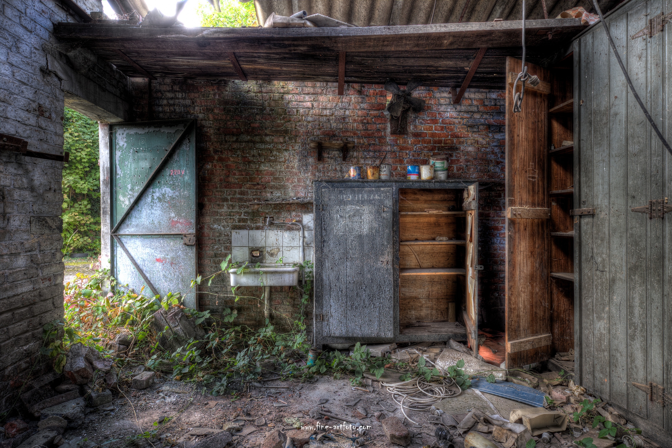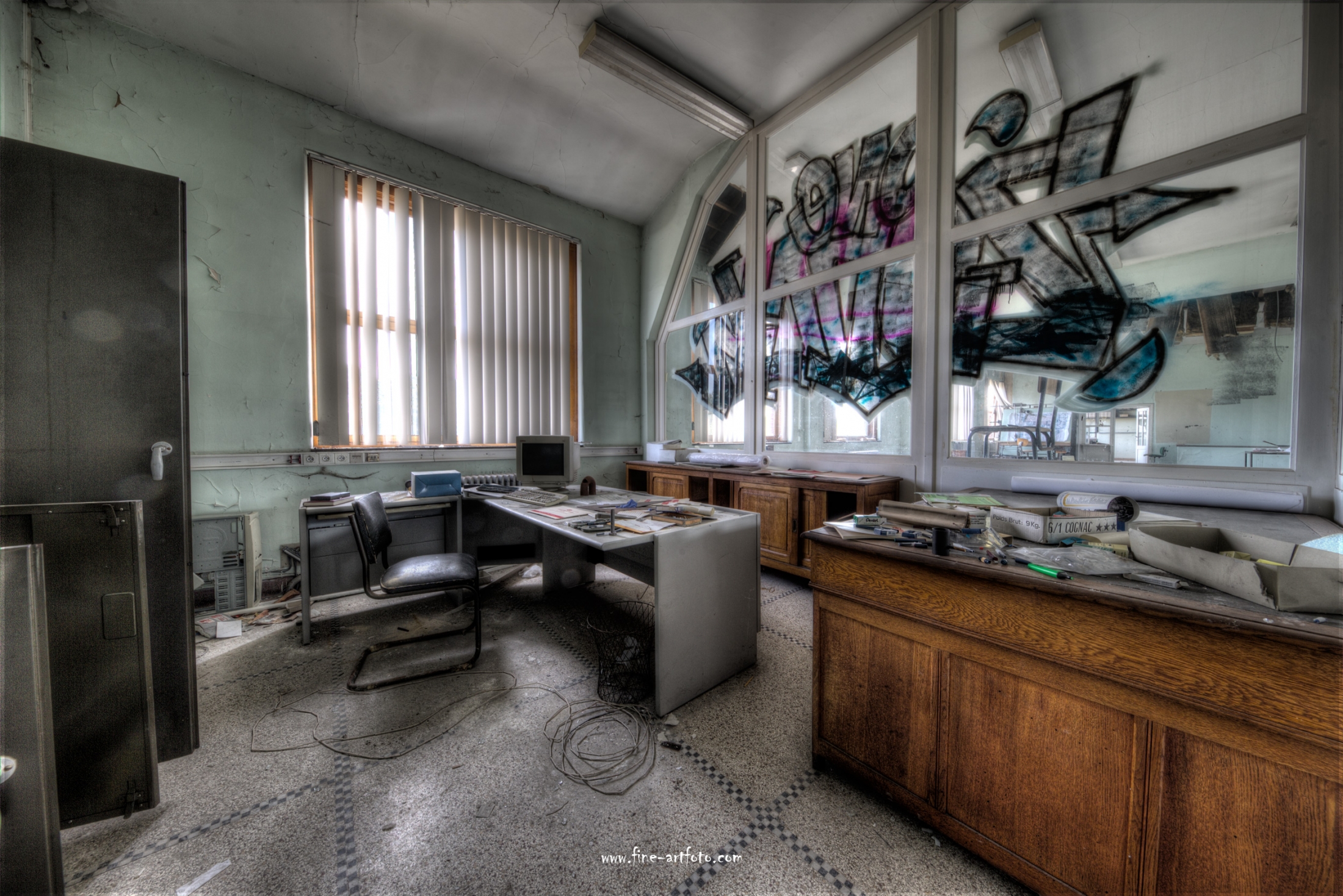 A small /medium enterprise surely run for a generation long, building boilers, just suddenly could not hold up with competition and the fast dvelopments in engeneering. So progress ate it up. Boss and empoyees left the place on their last working day and since then the place is fogotten. The place is full of details and it is still very easy to imagine the place and its hierachy of people working there.
