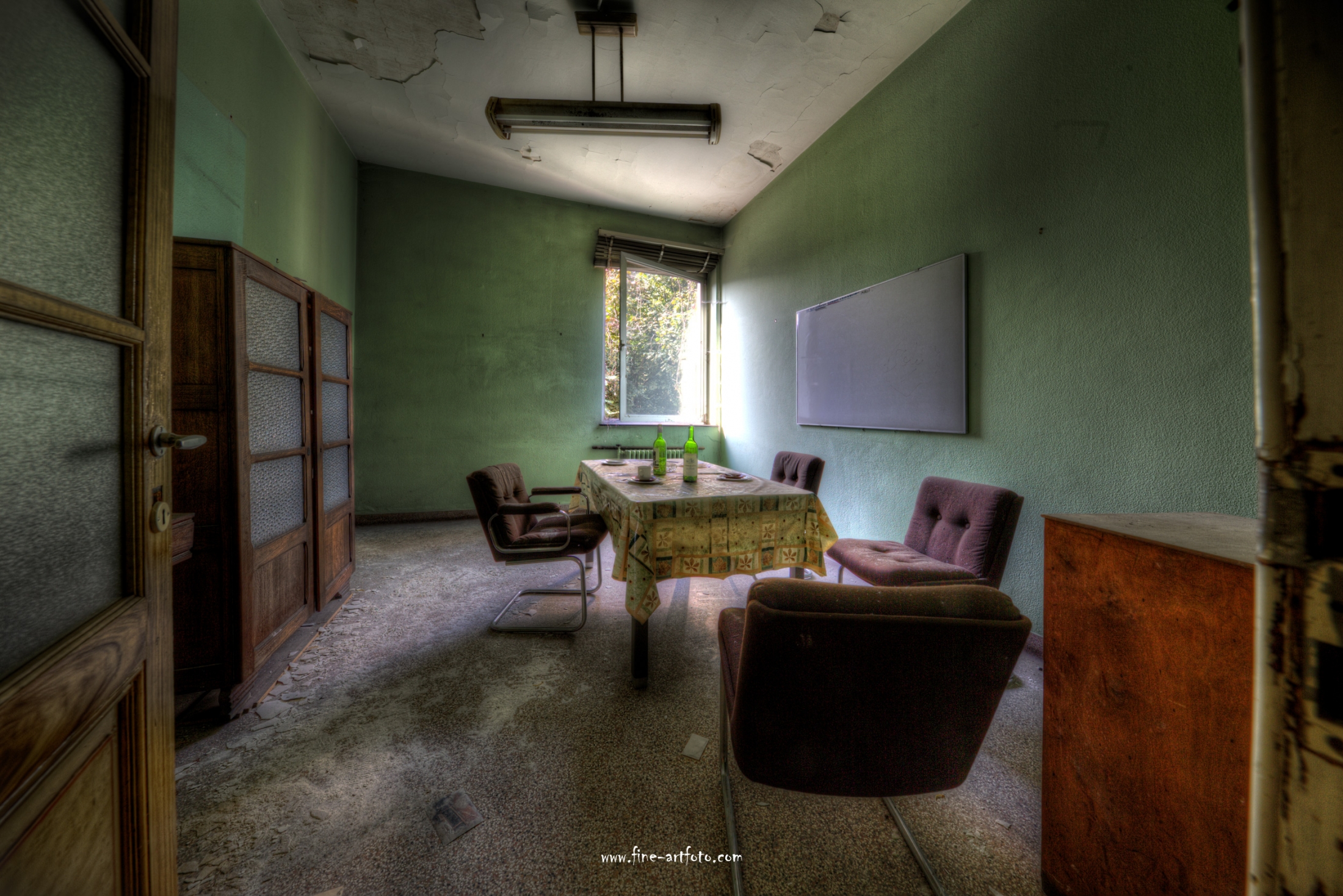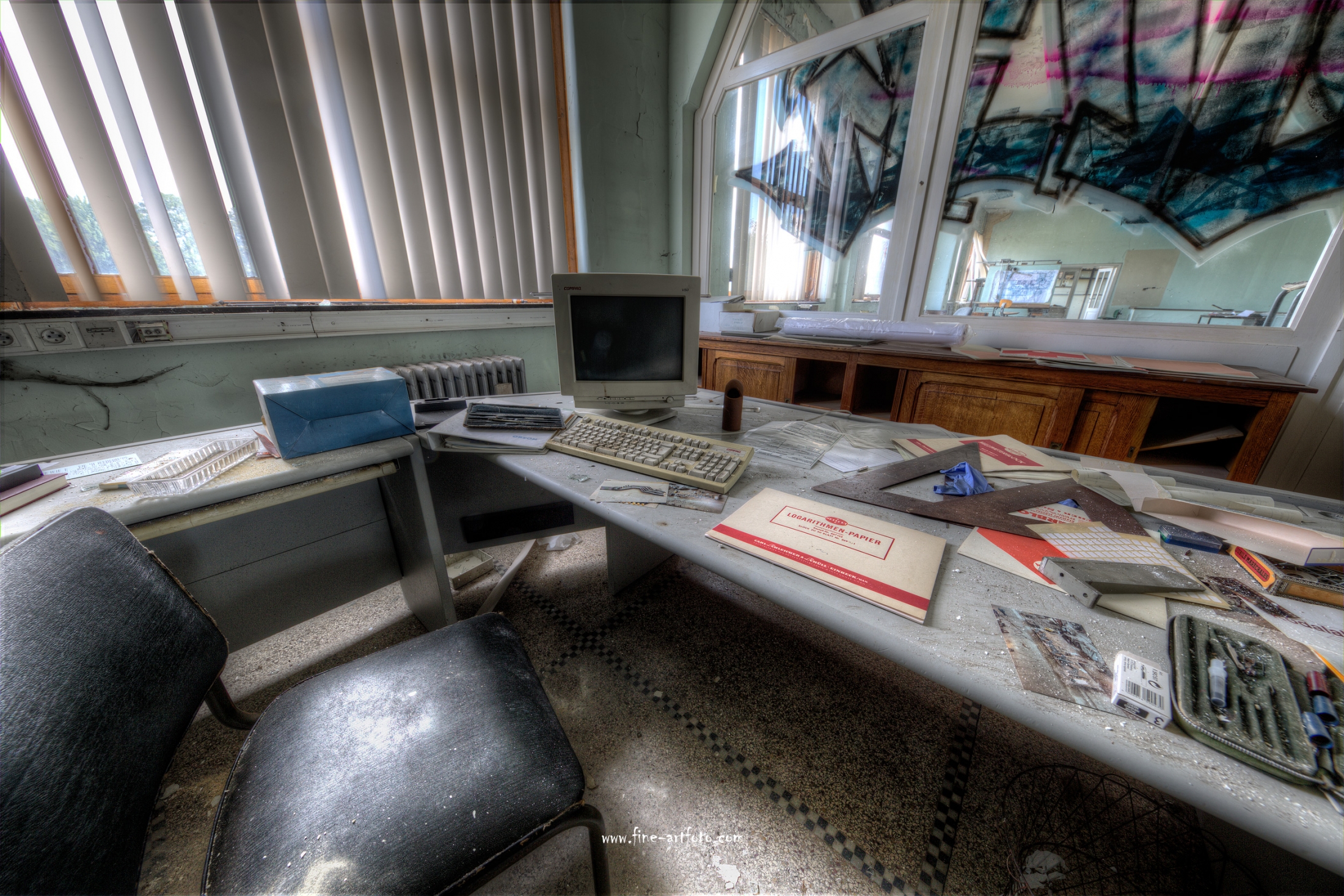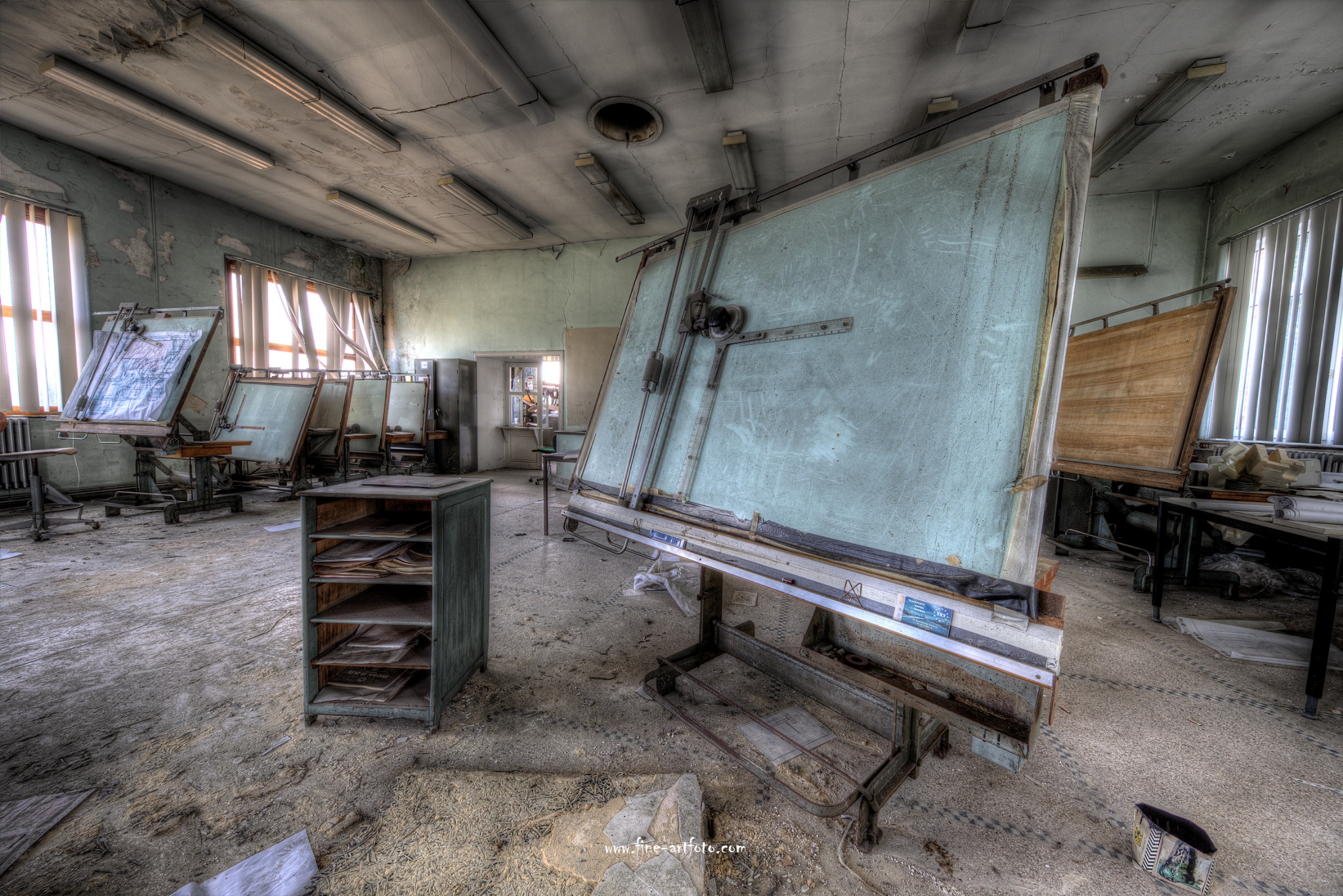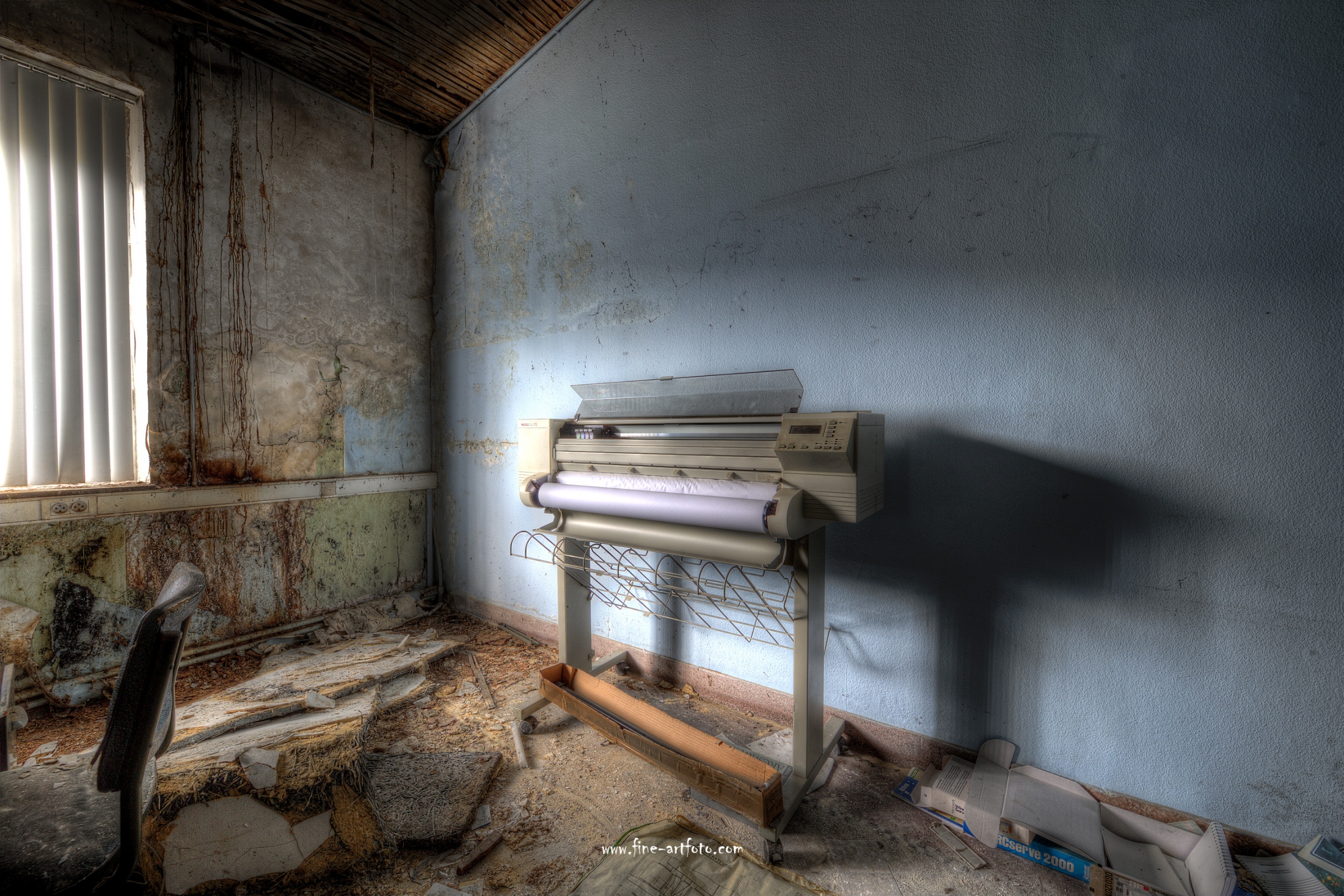 A small /medium enterprise surely run for a generation long, building boilers, just suddenly could not hold up with competition and the fast dvelopments in engeneering. So progress ate it up. Boss and empoyees left the place on their last working day and since then the place is fogotten. The place is full of details and it is still very easy to imagine the place and its hierachy of people working there.