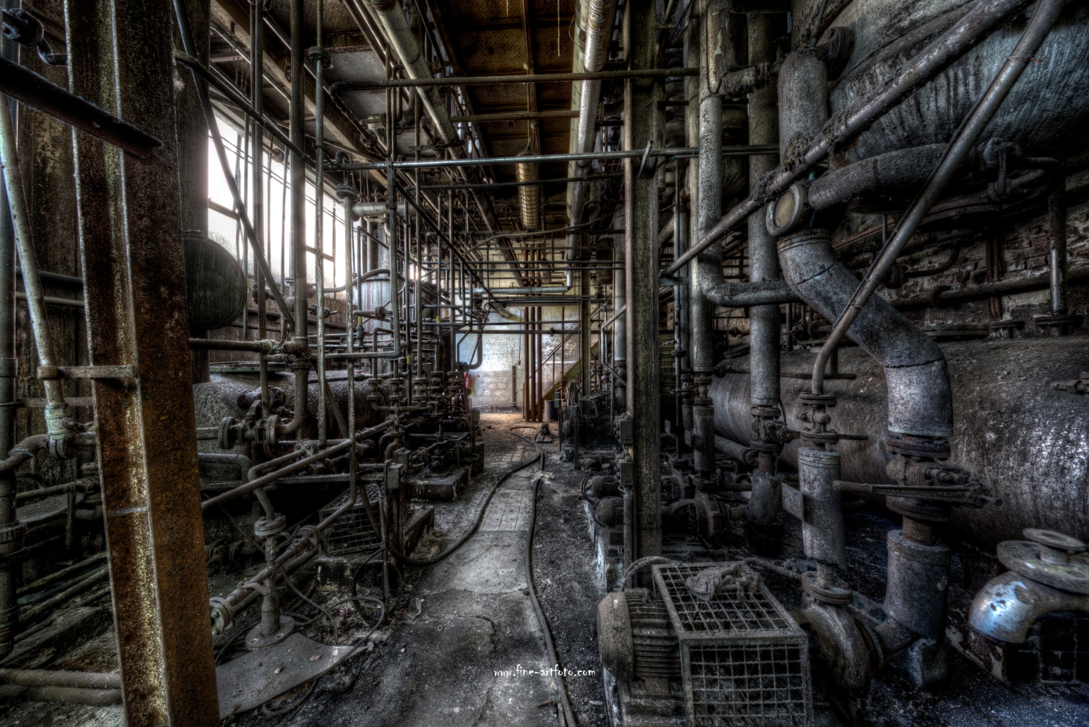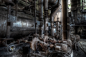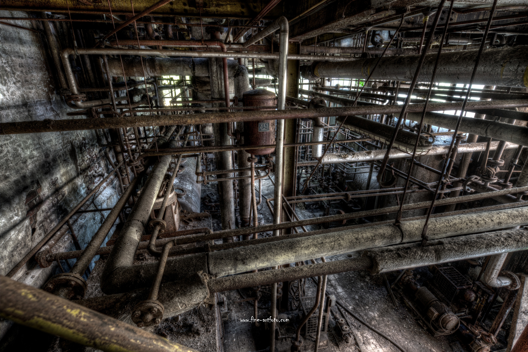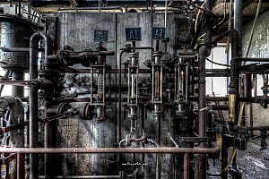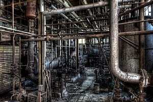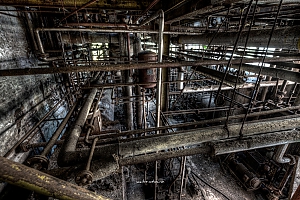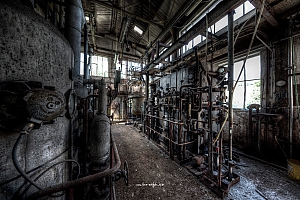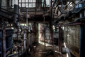 A small factory hidden somewhere in Europe. A stunning place that took my breath away. Pipes, tubes, tanks, pumps and all this connectee by a maze of pipes. Rotting away every day.