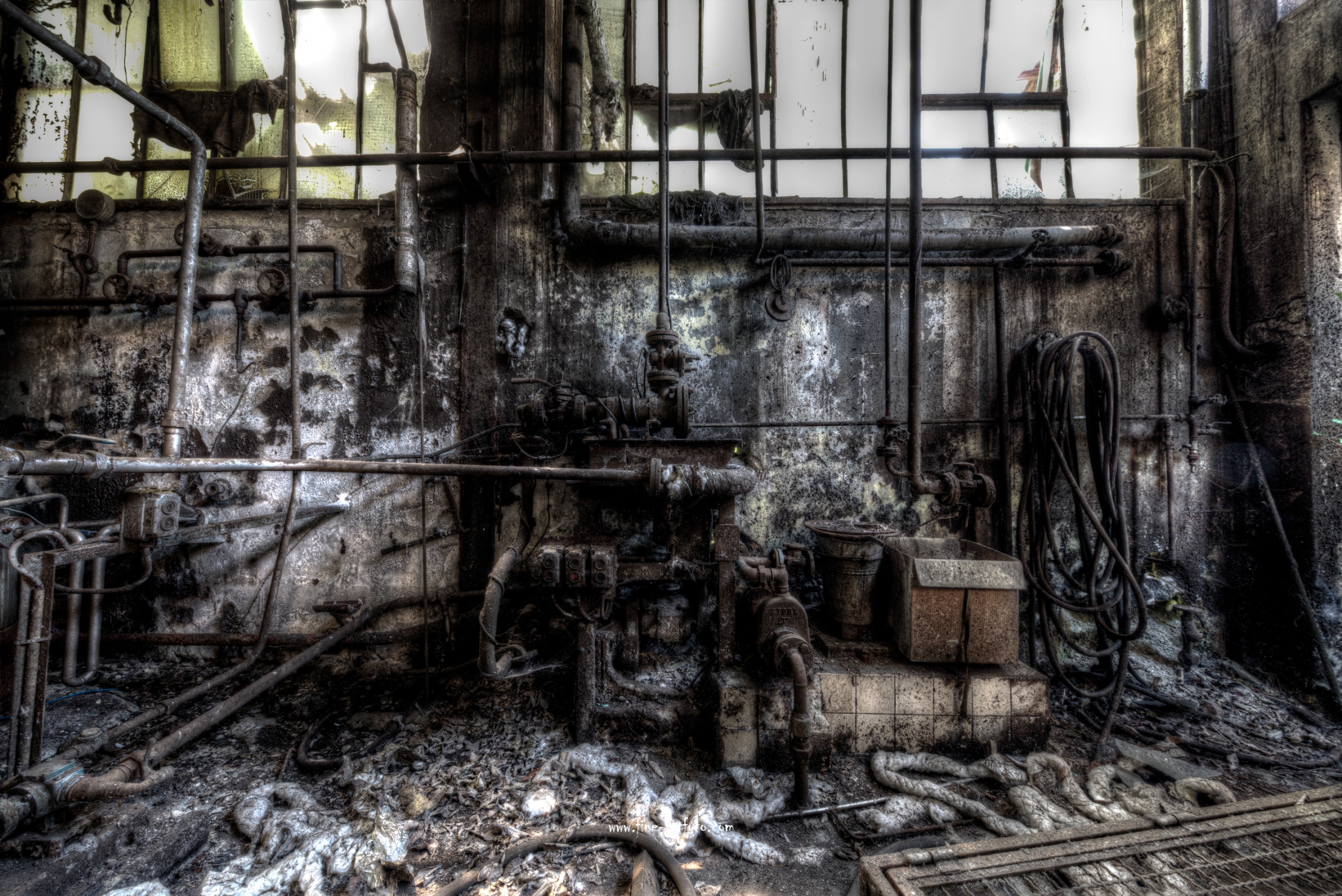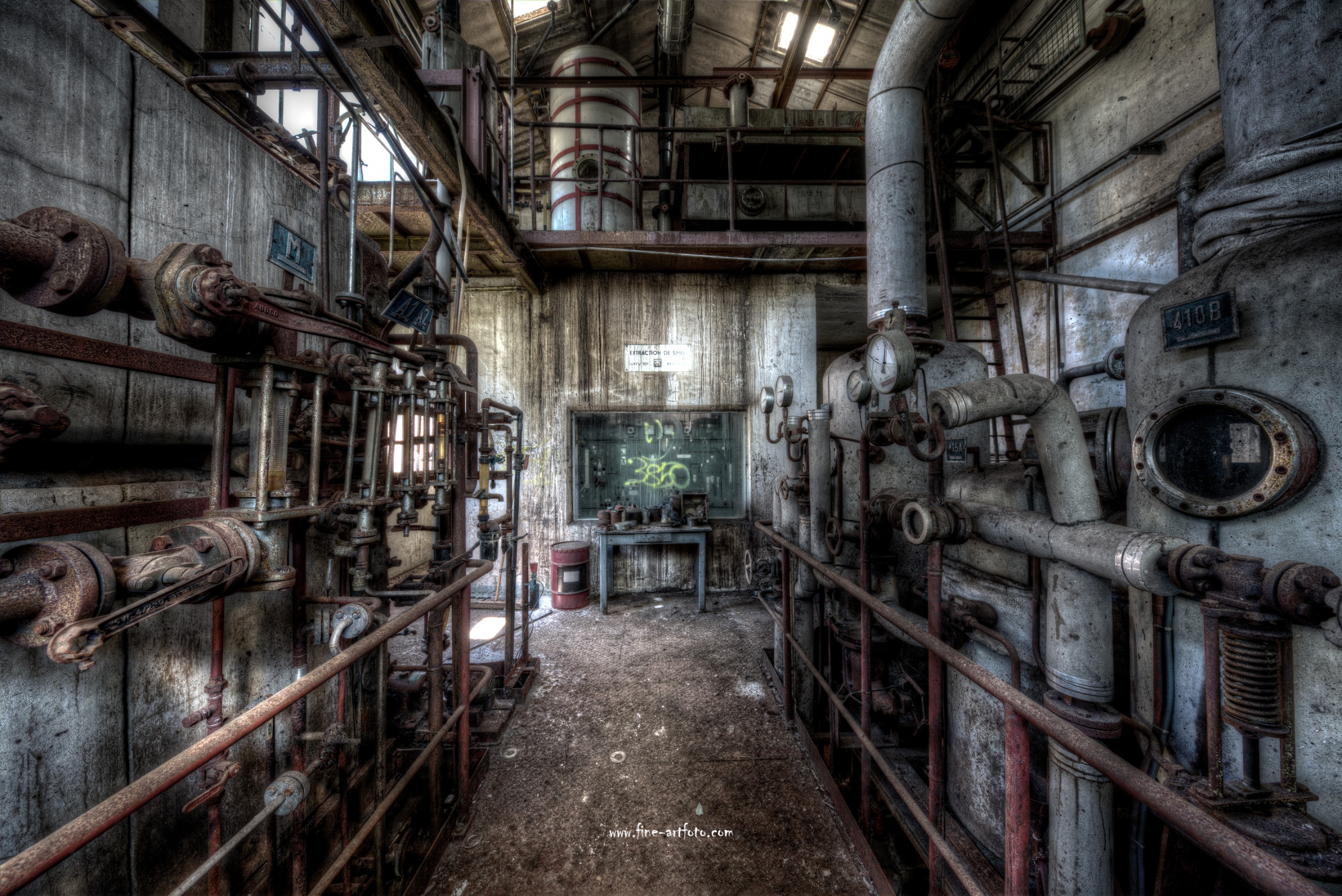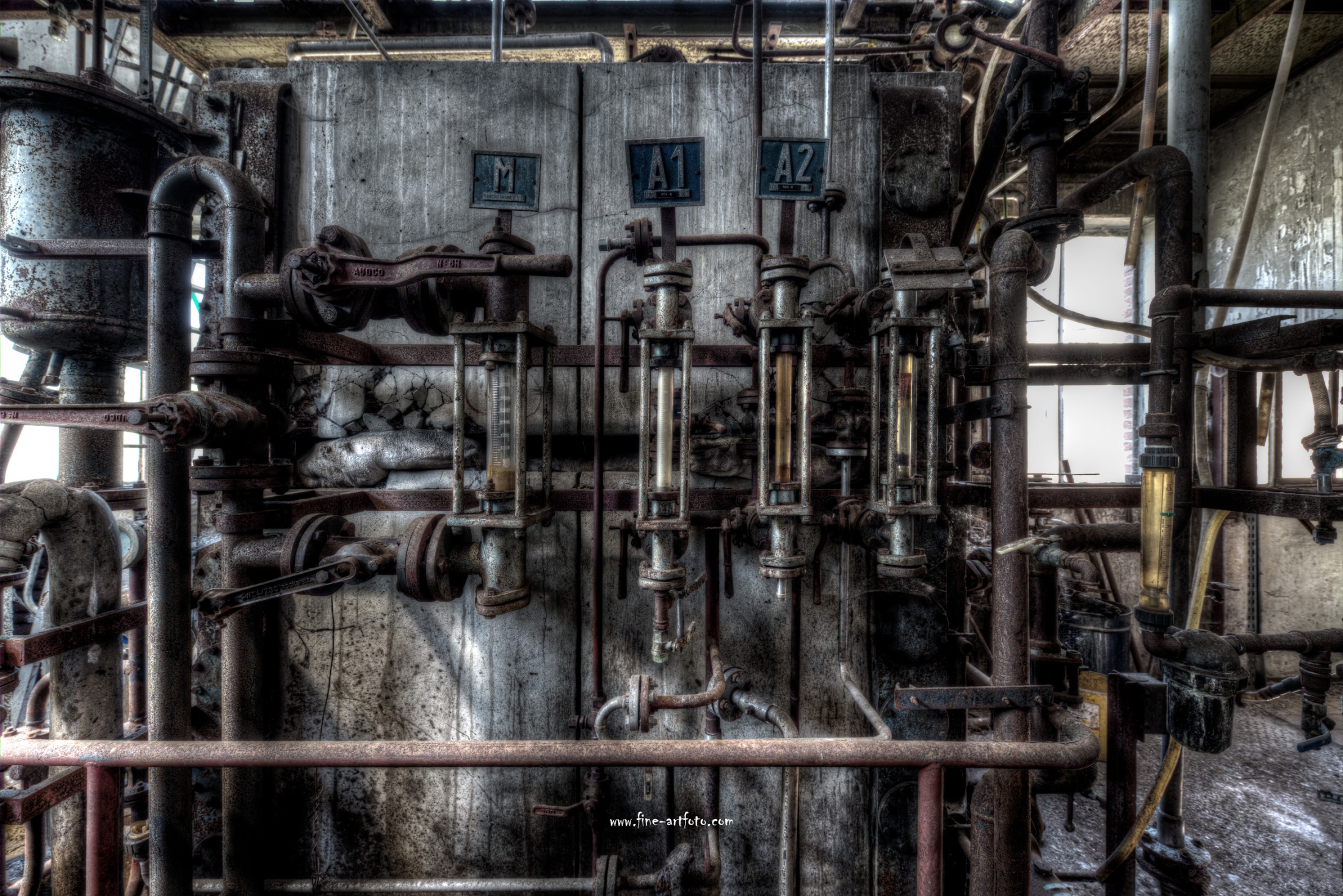 A small factory hidden somewhere in Europe. A stunning place that took my breath away. Pipes, tubes, tanks, pumps and all this connectee by a maze of pipes. Rotting away every day.