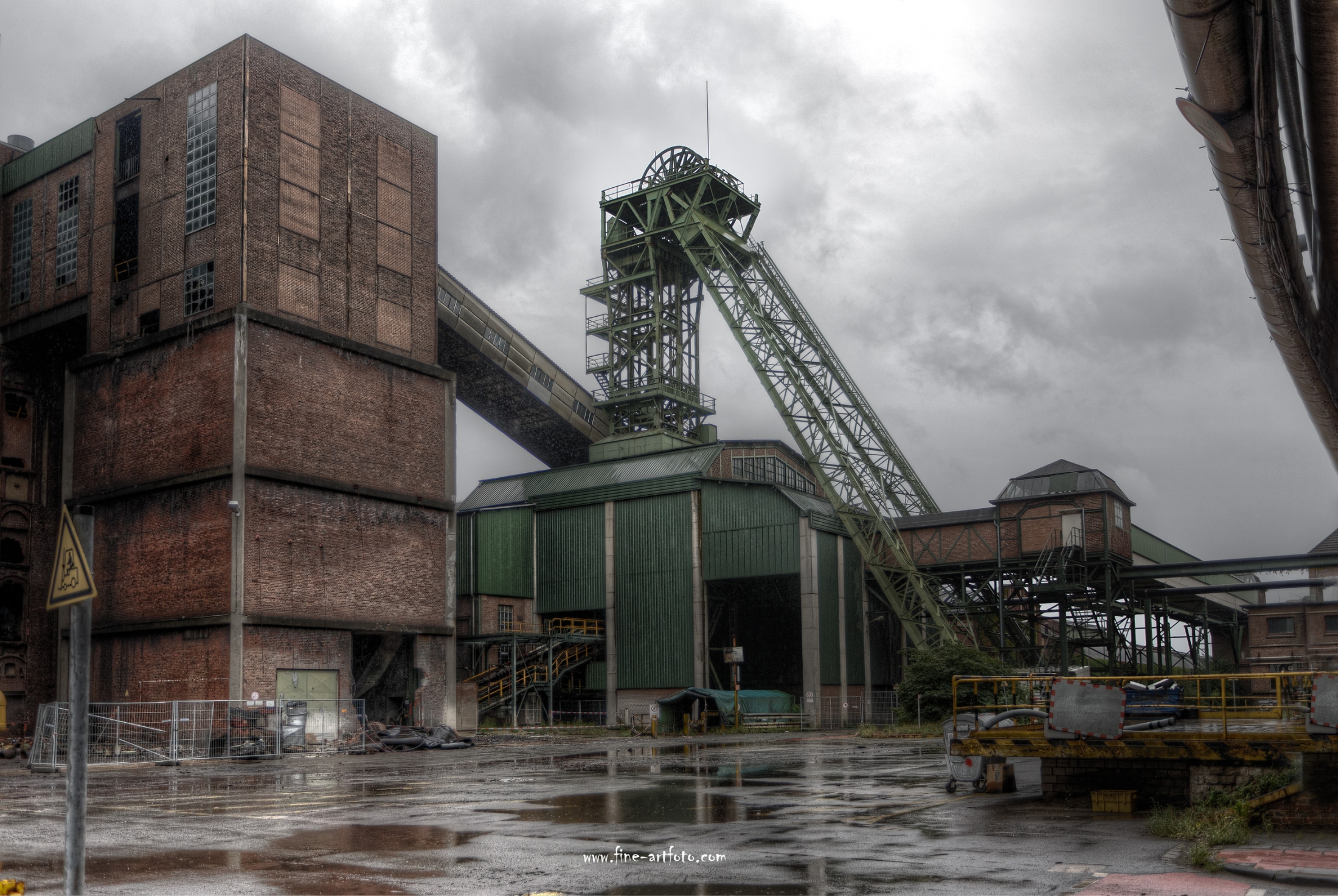 Zeche Kamp L is a coal mine connected with several other mines nearby. Its best and most active years were in the 1990´s. After a political shift and the public stop of the support of the coal production all mines around were closed one after the other. Last shift was on December 21st 2012 and on December 31st 2012 the mine was closed. 1560 workers were affected and partly reallocated to other mines.
