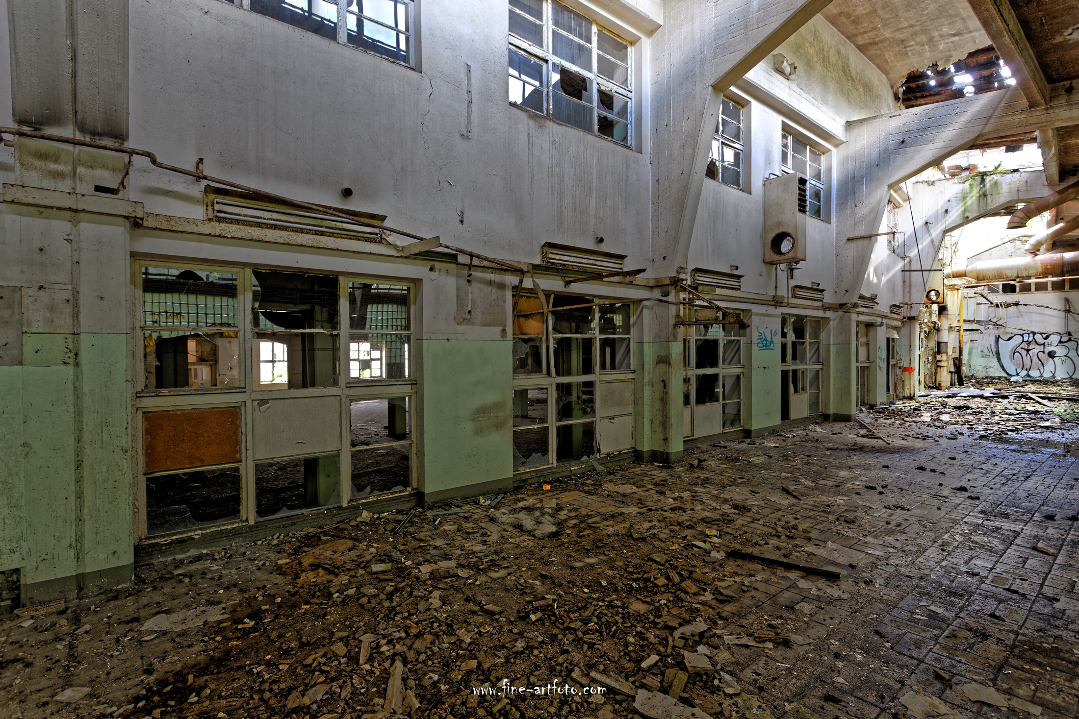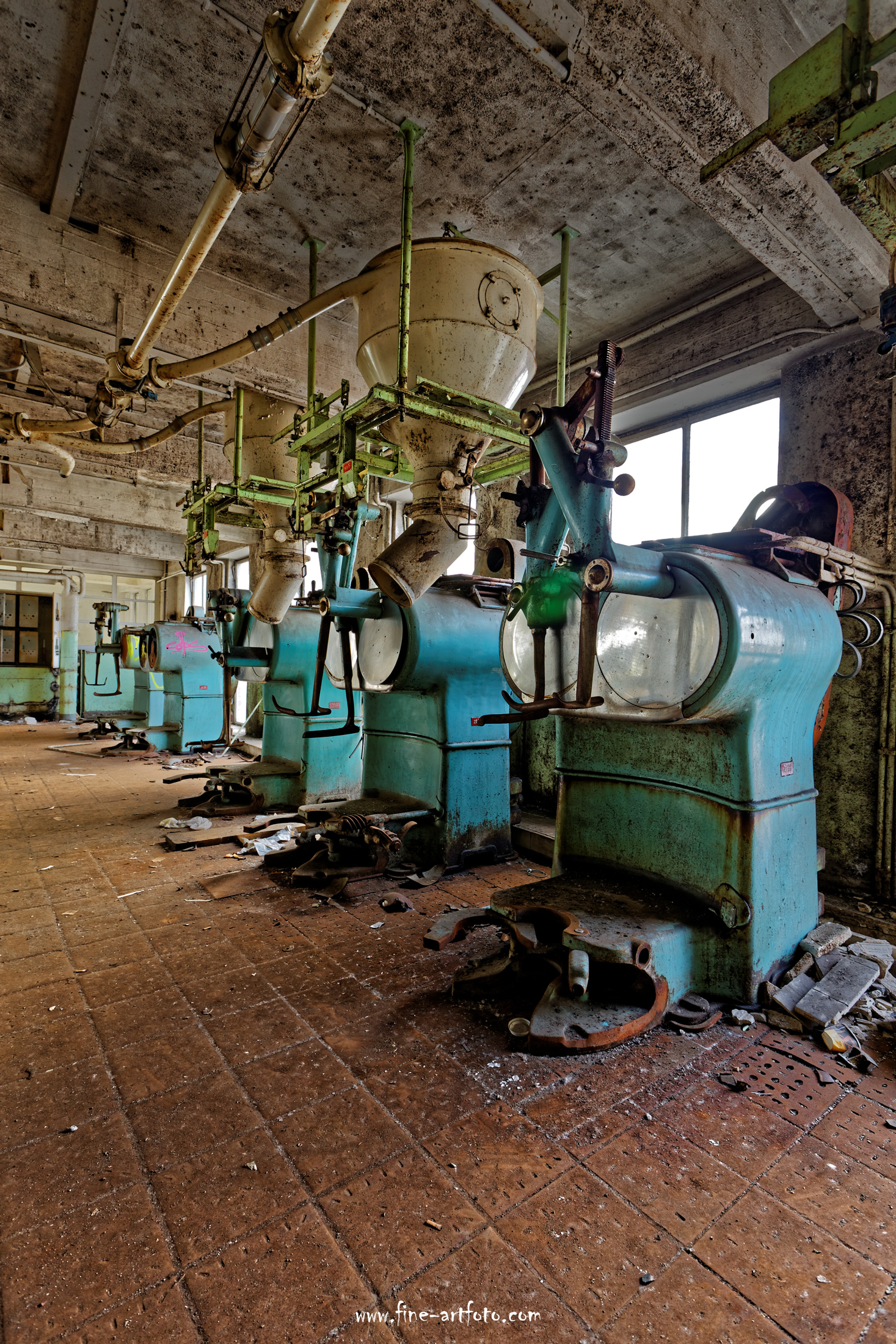 In one of Germany´s most densely populated areas this factory was for a long time at home. The whole city quarter was warmly smelling. For a lot of people this was part of their childhood and in most cases also the employer. The brand name is well known in Germany. As it allways is with old factories, there is a point in time when you have to decide rip it down and start new or leave the place and start new somewhere else. So did the company. Attractive offers in the German area of Thüringen lead the management to abandon the place in 2003. Since then the factory is deserted.