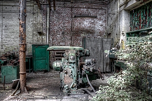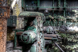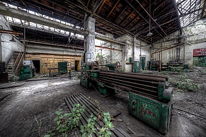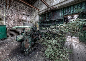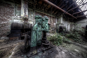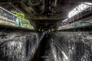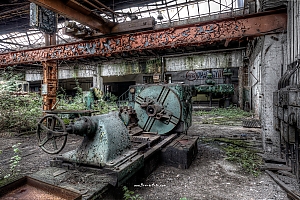 Once a very busy place. Engines coming in and out bringing in wagons and other rail depend stuff. Here all the hardware work smelting, welding, drop forging and smithing have been done to keep them rolling. A change in gauge and all changed. Suddenly out of business. So sudden that all is still there between all those young trees, fighting back for mother nature.