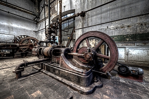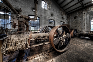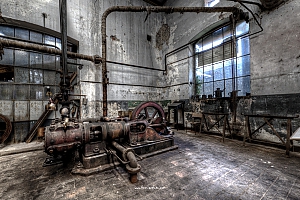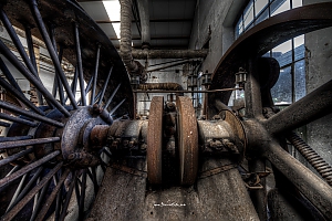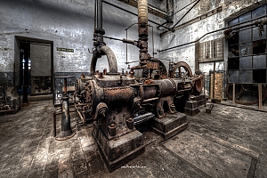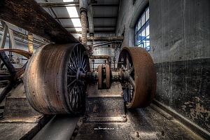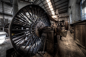 A small factory hidden somewhere in Europe. A stunning place that took my breath away. Imagine all the noise from the single and double cylinder steam engines. The wheels, the belts the turning of metall. The huge number of people in this confined place. A window into time just 70 years back.