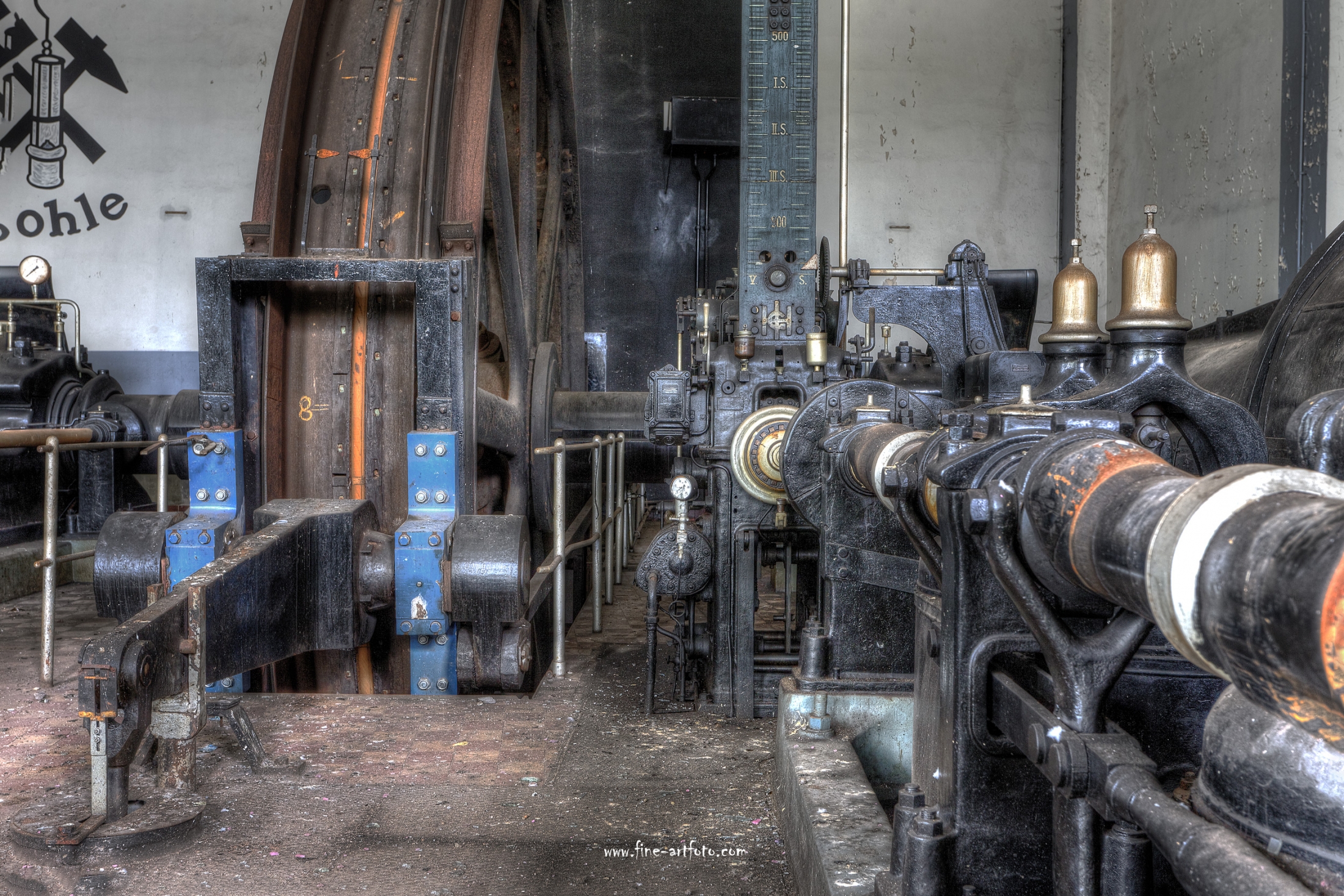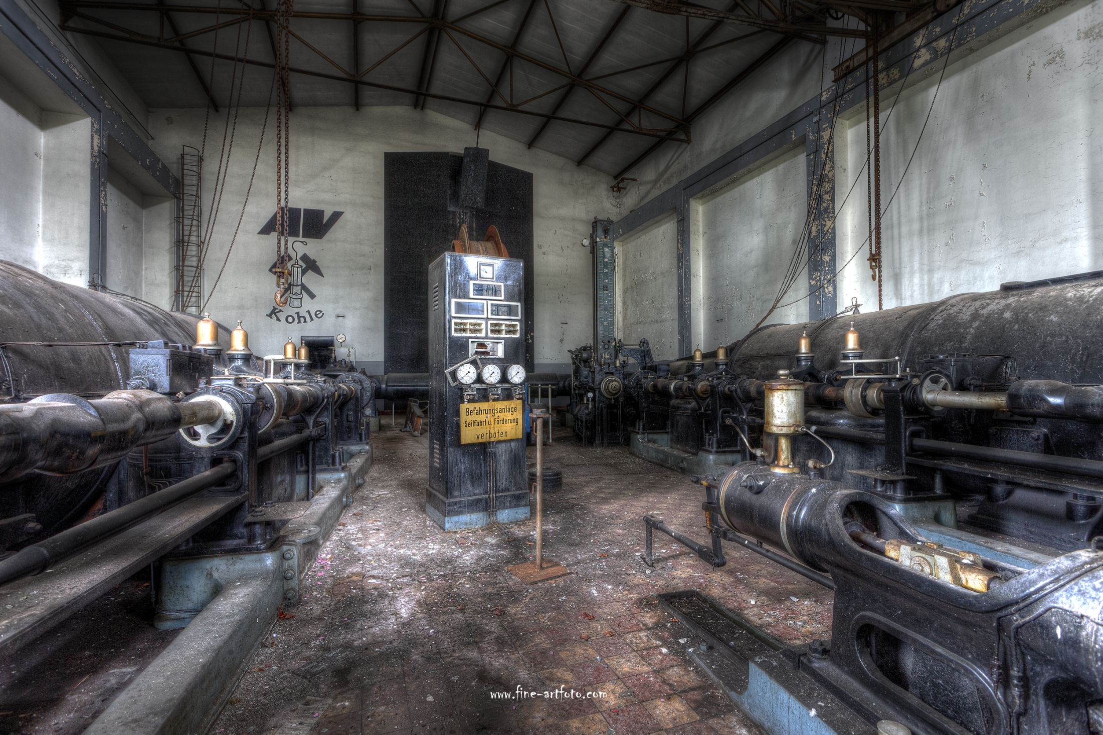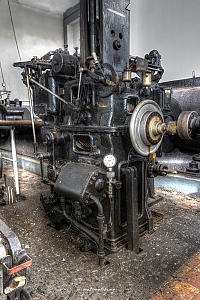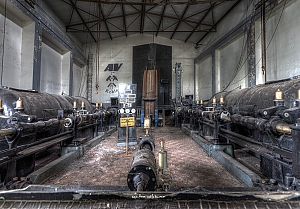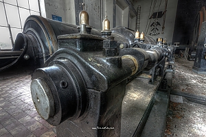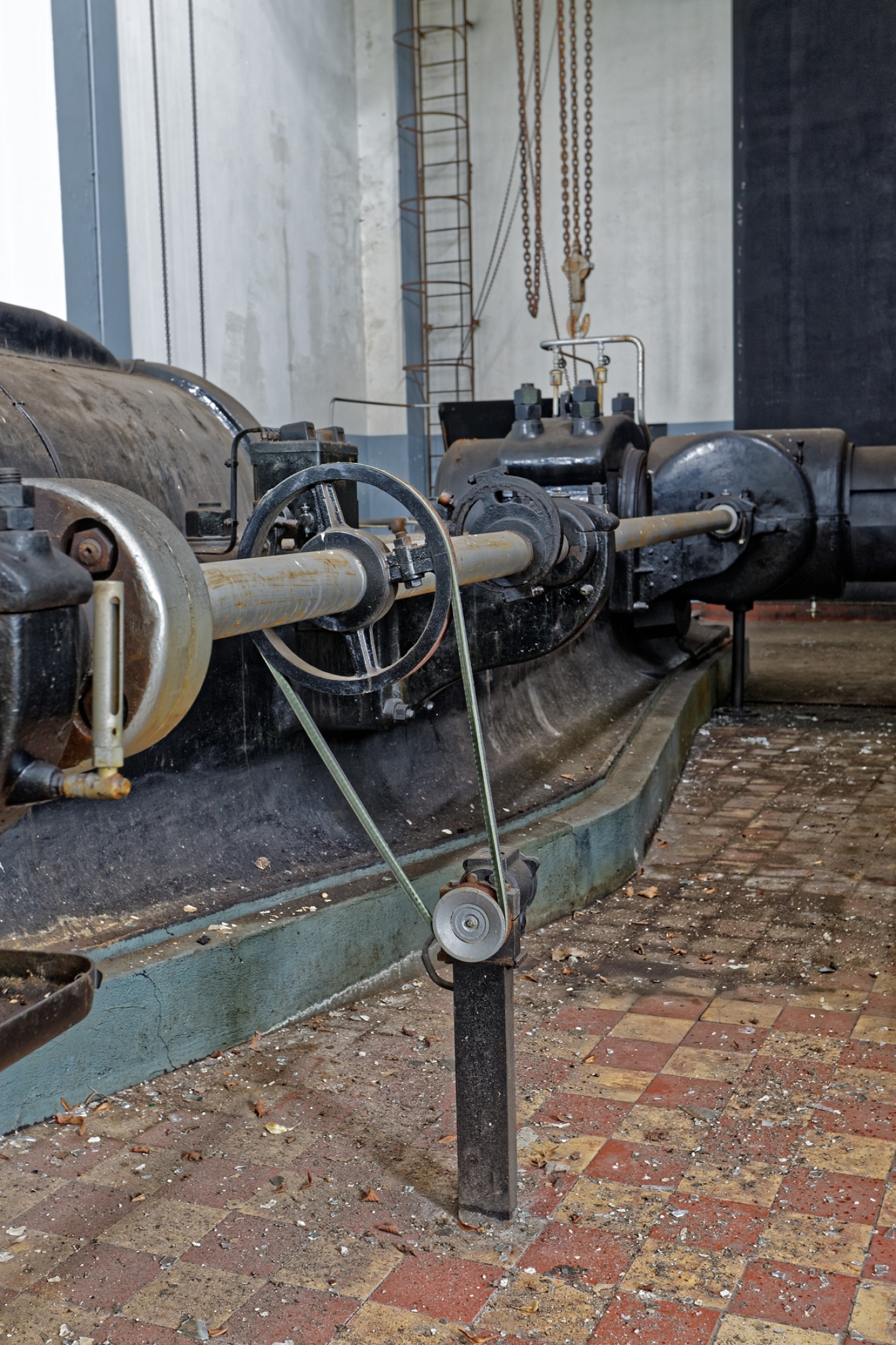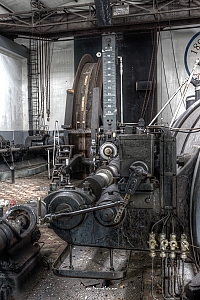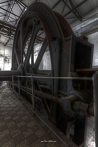 The mining shaft lift system was steam engine driven and the only thing that significantly survived the years is the shaft-tower and the lifting system with its steam engine. Although this mine is under landmark protection act, nevertheless it is forgotten and neglected as you can see on the pictures. Luckily all is heavy metal and vandalism could not really succeed. The location is very difficult to visit. The place is active with new tenants and well-sealed and locked.