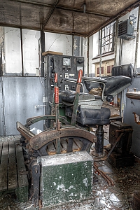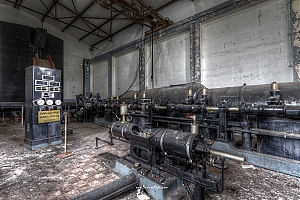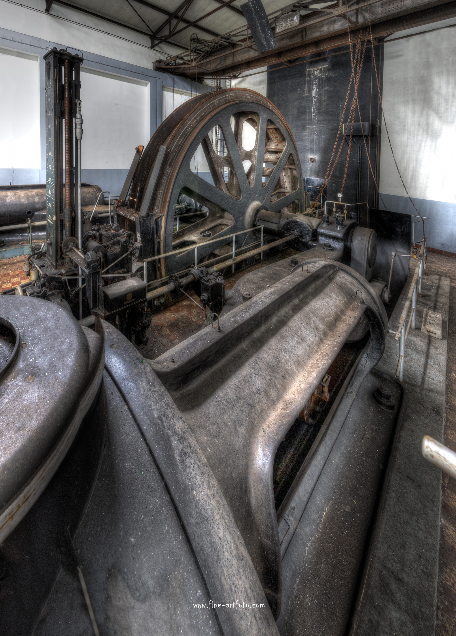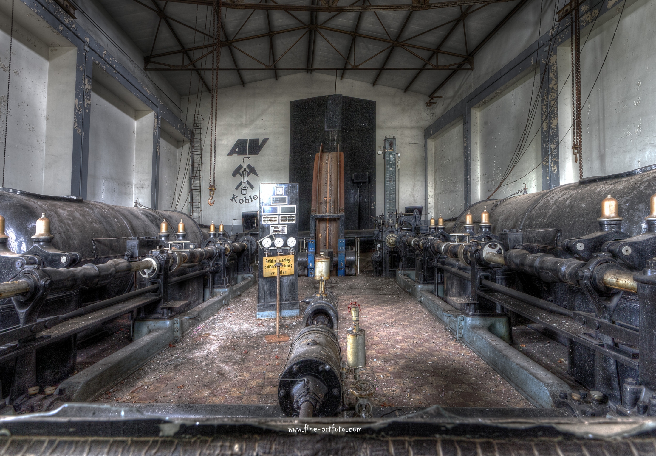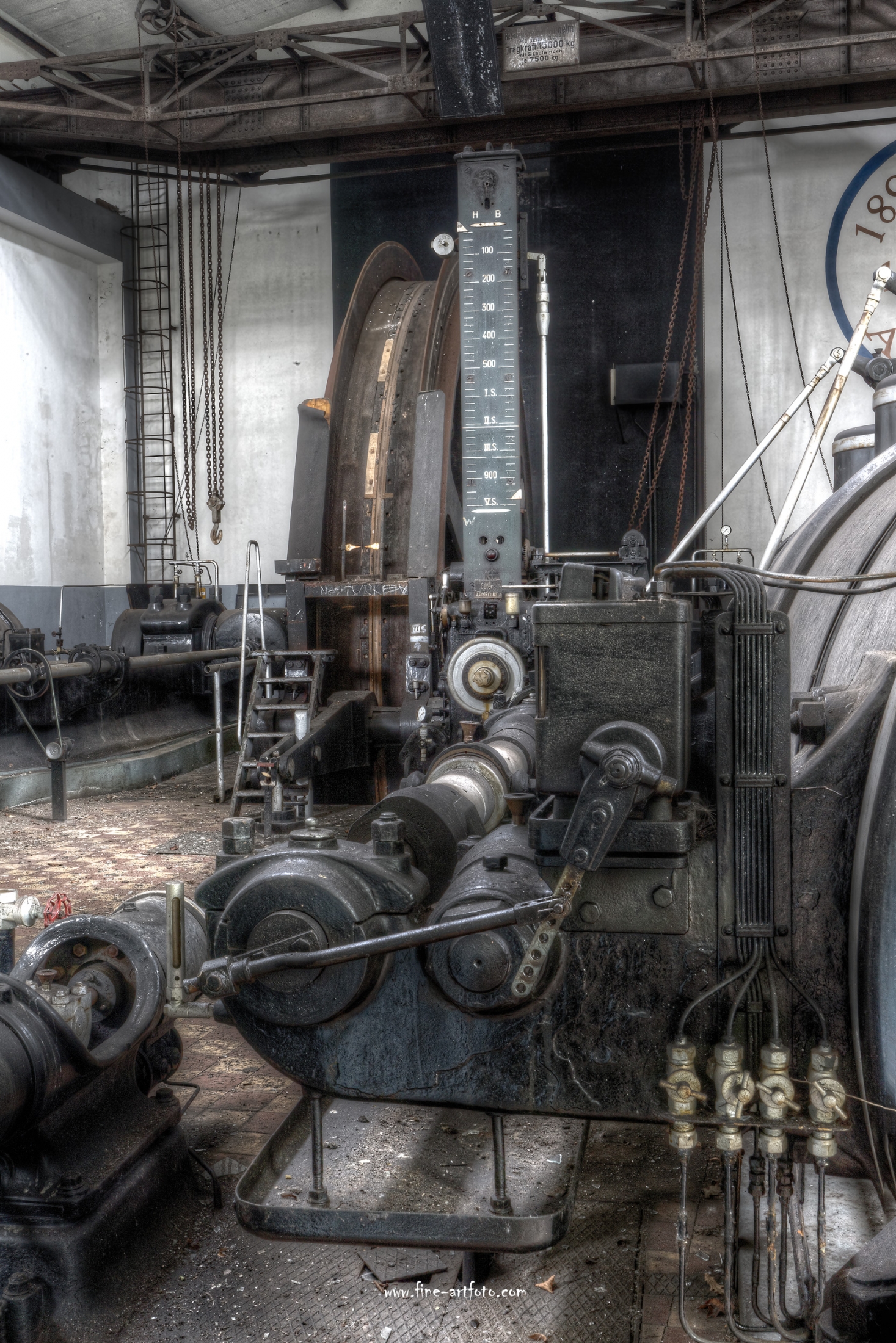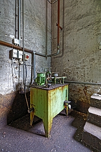The mining shaft lift system was steam engine driven and the only thing that significantly survived the years is the shaft-tower and the lifting system with its steam engine. Although this mine is under landmark protection act, nevertheless it is forgotten and neglected as you can see on the pictures. Luckily all is heavy metal and vandalism could not really succeed. The location is very difficult to visit. The place is active with new tenants and well-sealed and locked.