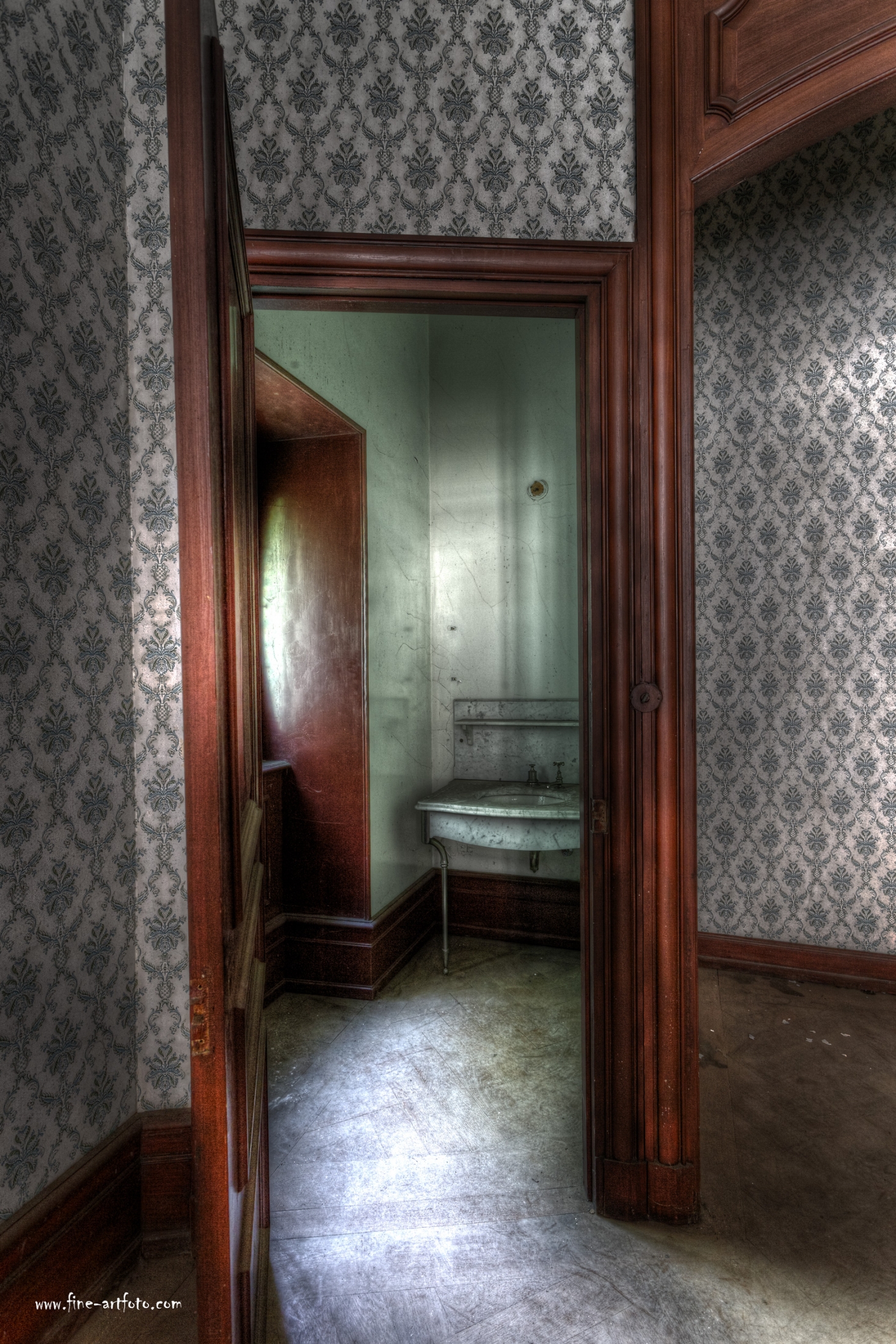 However, for the long time of not having been inhabited the house is in a very good condition still. No Graffiti or vandalism (at least to my eyes). It looks like you could move in; some cleaning and repairing here and there. As usual with Urbex Icons I was not alone in the building, one more phototeam was on site. Although the Chateau is called Lumiere, since all windows are closed and bolted partly, the building is very dark and hard to photograph.