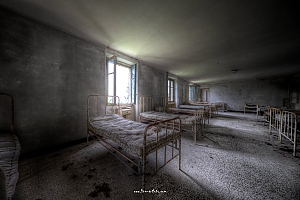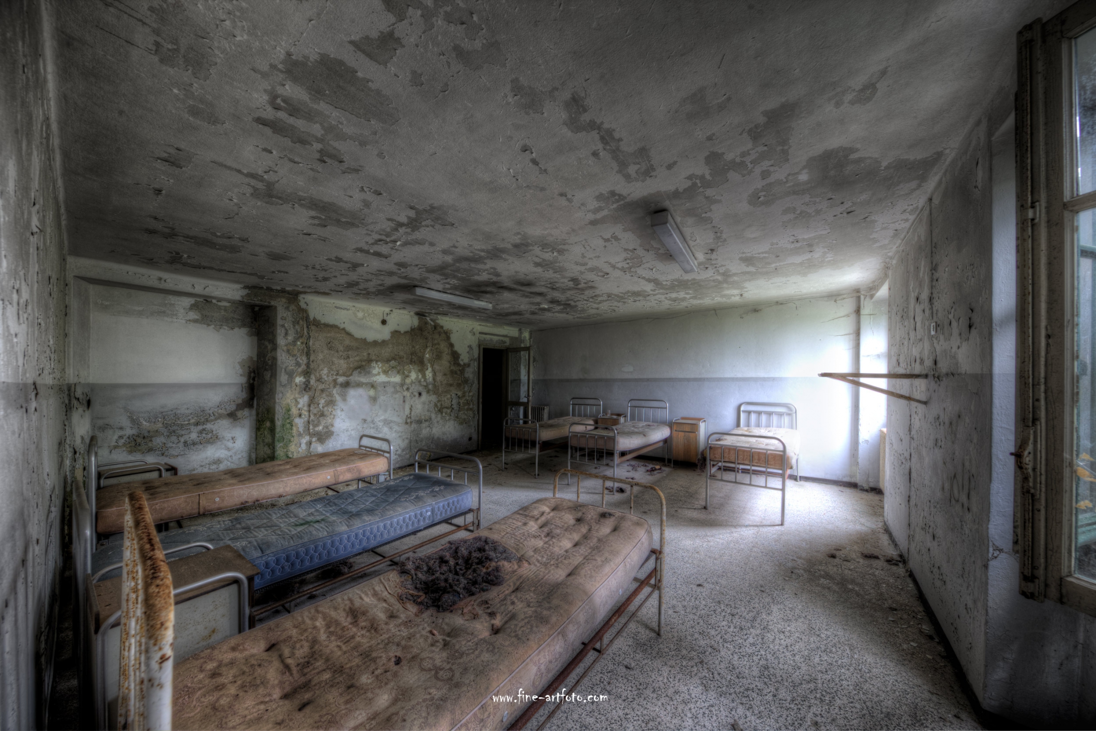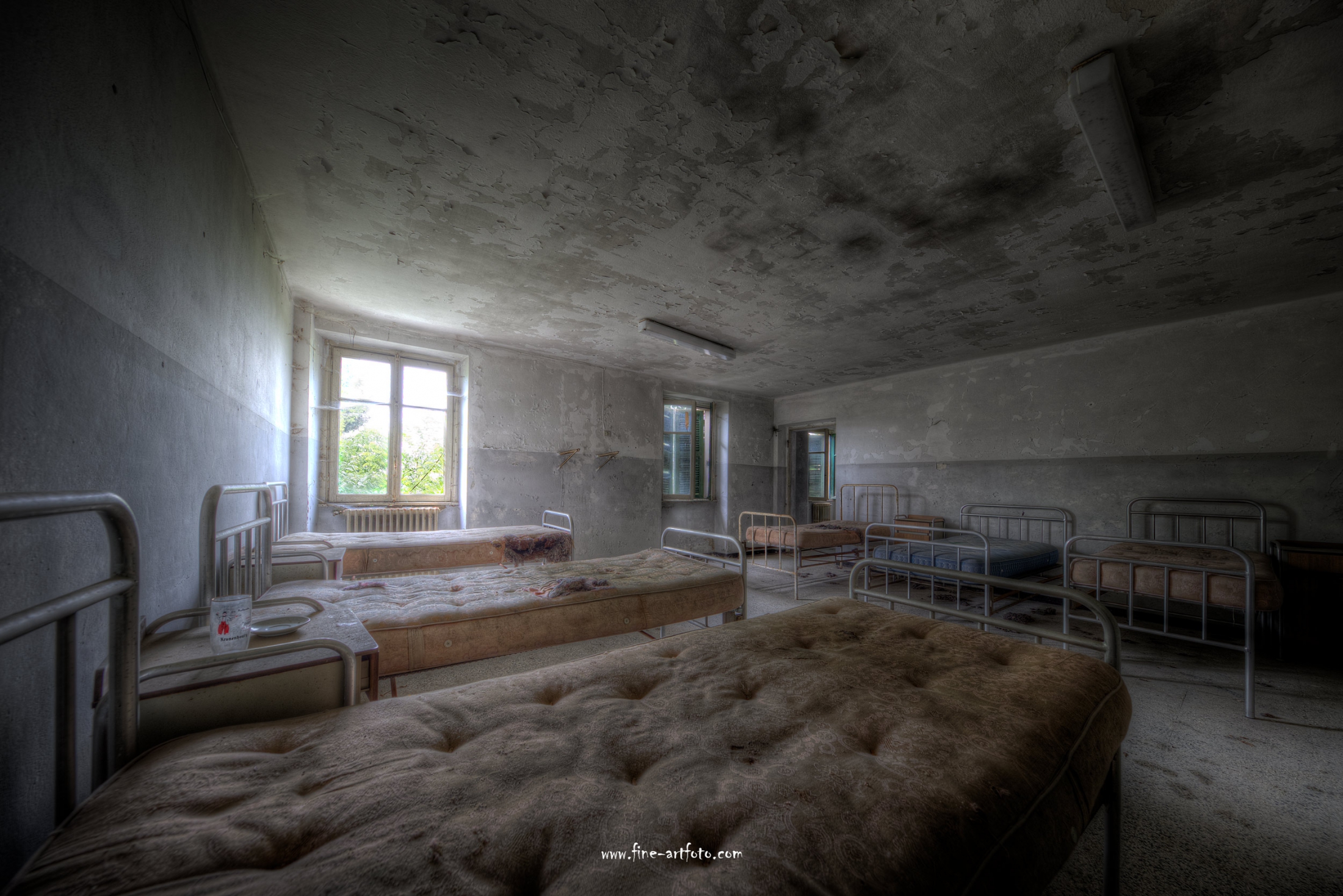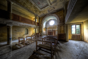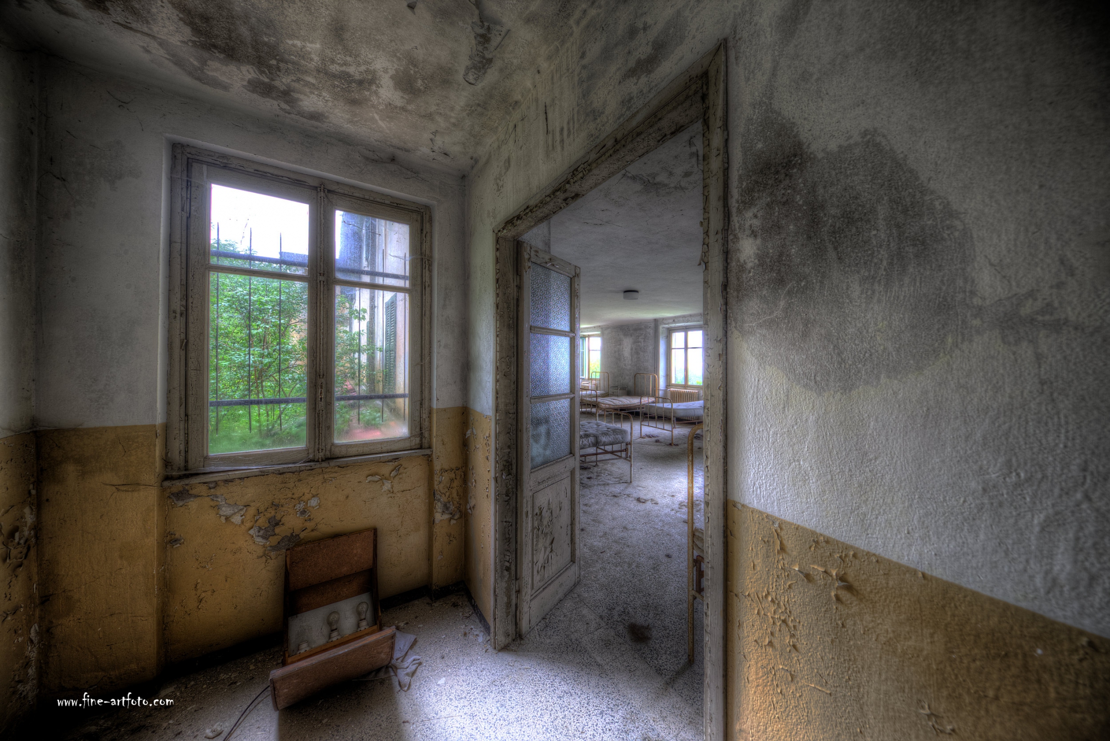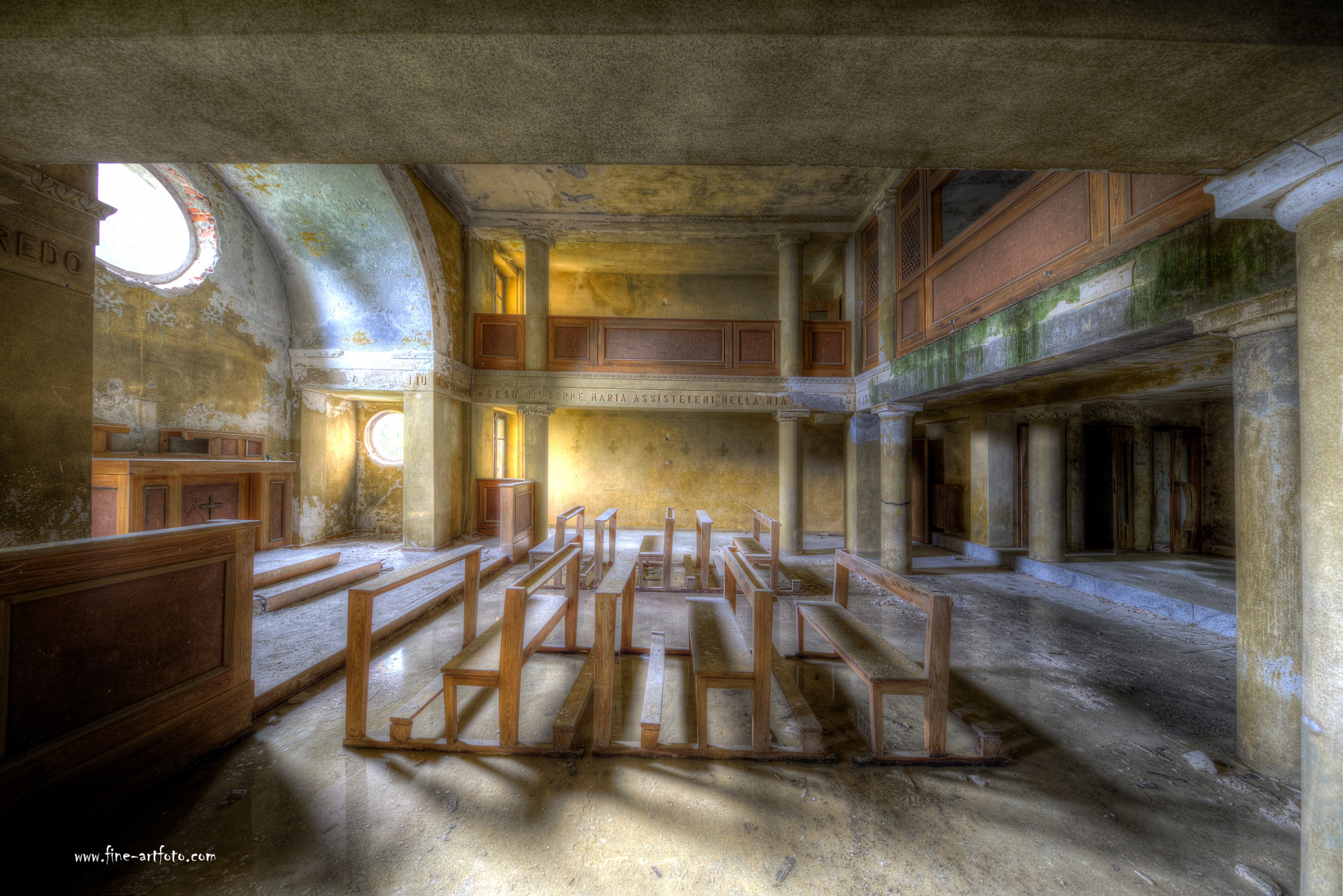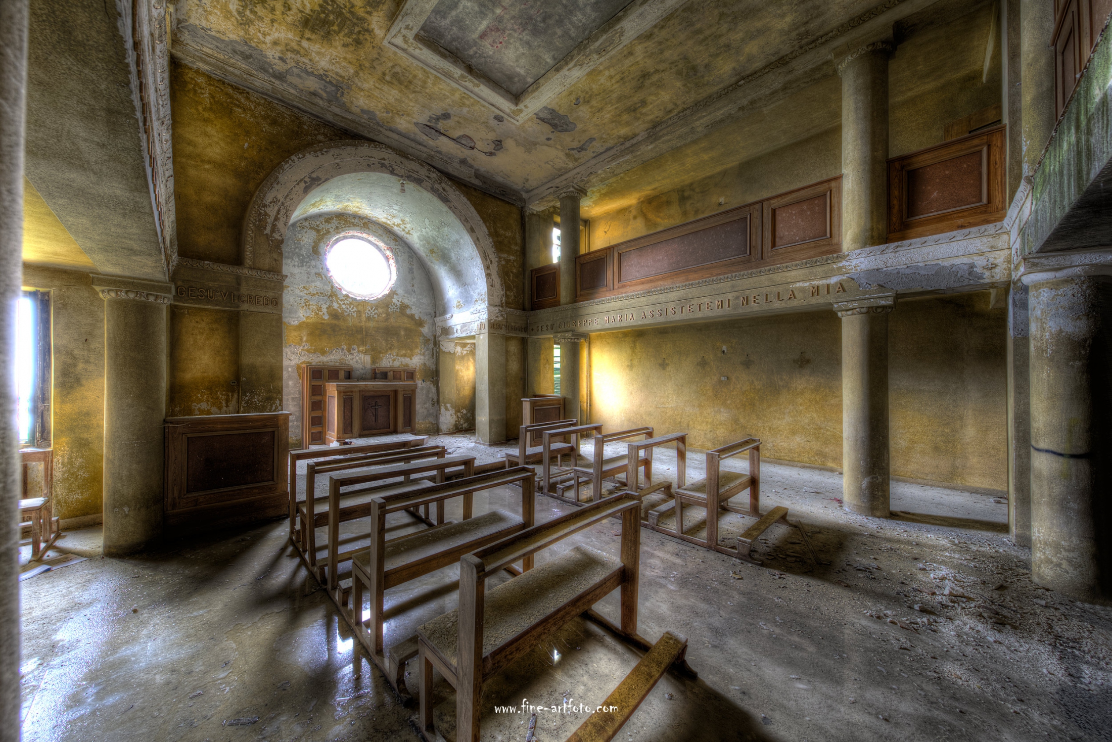 Somewhere far out in an idyllic lakeview surrounding, hidden in dense foliage lies a catholic children sanatorium. Long abandoned. Rain is seeping through all roofs and floors. You can still feel the stiff and strict ruling that governend the place. A deep devoutness still percolates through all rooms and and now, since the place is so innocently calm you are still touched with belief and a higher spirit.