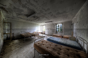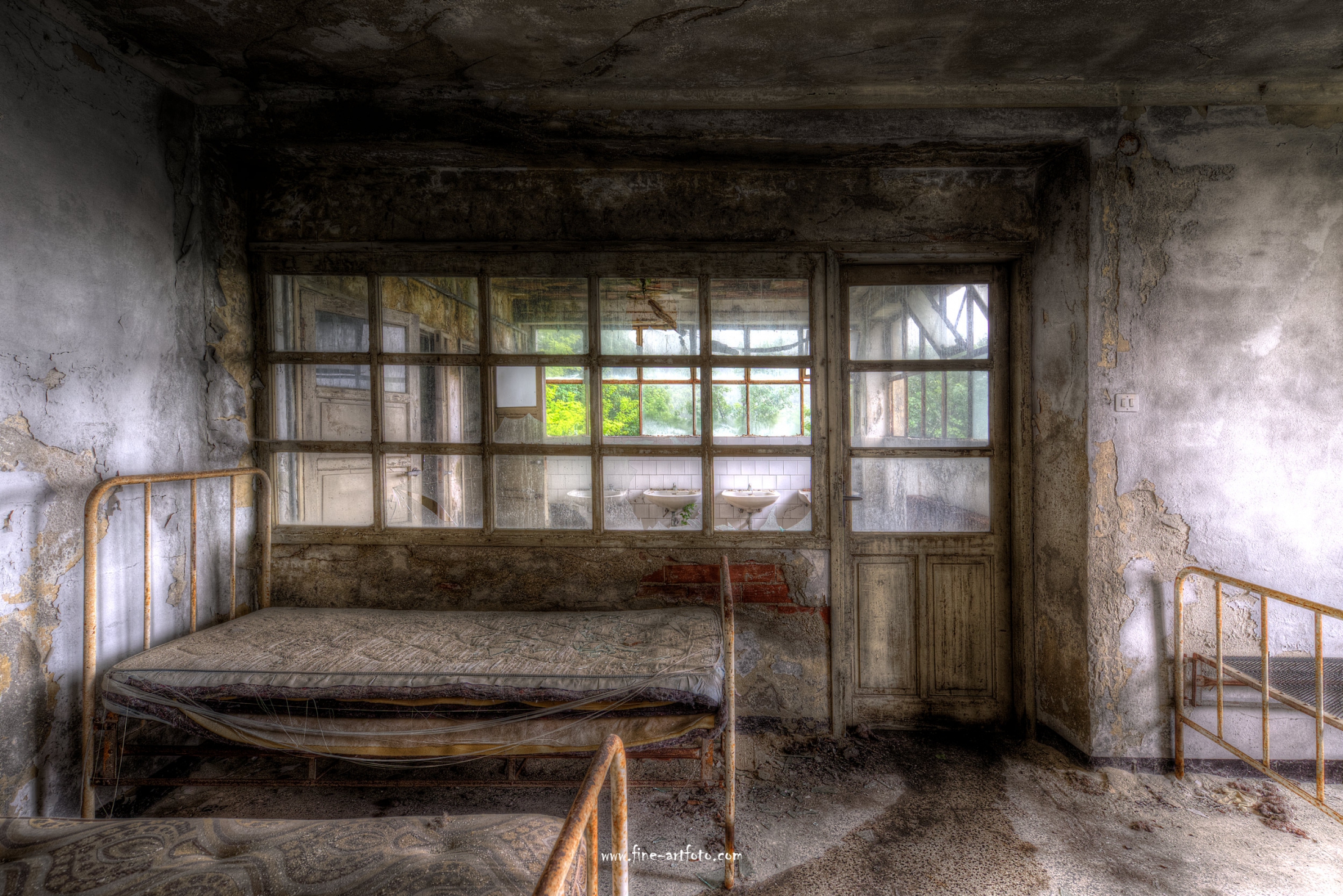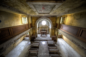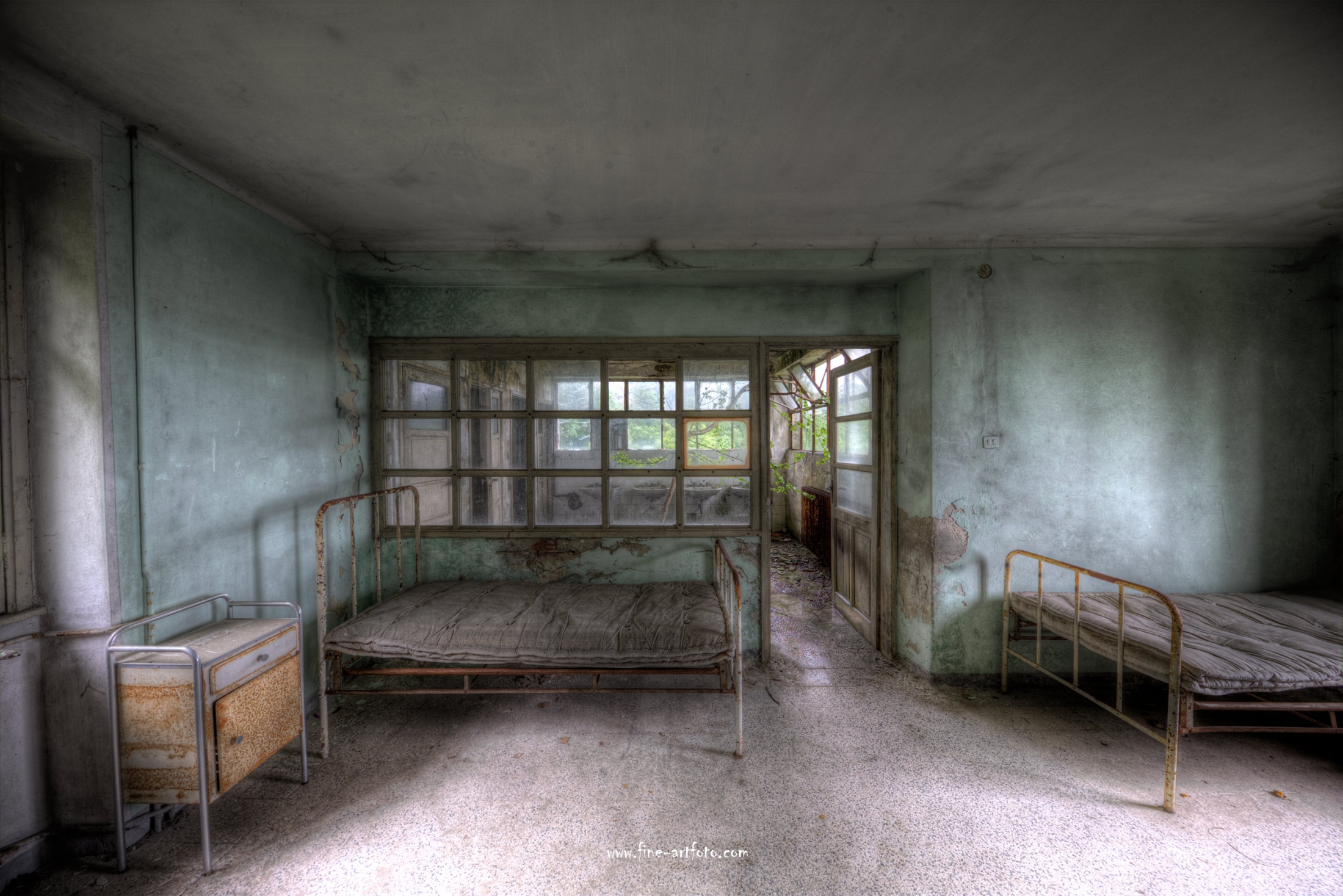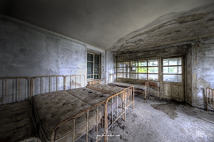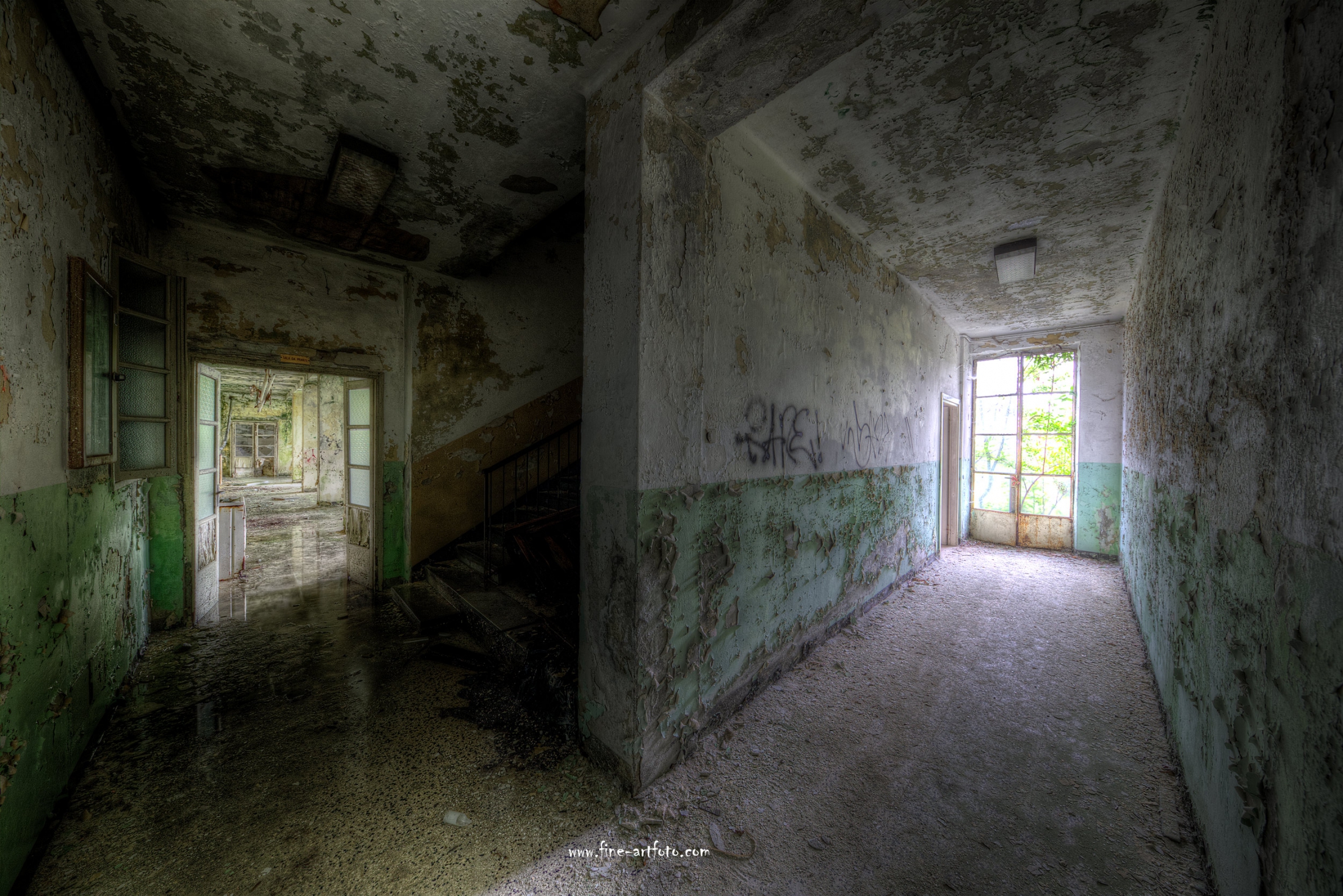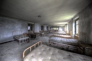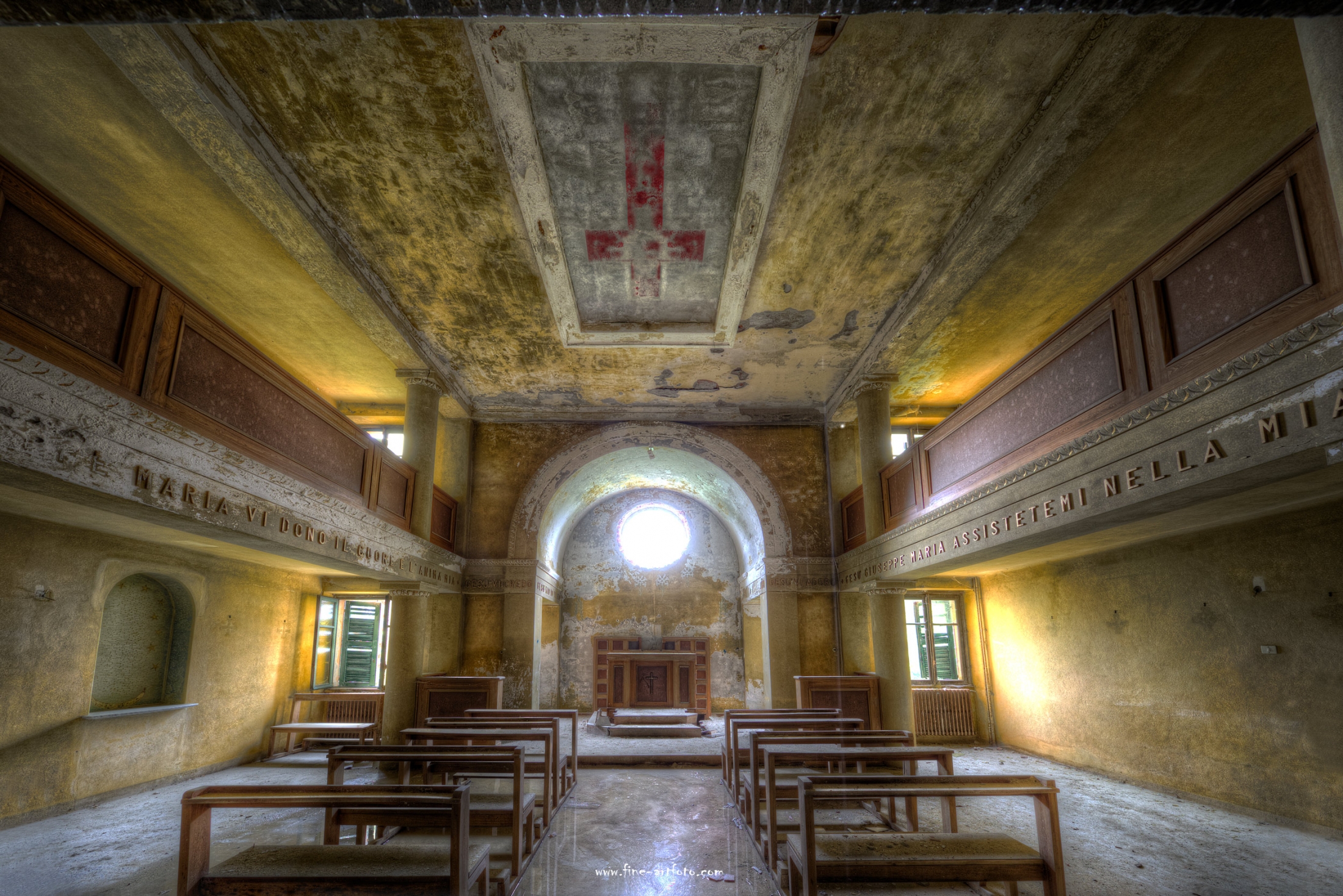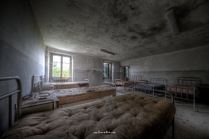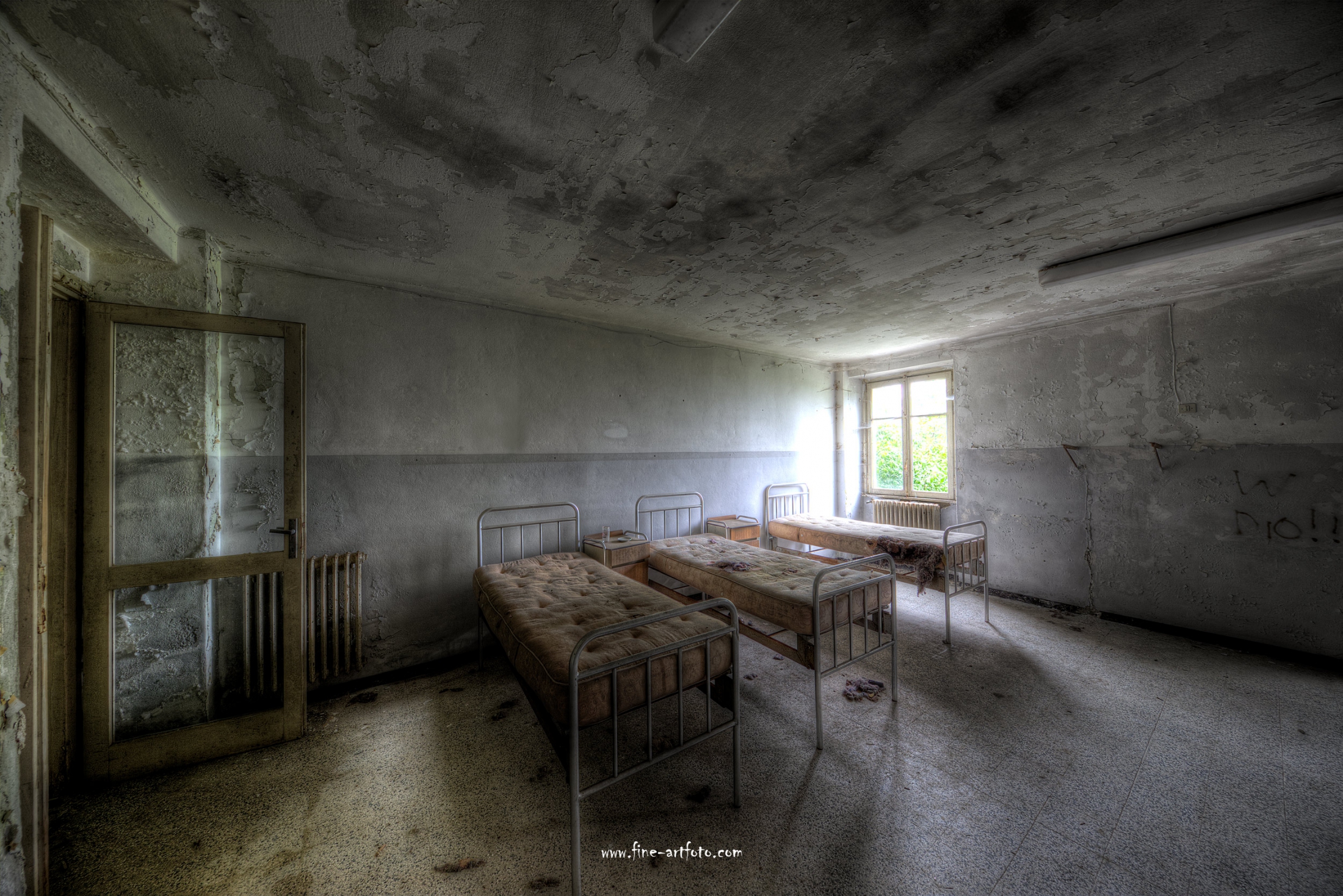 Somewhere far out in an idyllic lakeview surrounding, hidden in dense foliage lies a catholic children sanatorium. Long abandoned. Rain is seeping through all roofs and floors. You can still feel the stiff and strict ruling that governend the place. A deep devoutness still percolates through all rooms and and now, since the place is so innocently calm you are still touched with belief and a higher spirit.