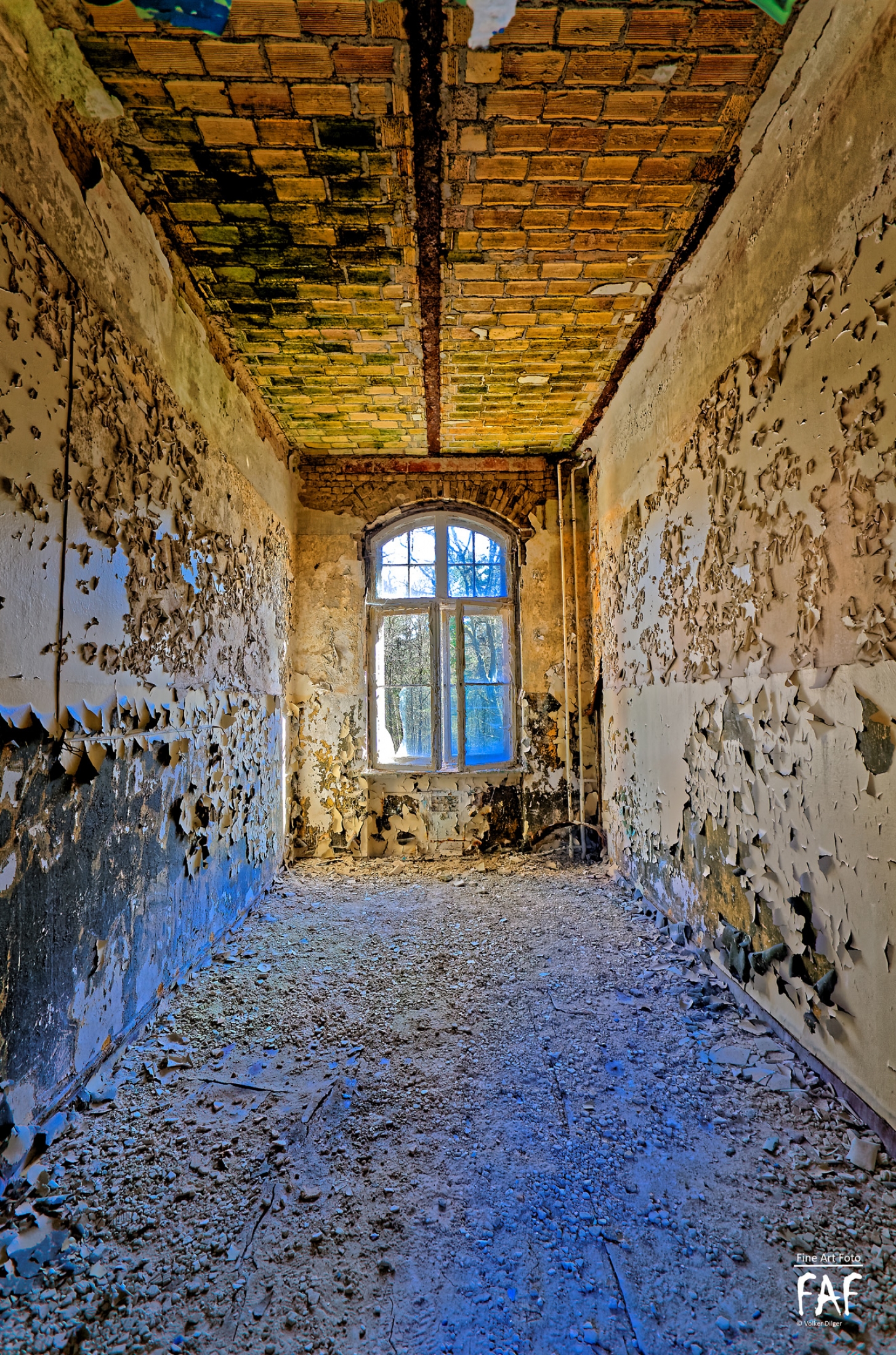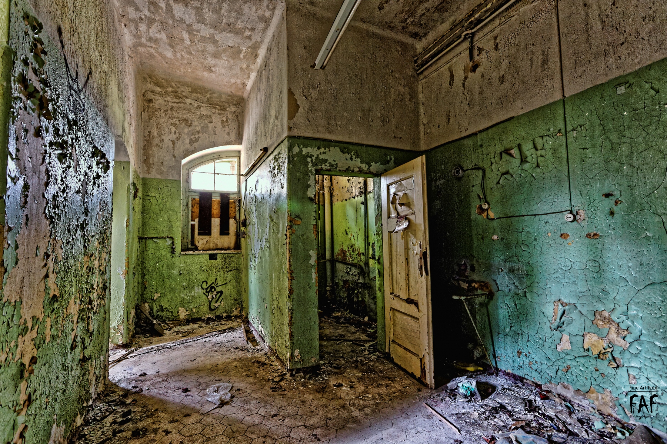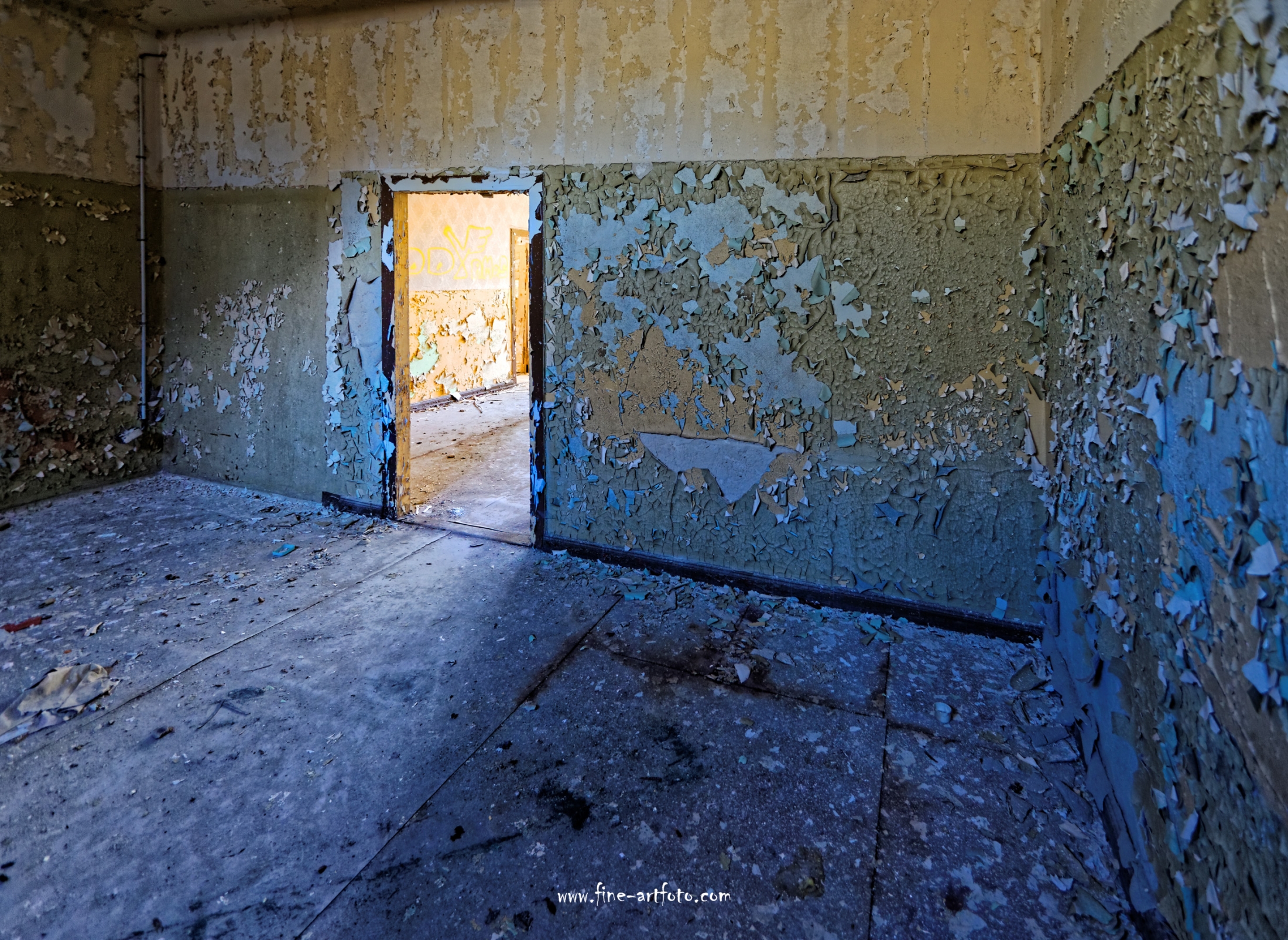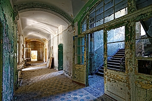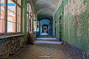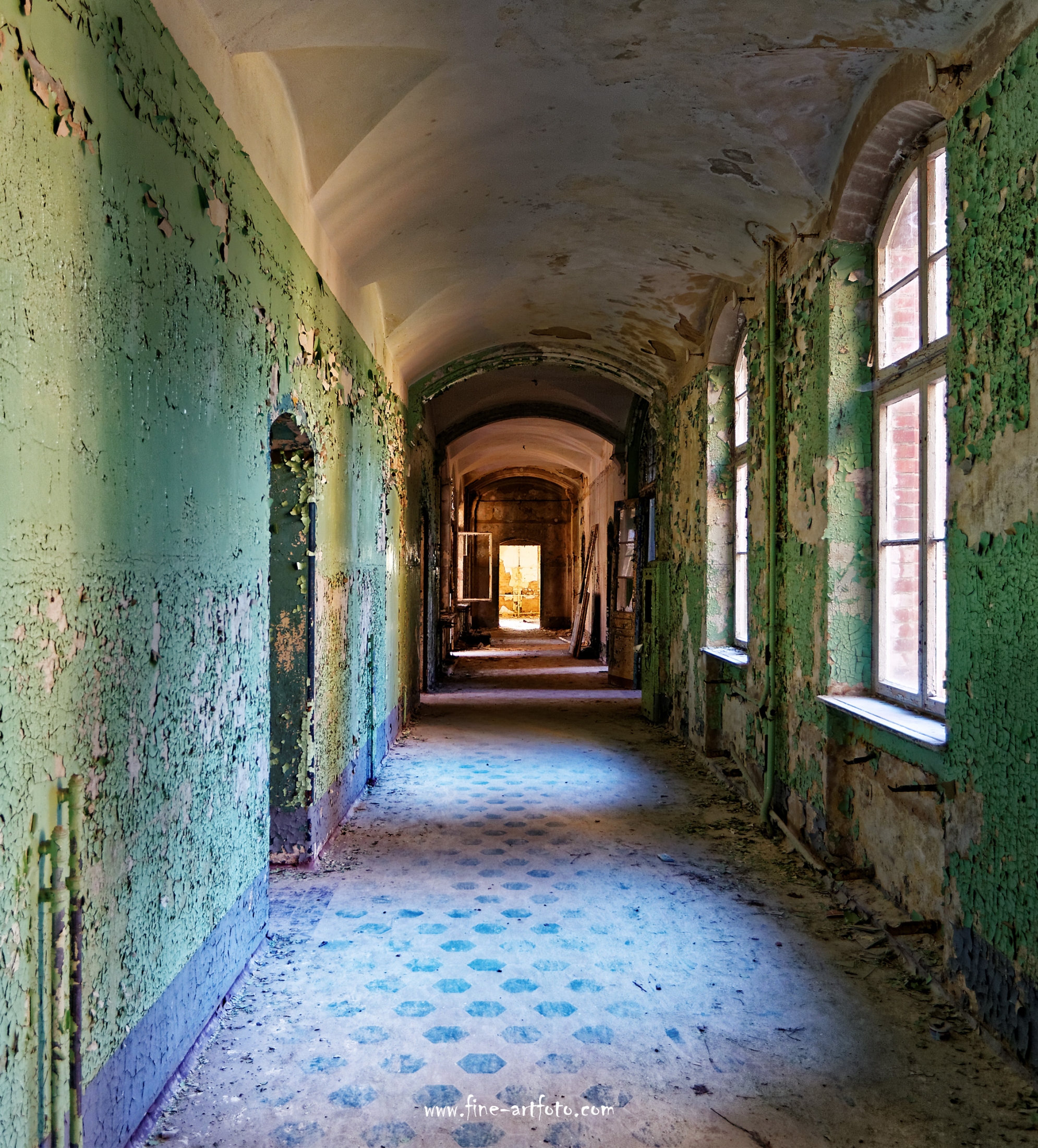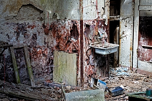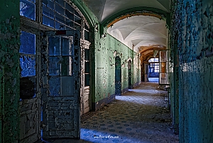 Beelitz today is corridors and flaking color. Interior, lamps and beds are now fully lost and disapeared.