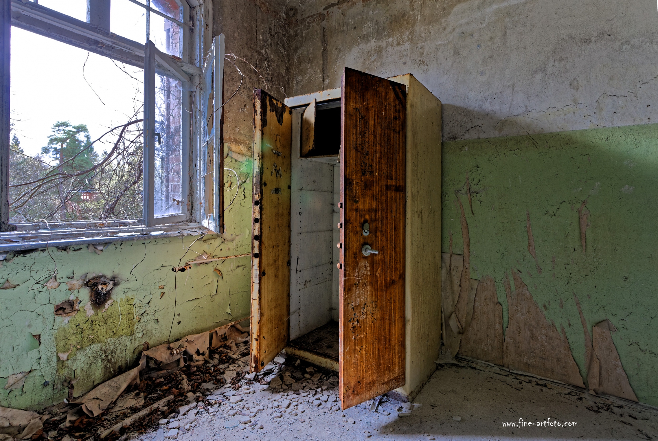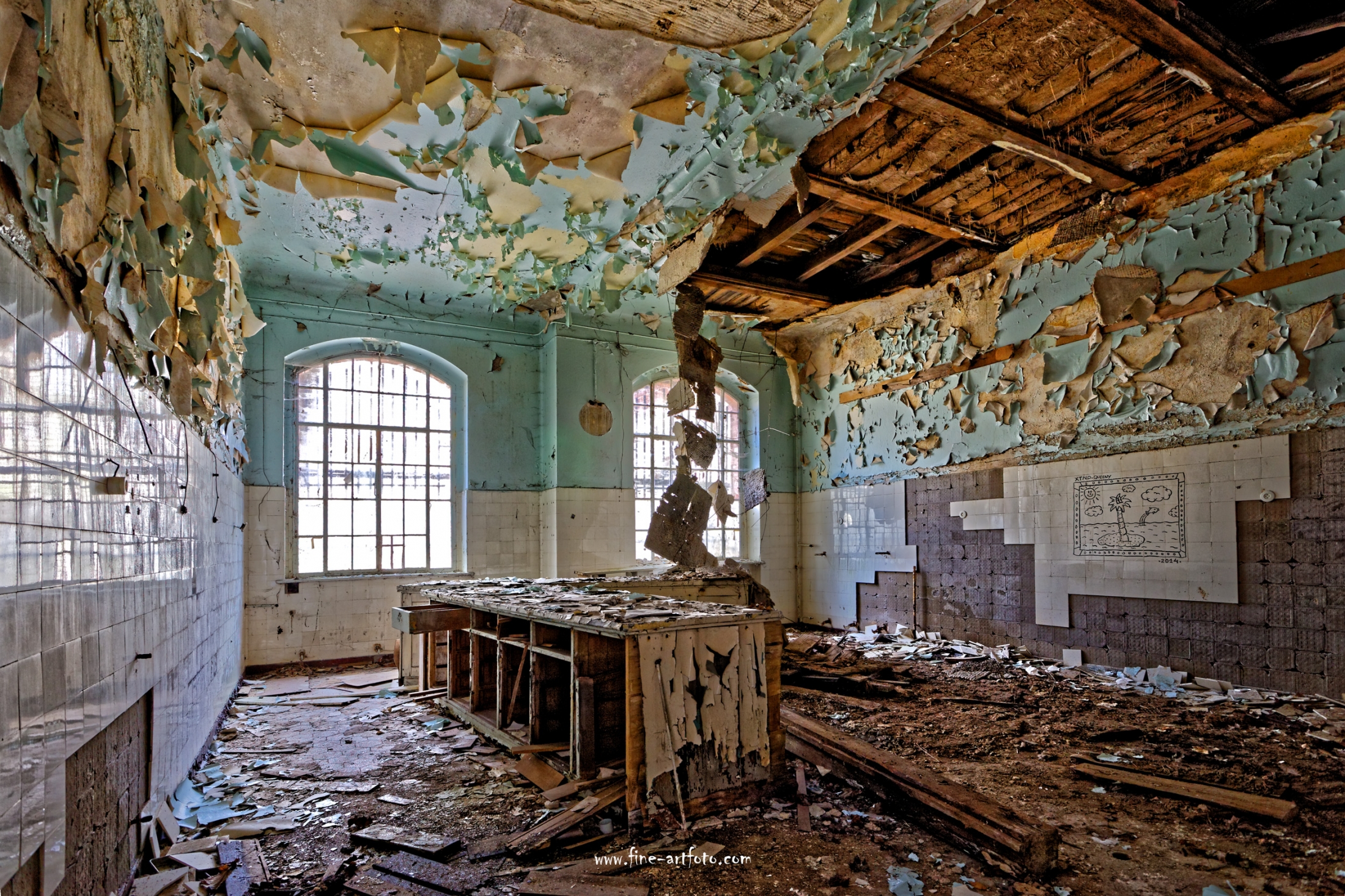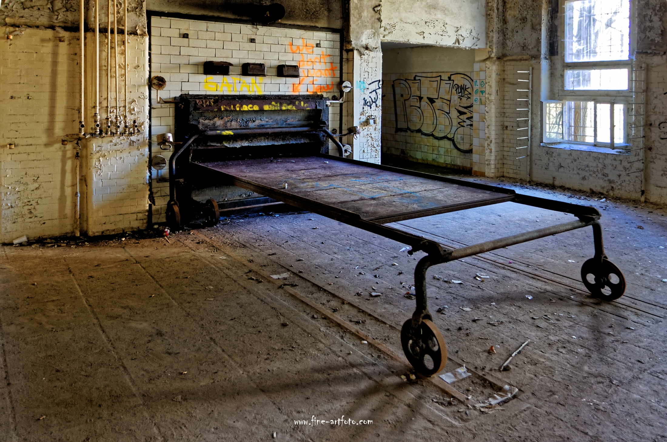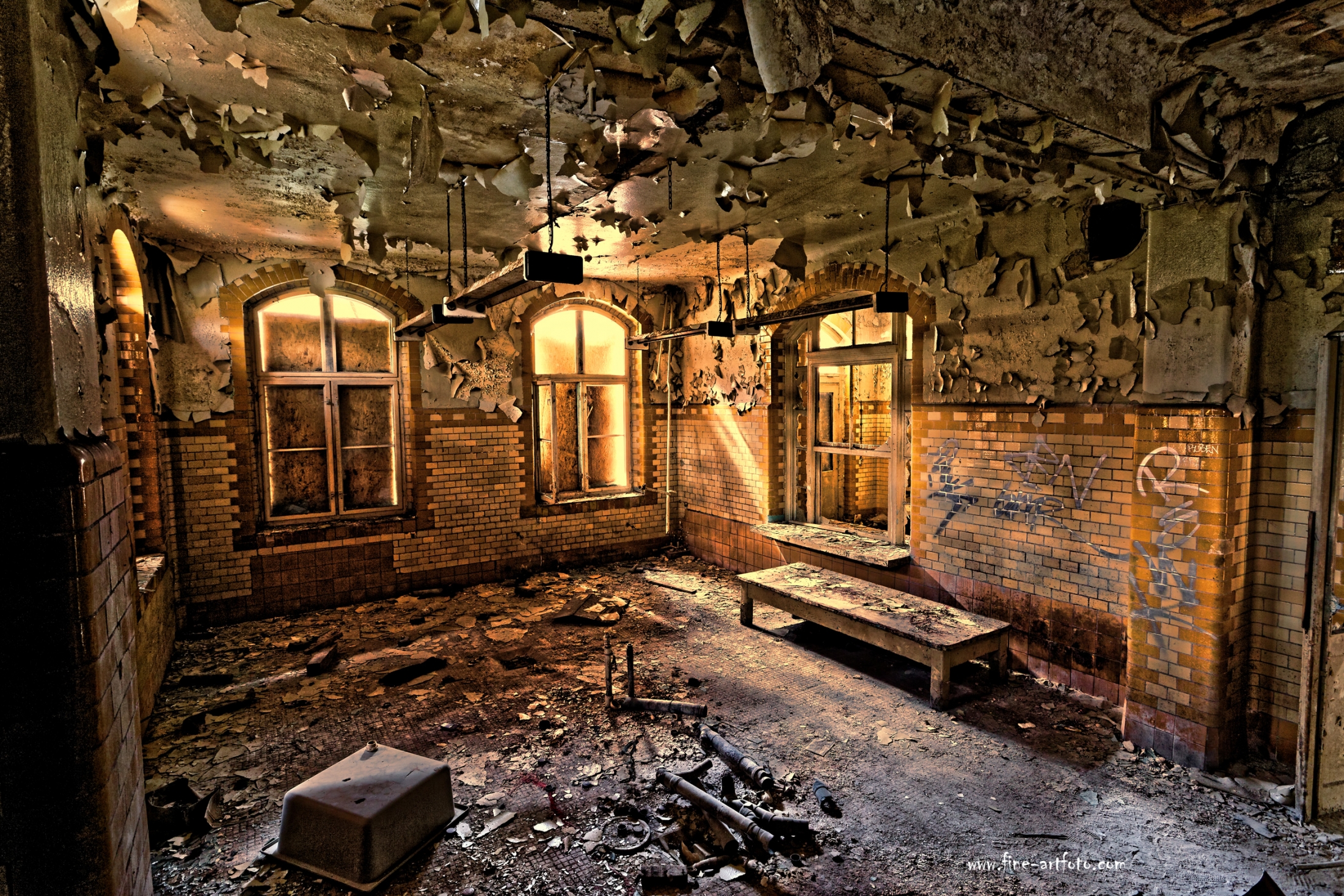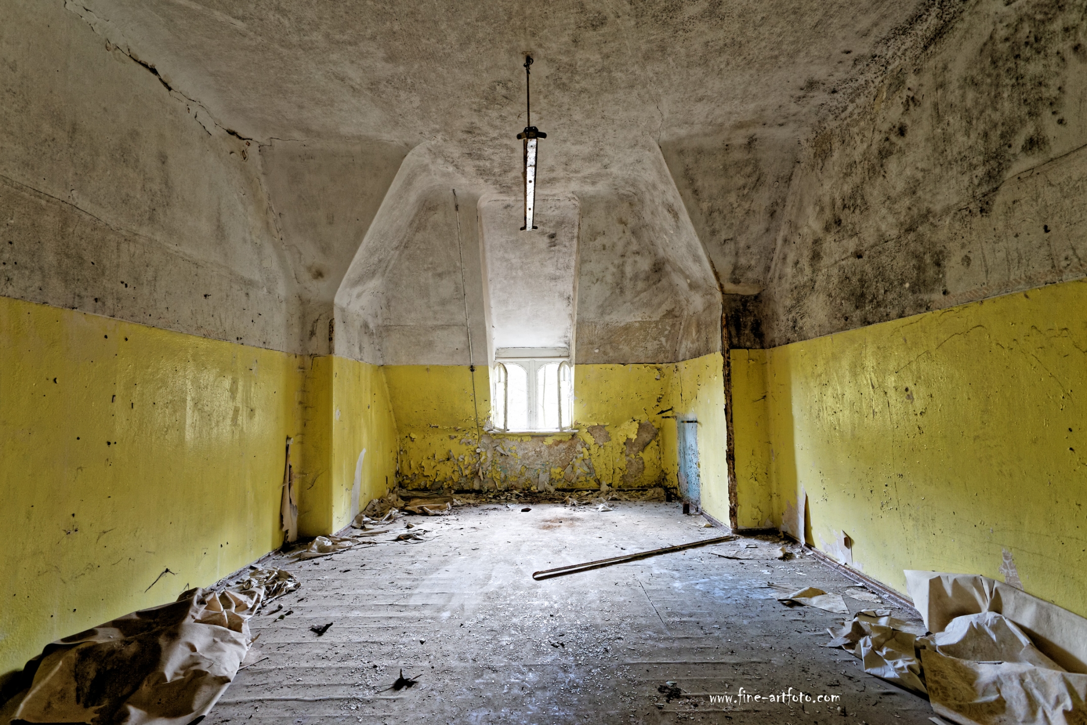 Beelitz today is corridors and flaking color. Interior, lamps and beds are now fully lost and disapeared.