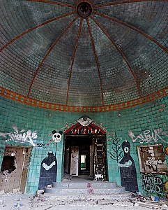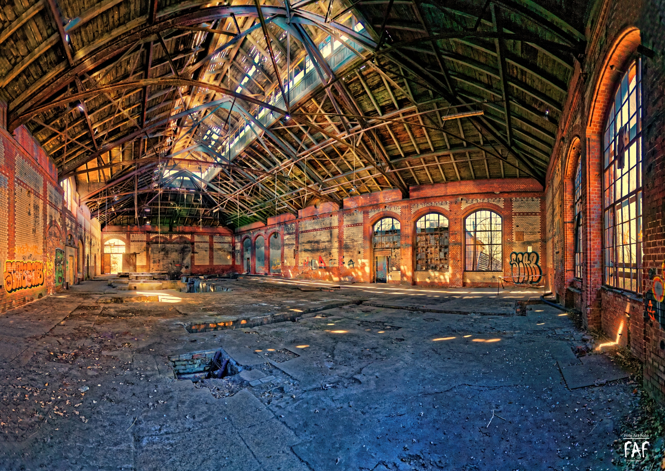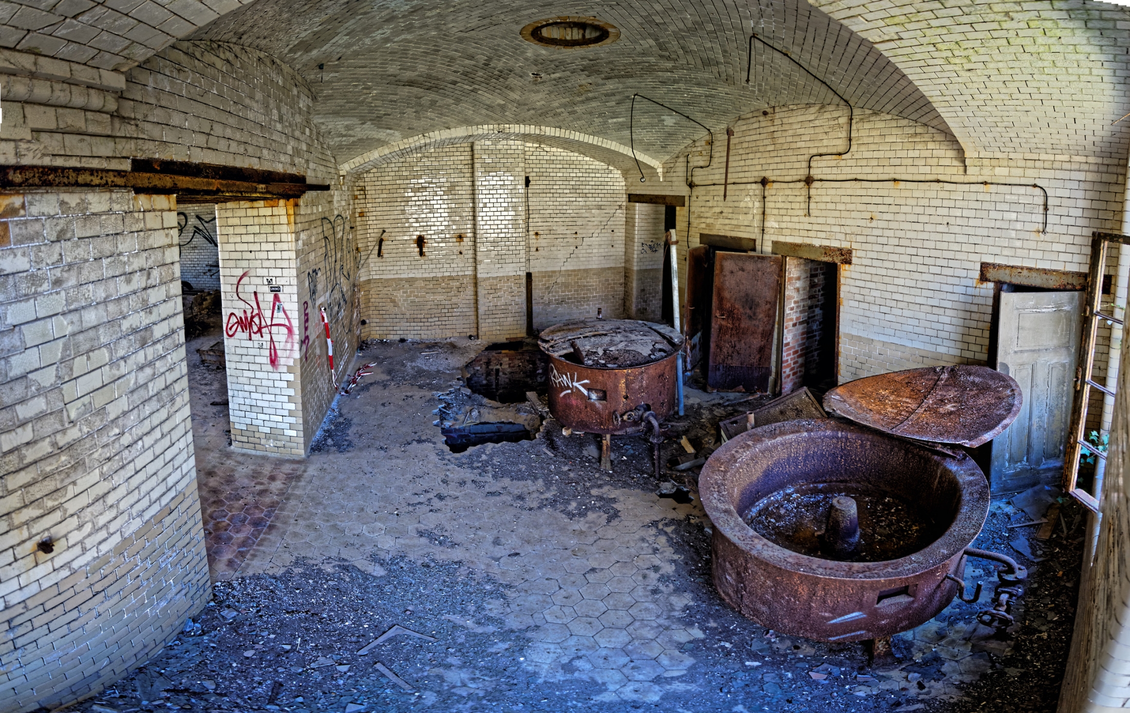 Given up in 1994. The owners went bankrupt in 2001. The place is so vast that, after being deserted could not be protected. Soon the typical Berlin Problem emerged. Vandalism, Graffiti (but not that much), and dropouts were roaming the place. Comparing photos over the years show the strong destruction of this place.