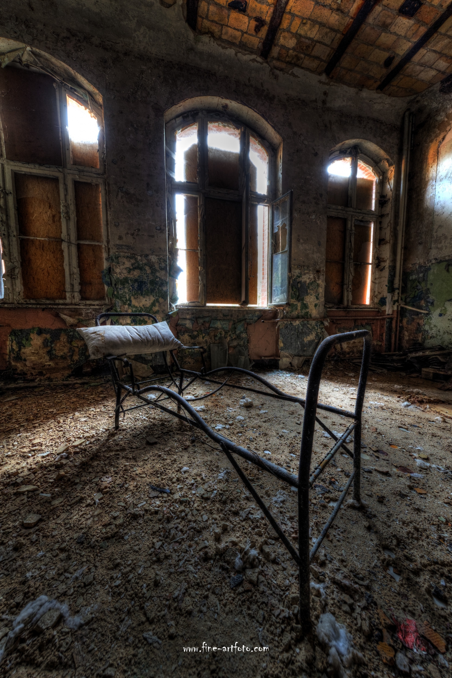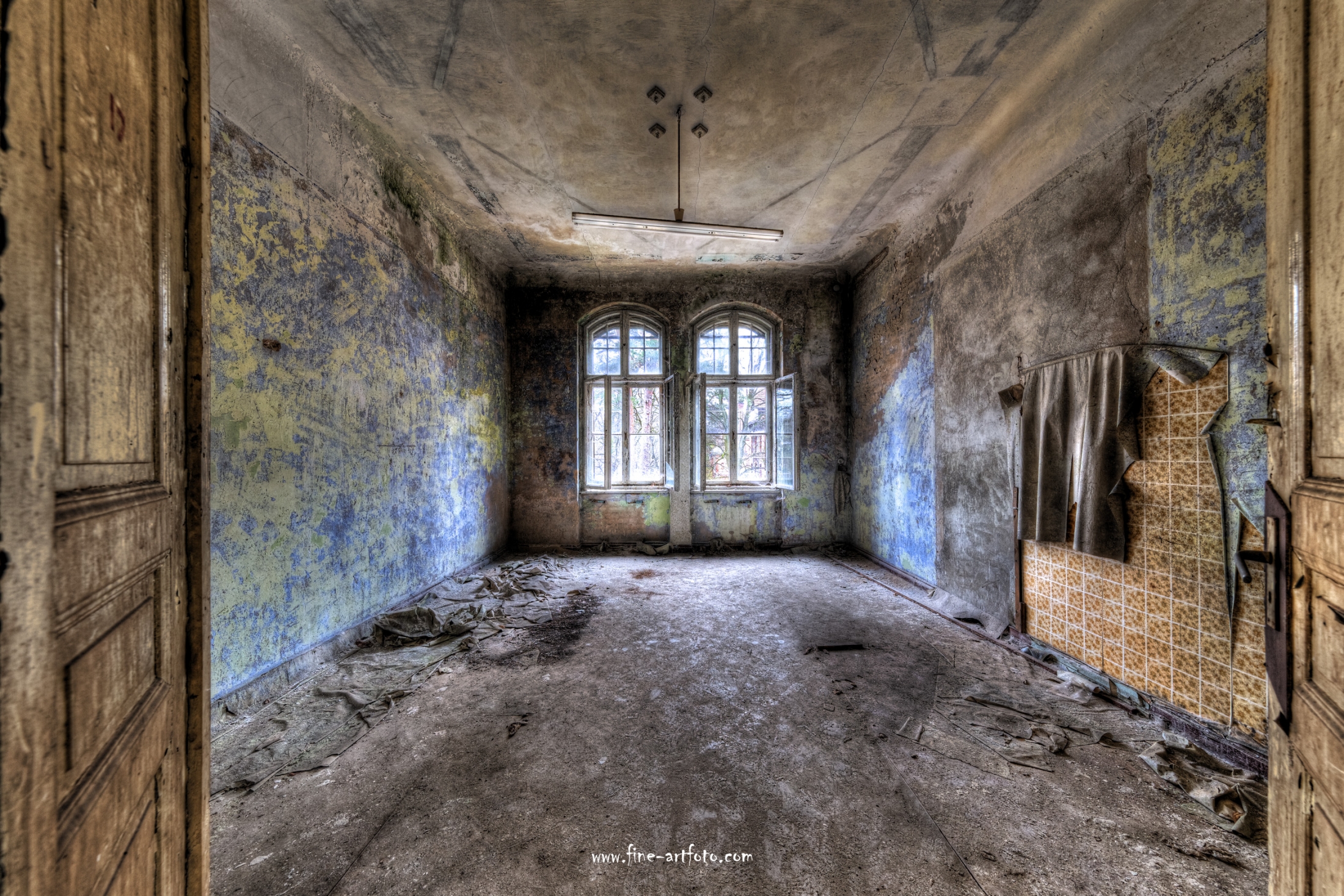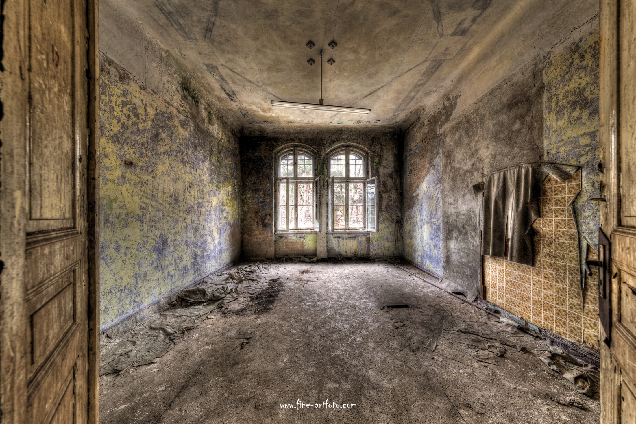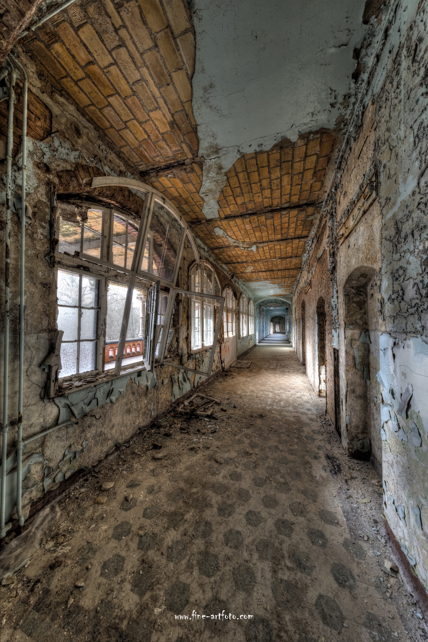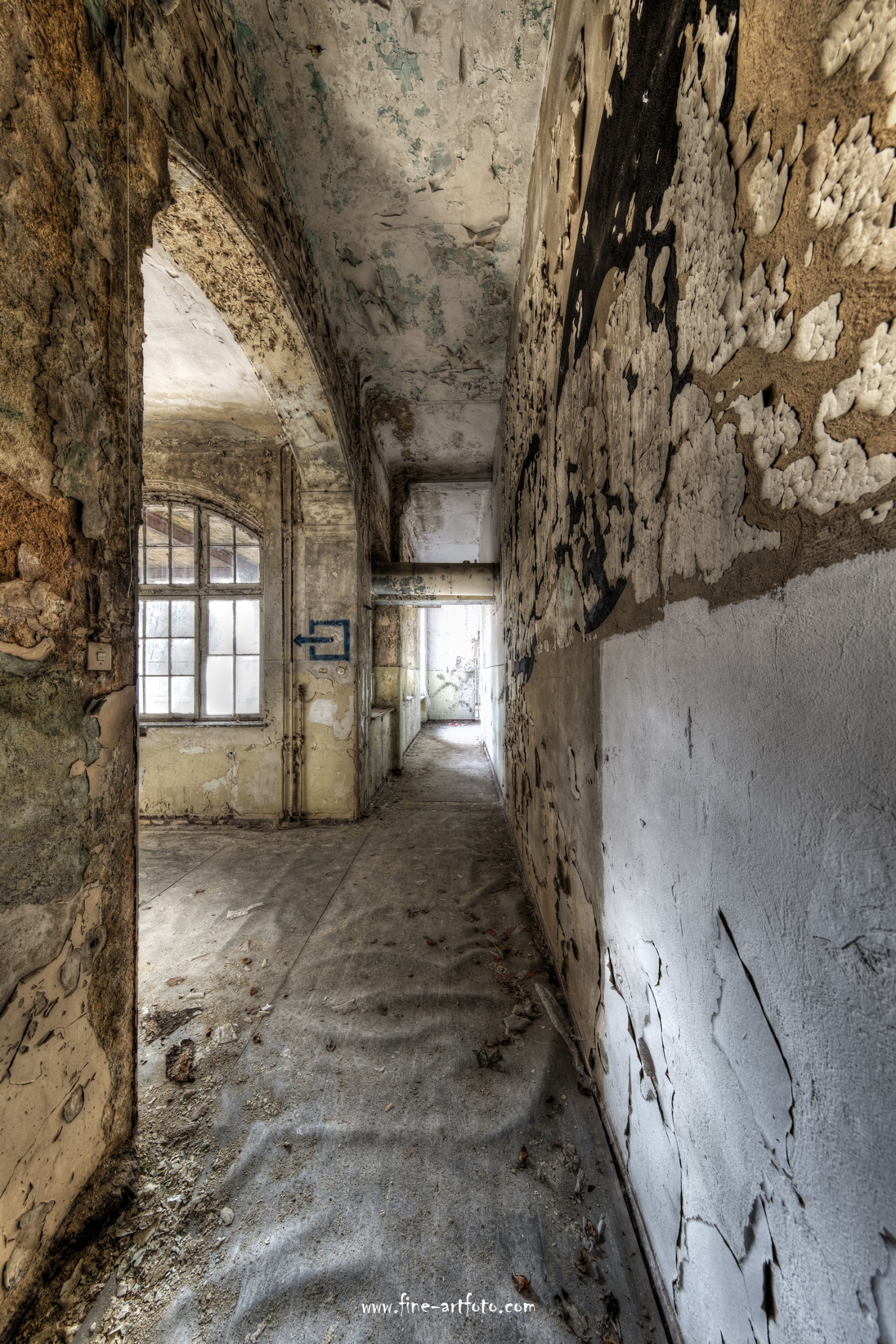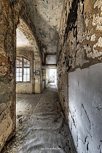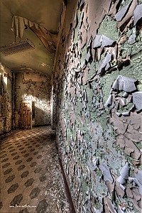 Beelitz today is corridors and flaking color. Interior, lamps and beds are now fully lost and disapeared.