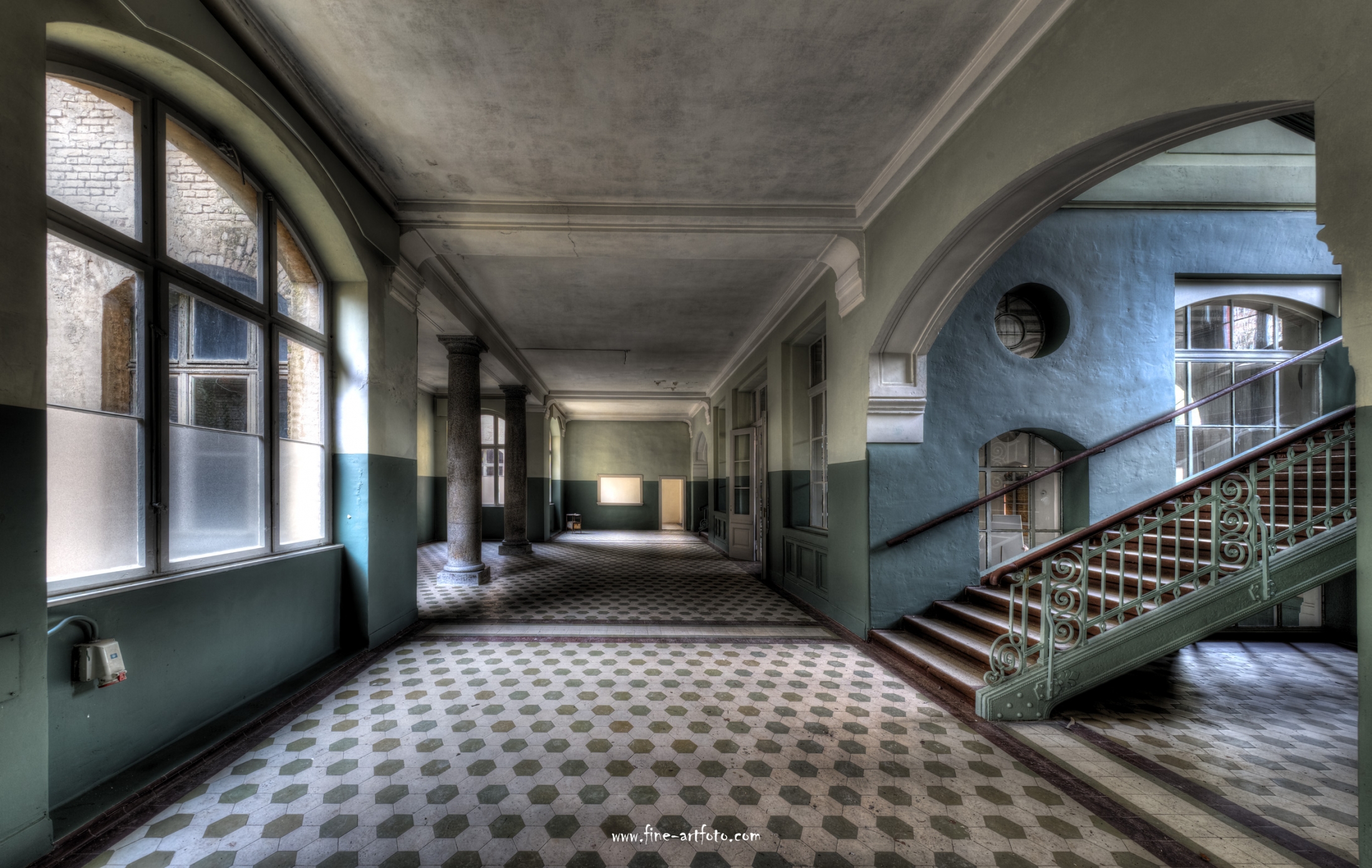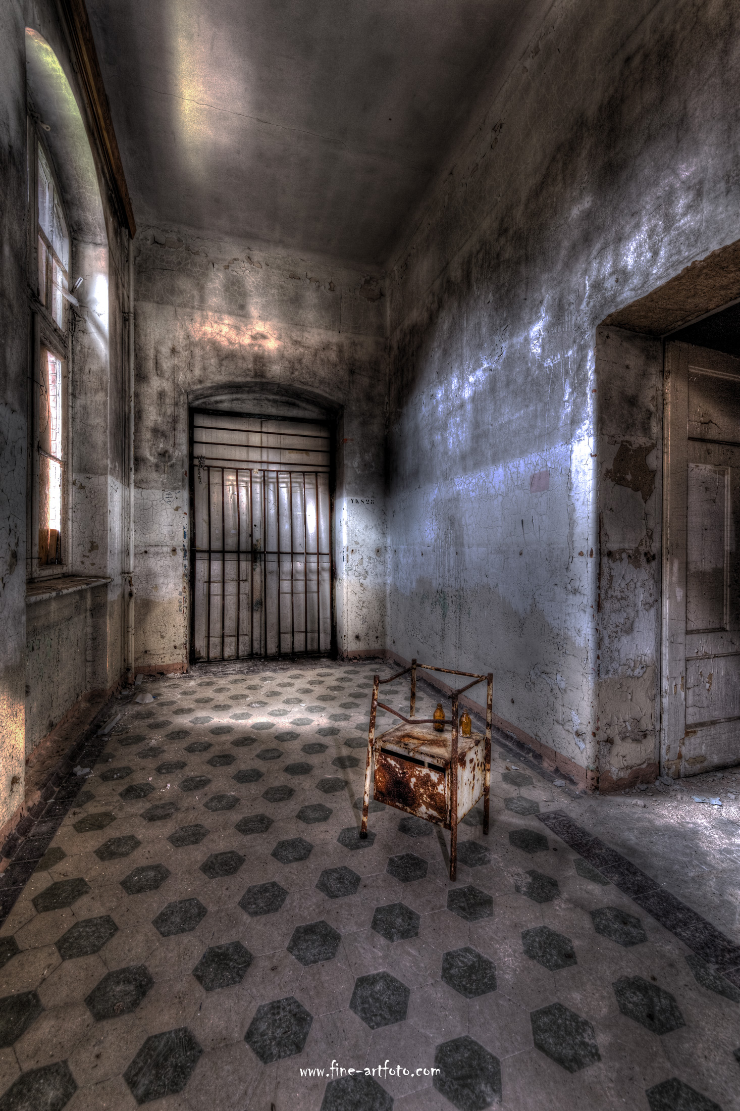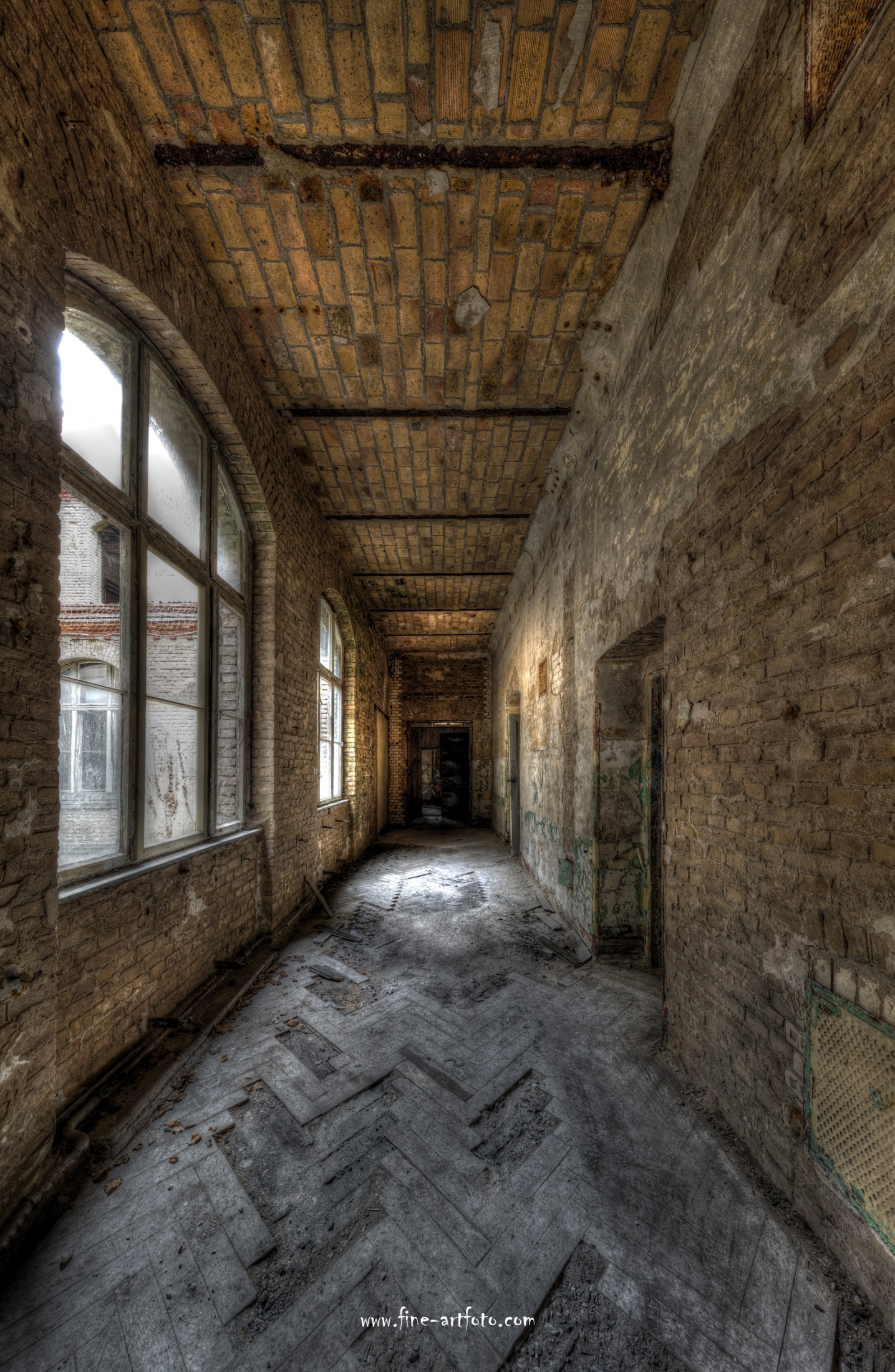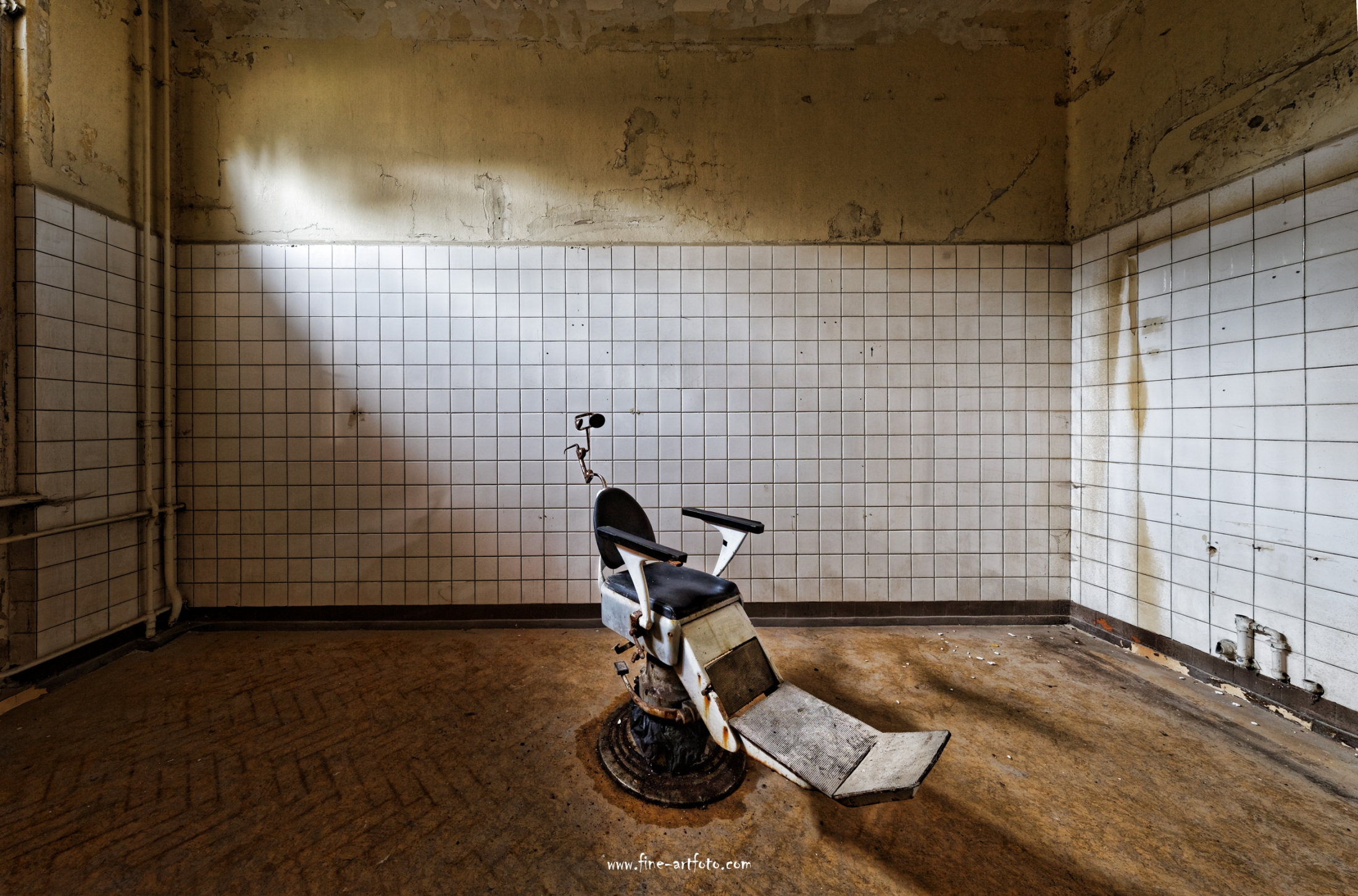Beelitz today is corridors and flaking color. Interior, lamps and beds are now fully lost and disapeared.