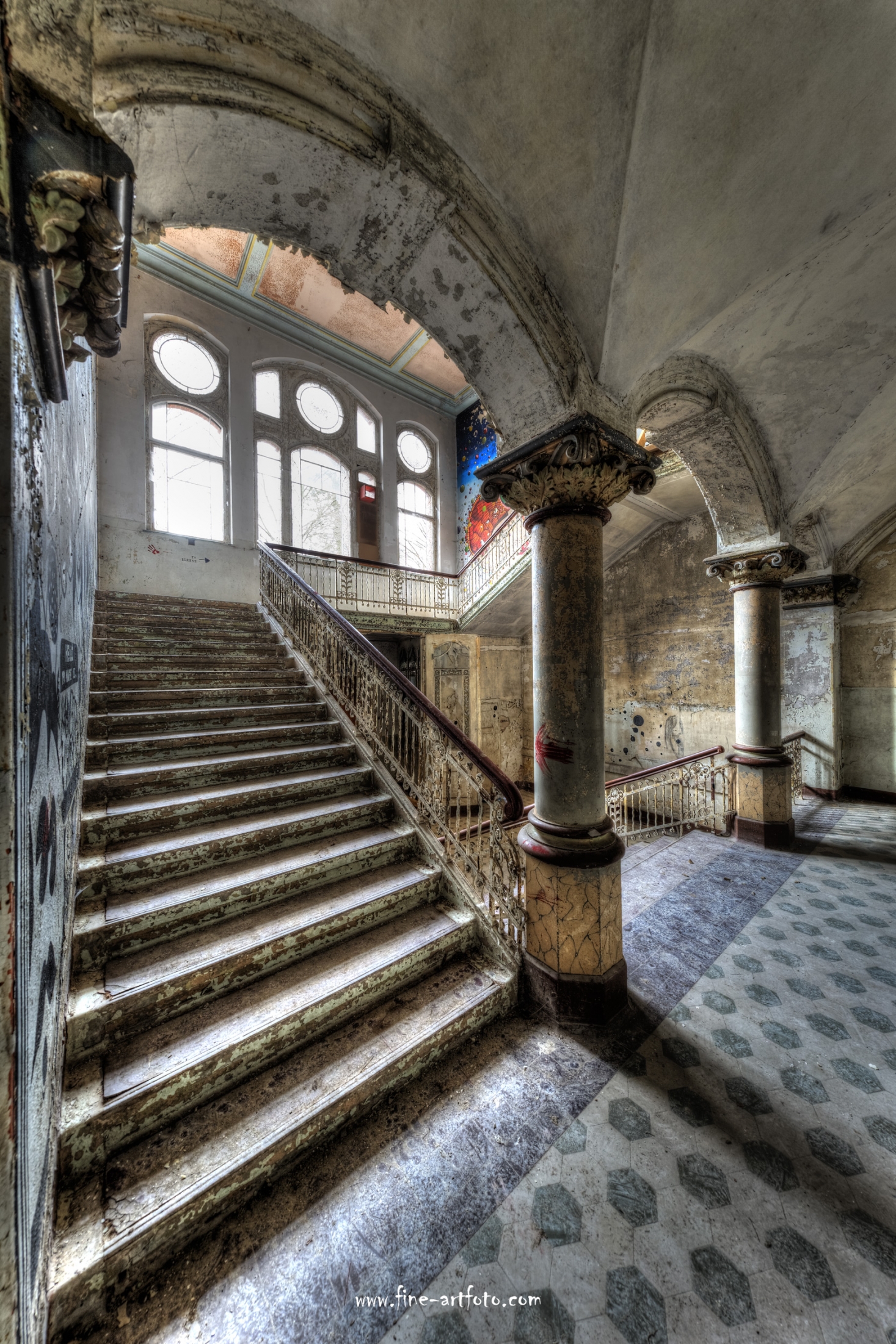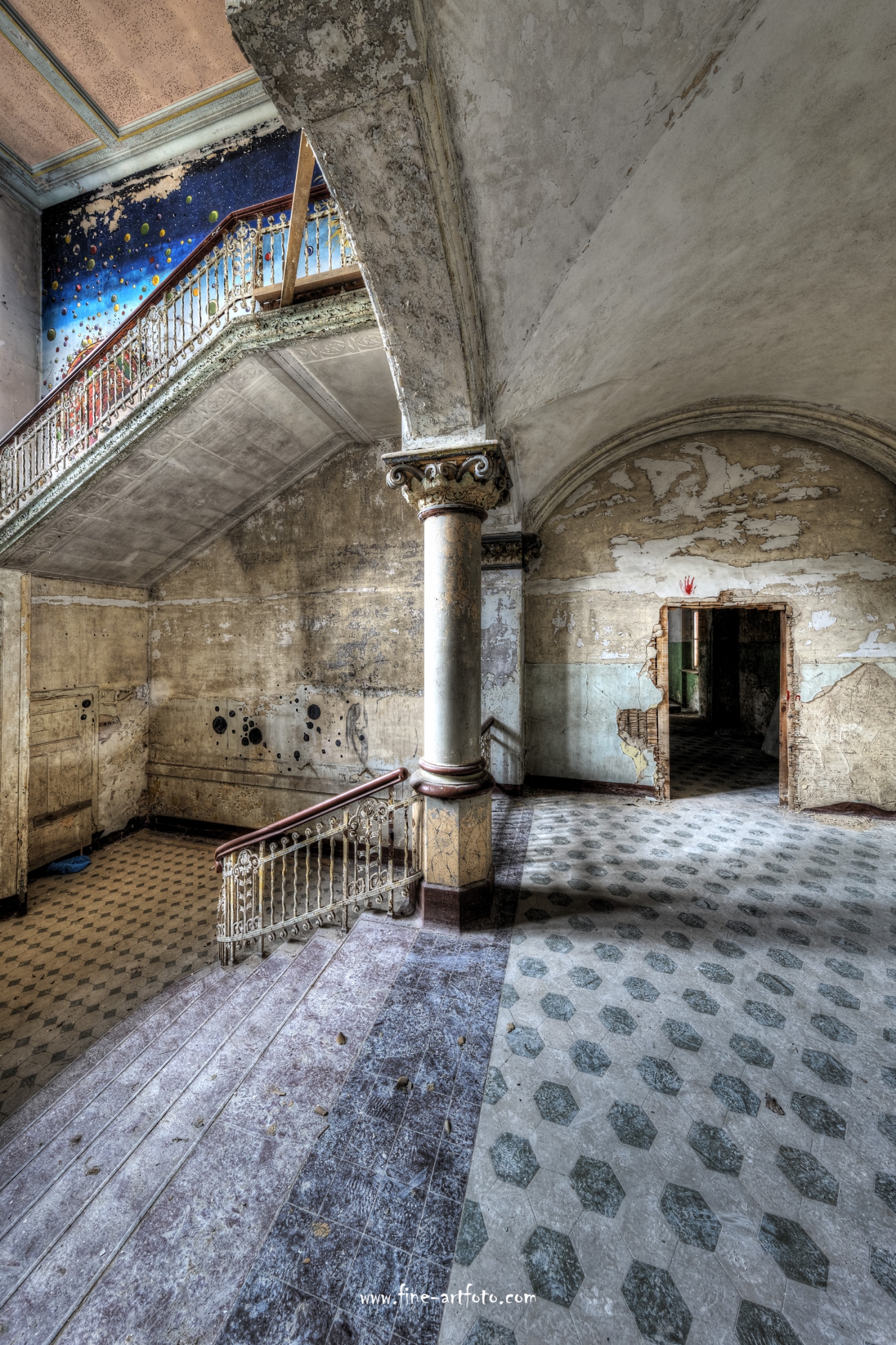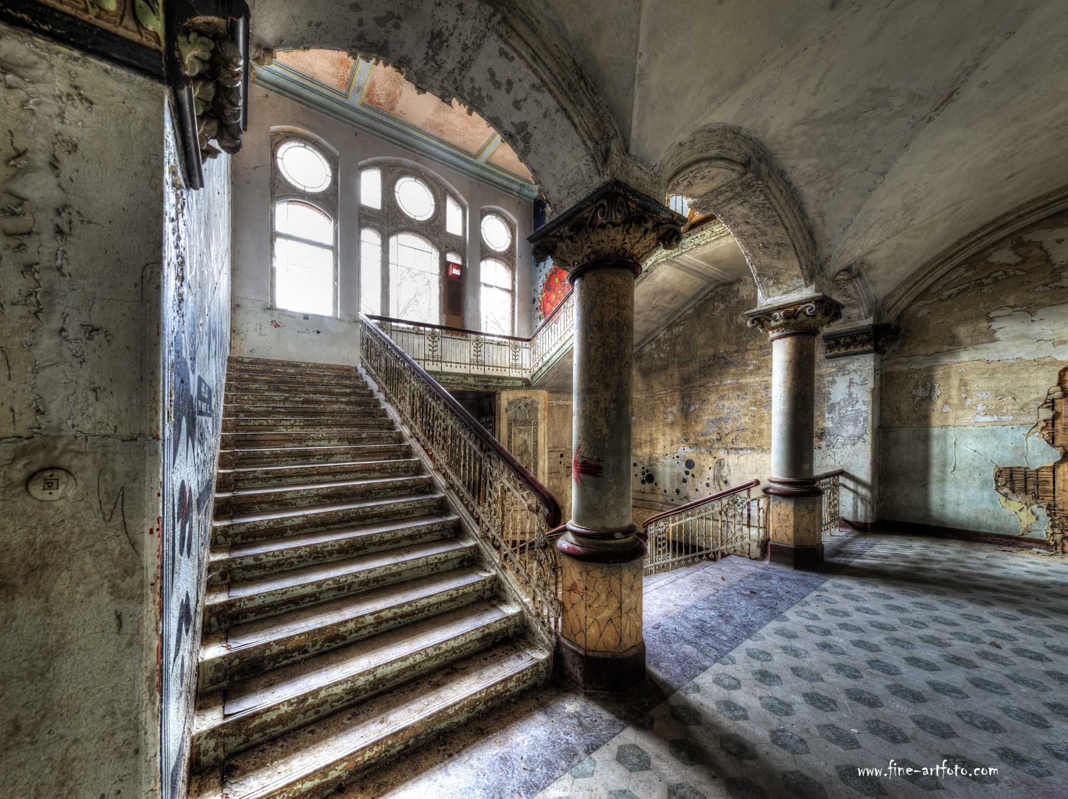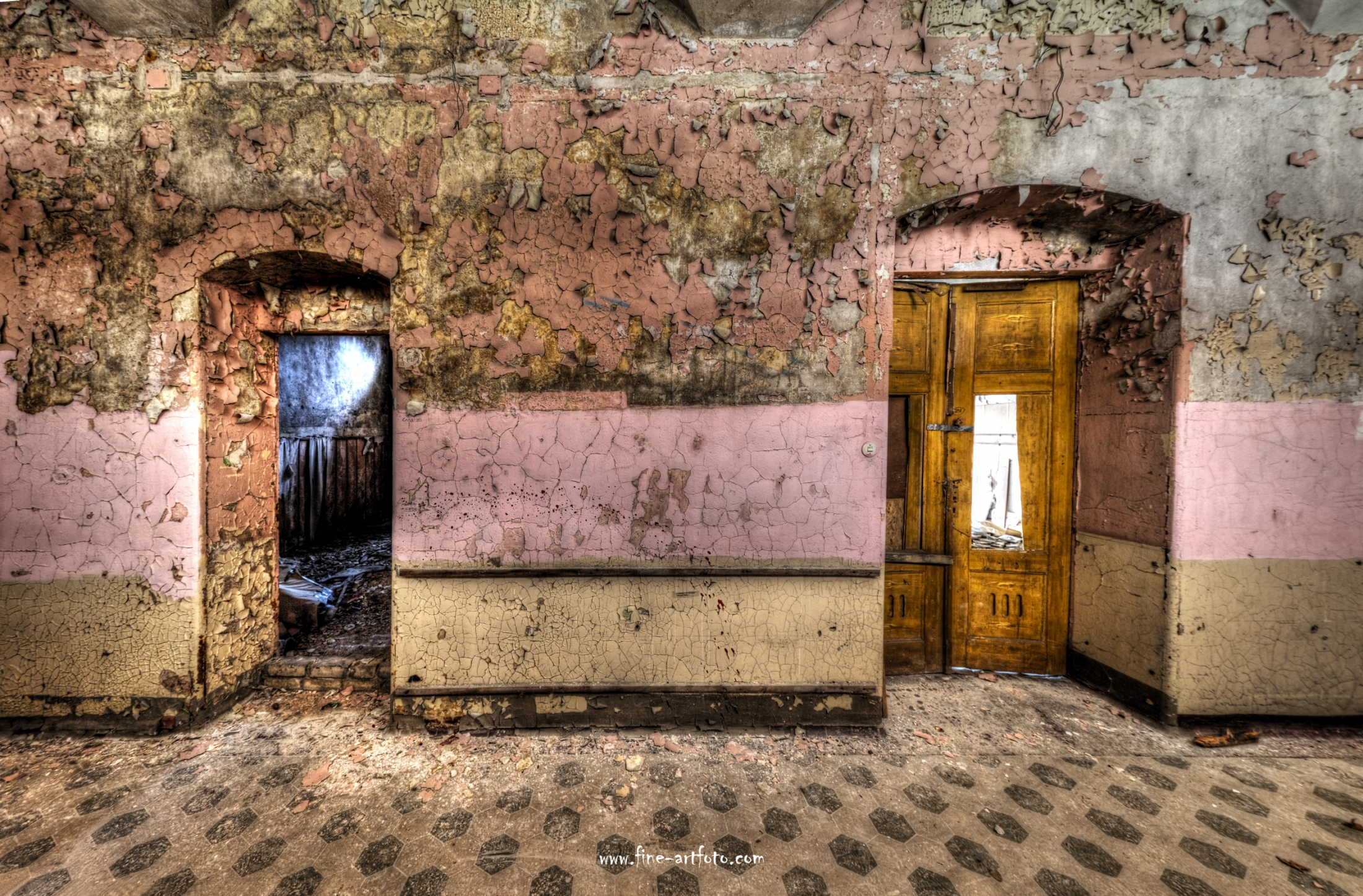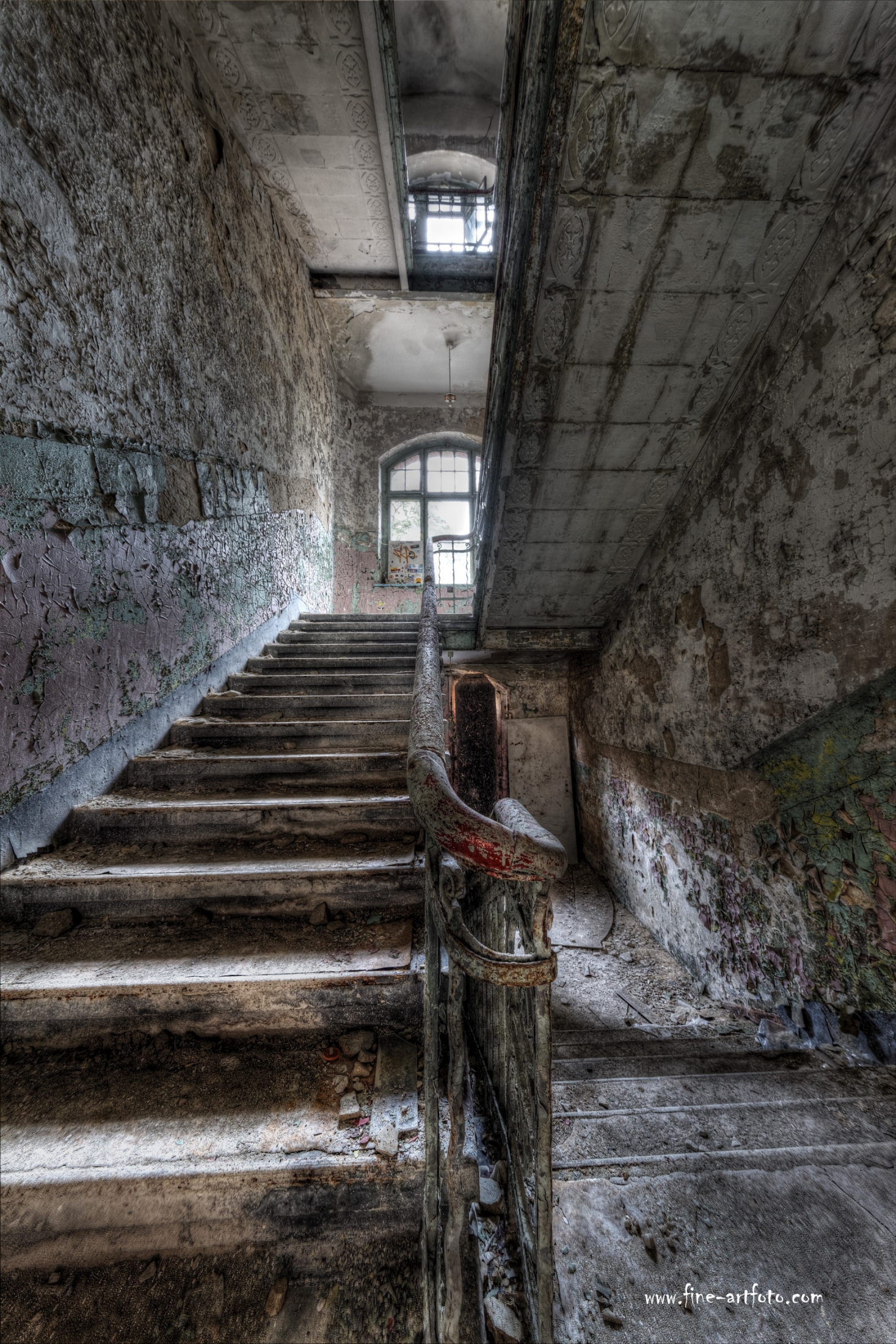 Beelitz today is corridors and flaking color. Interior, lamps and beds are now fully lost and disapeared.