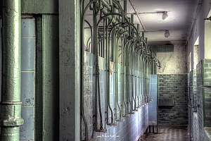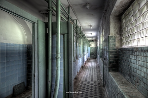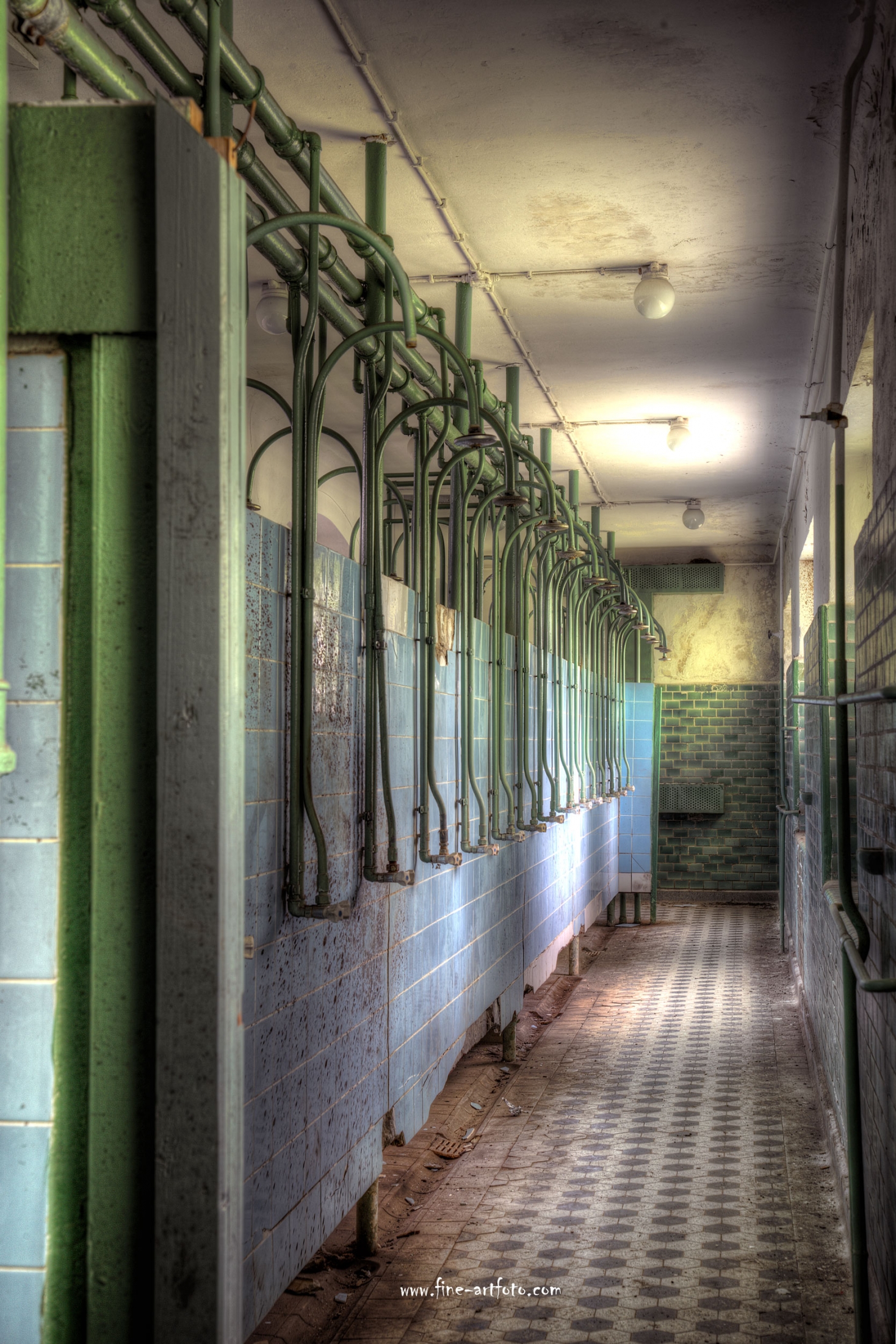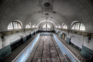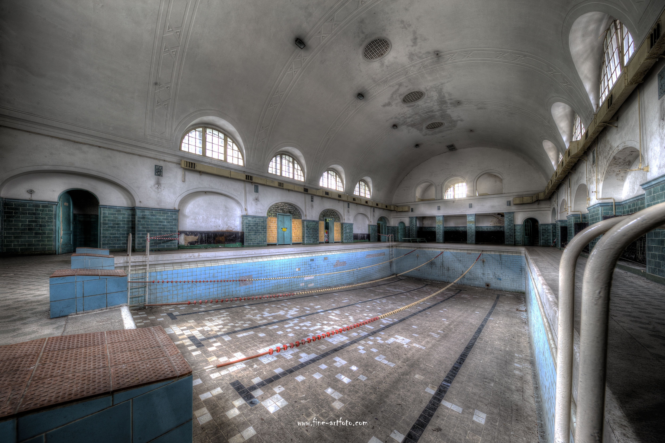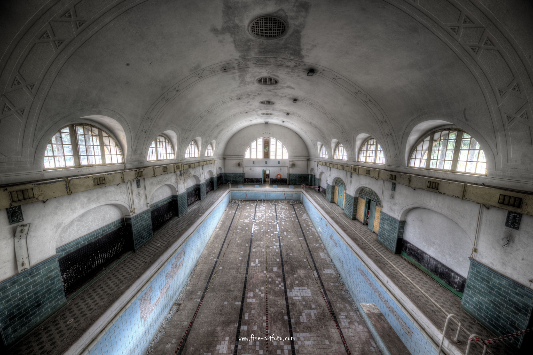This nice swimming pool lies hidden deep in Germany´s forests. It is part of larger conglomerate of buildings. All lost for a long time. The nice part here is that it is basically untouched. No vandalism and graffiti and a lot of interiour is still undamaged at its place. The place looks like humans just vanished like the water that evaporated from the pool having the lane dividers still now hanging in the air.