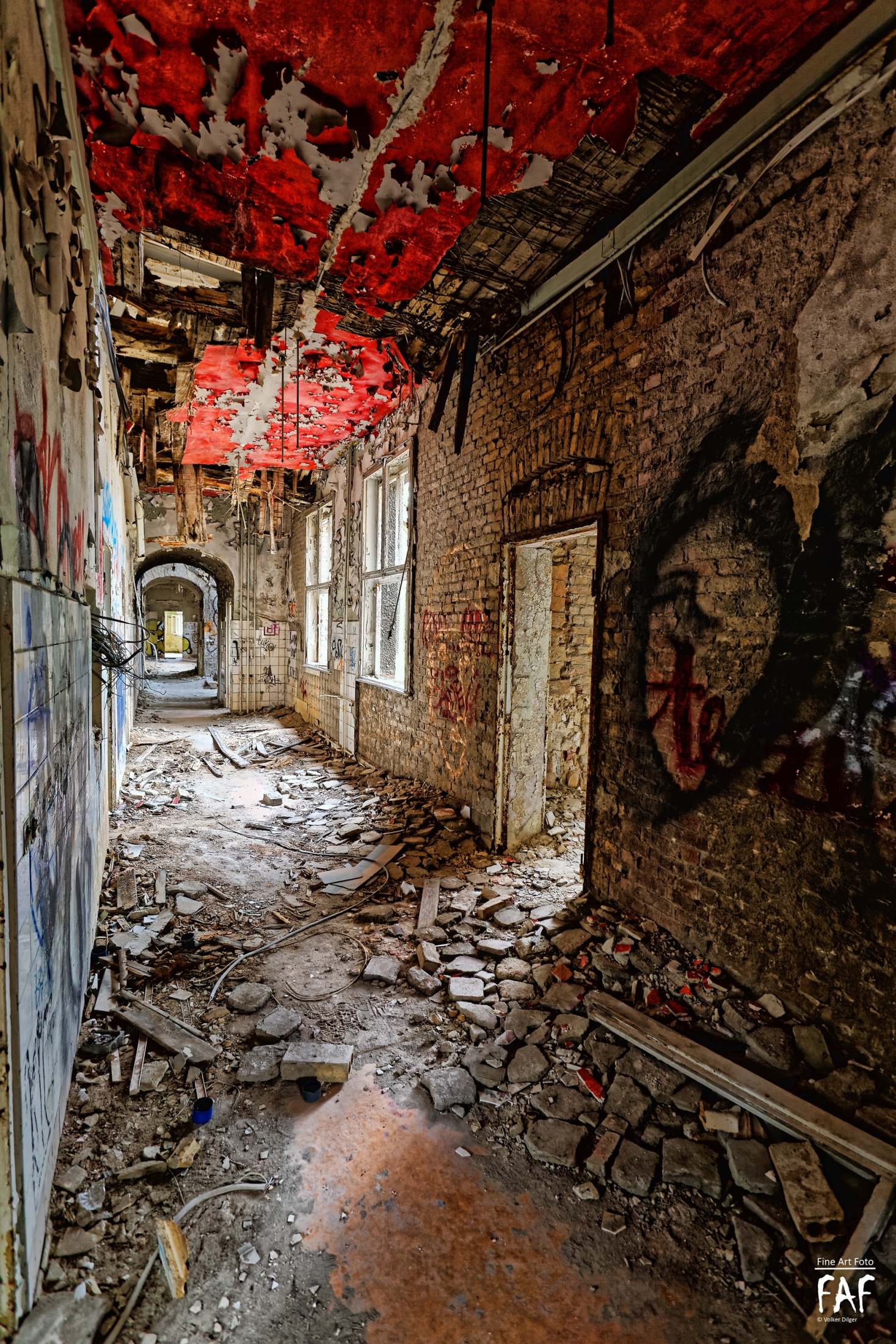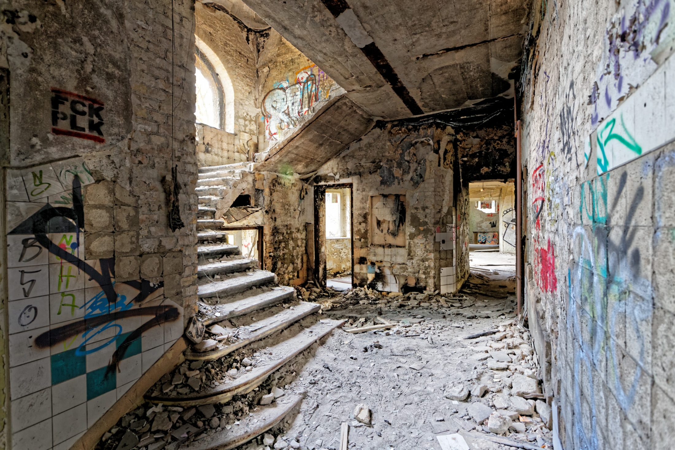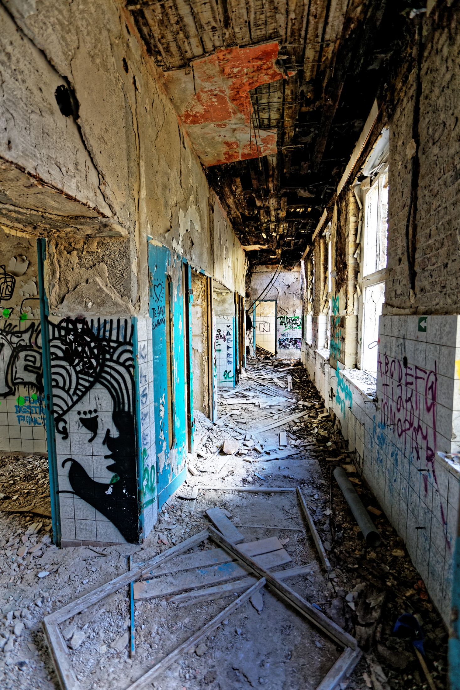 Once a huge childrens clinic now a shattered and abandoned place that was long time free accessible. For this reason Berlin´s artists and sprayers used this site to show their art. Even Graffiti artists from switzerland used this place to create their huge pictures.