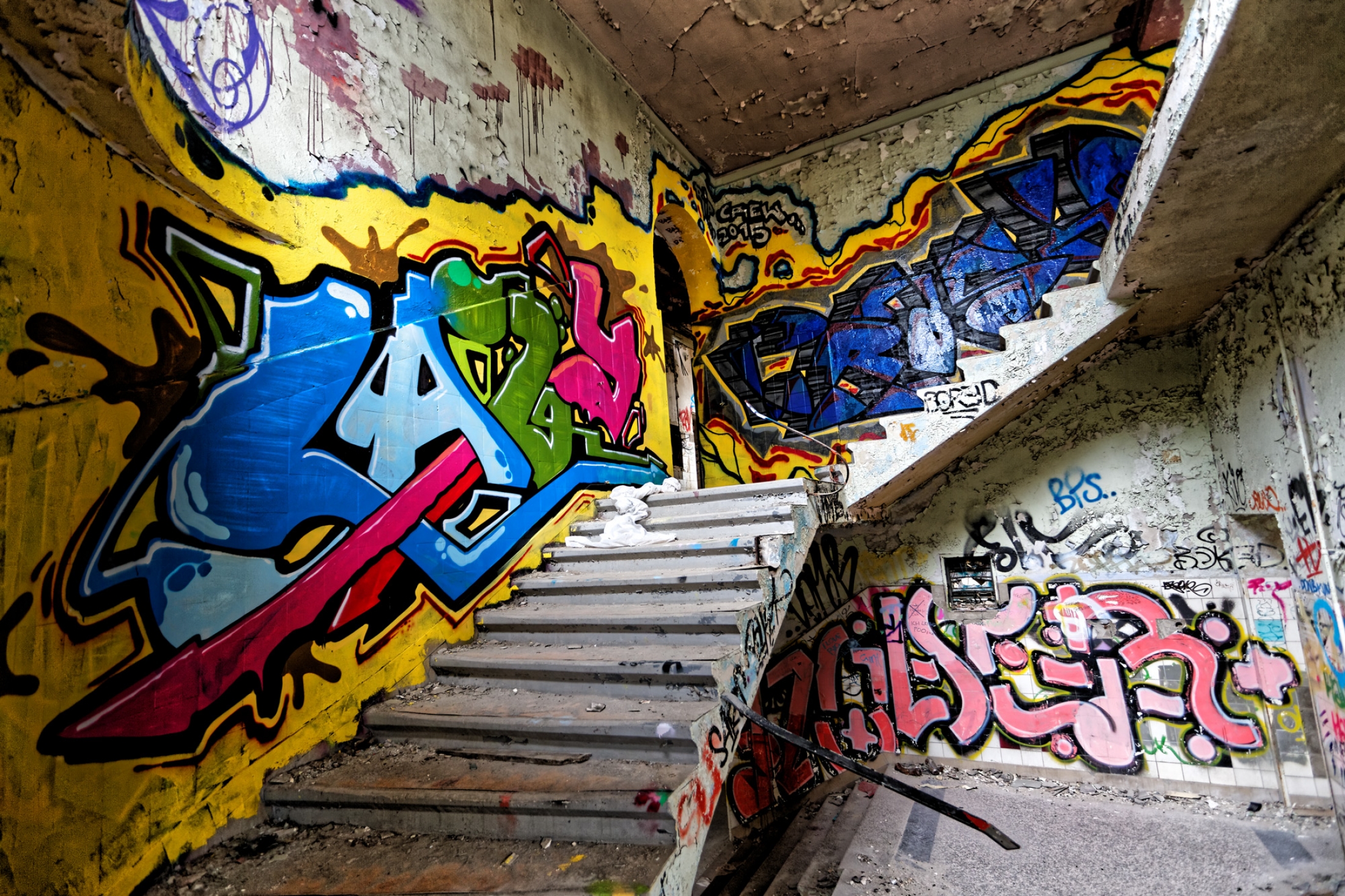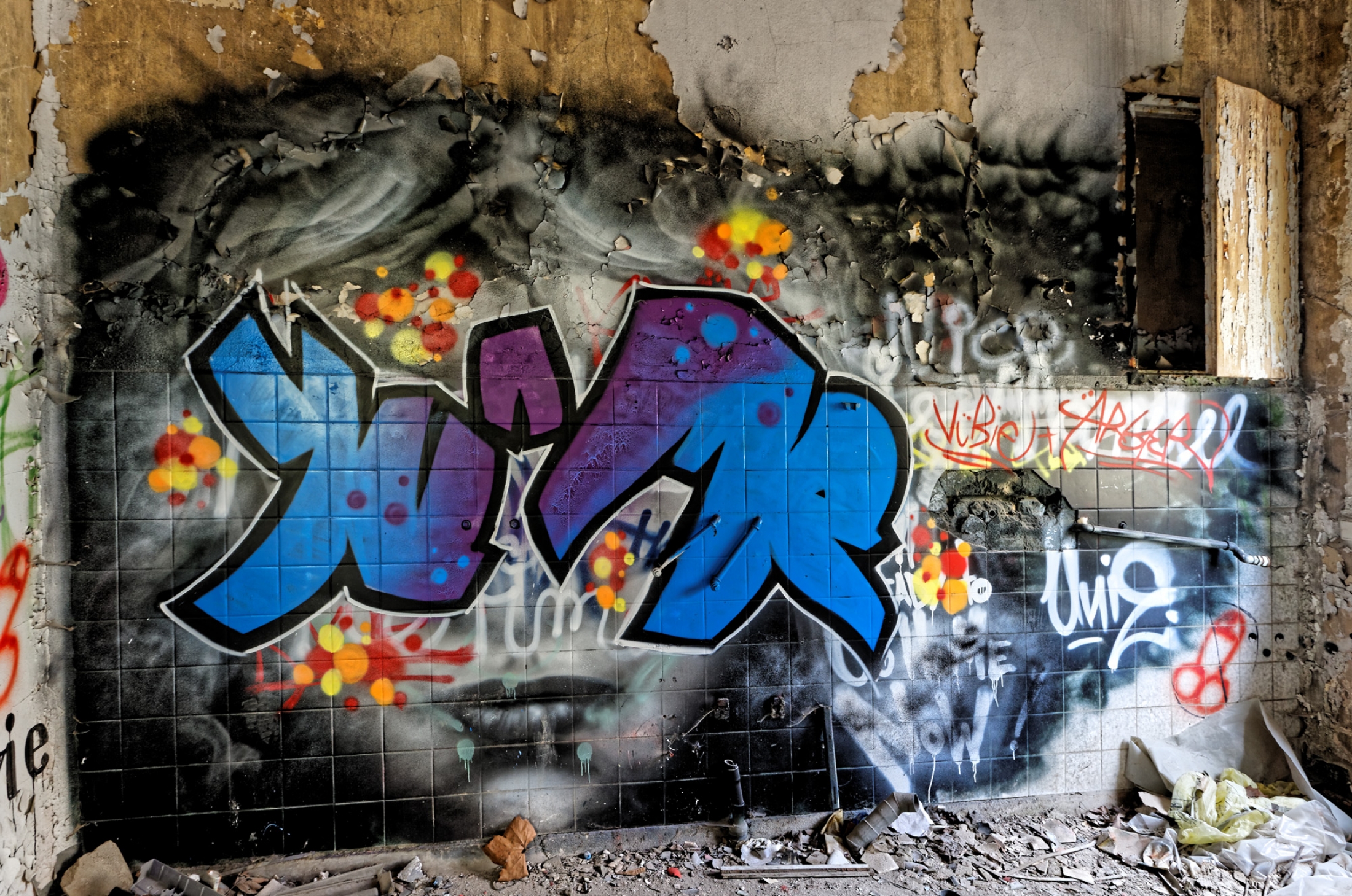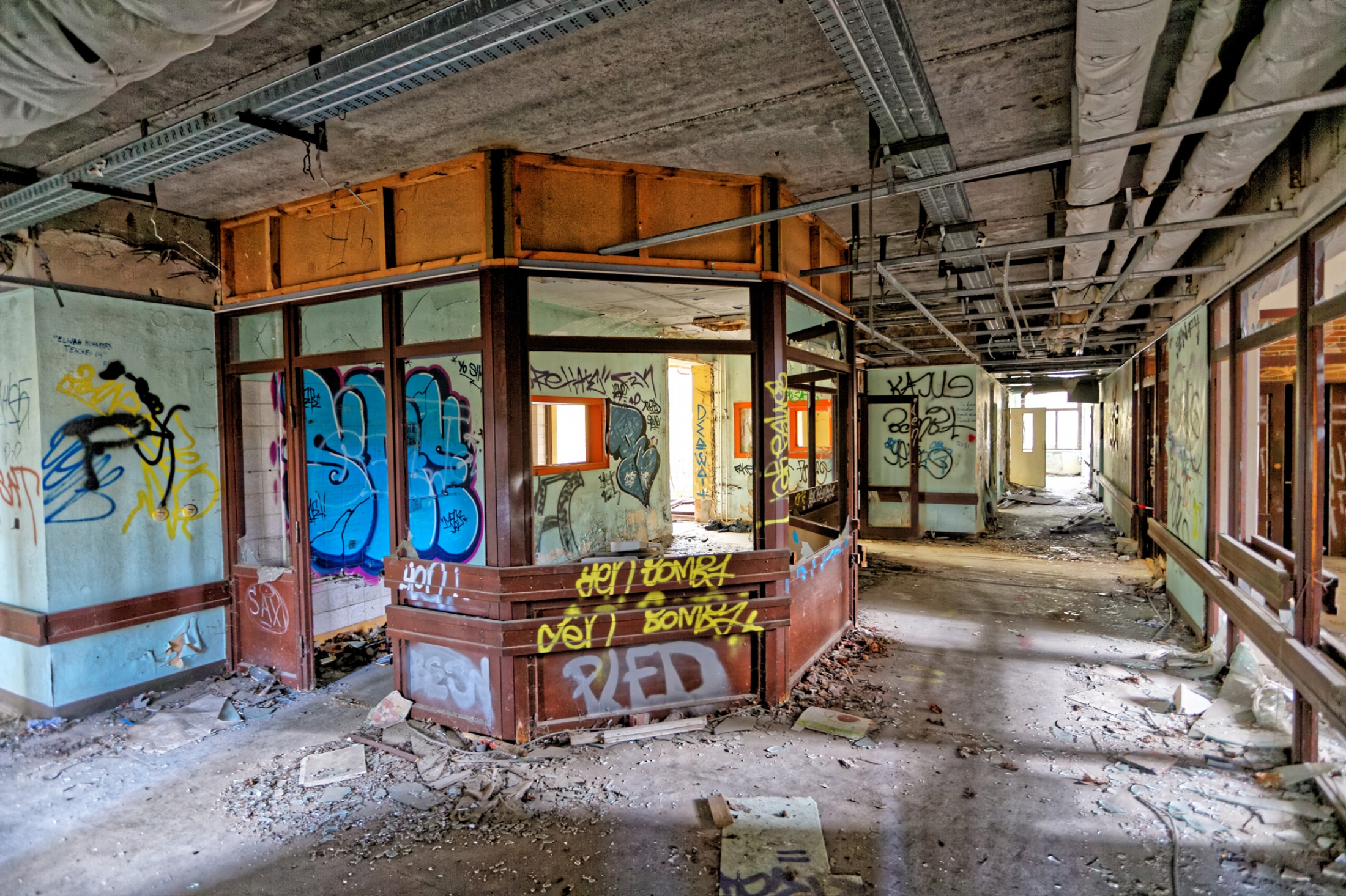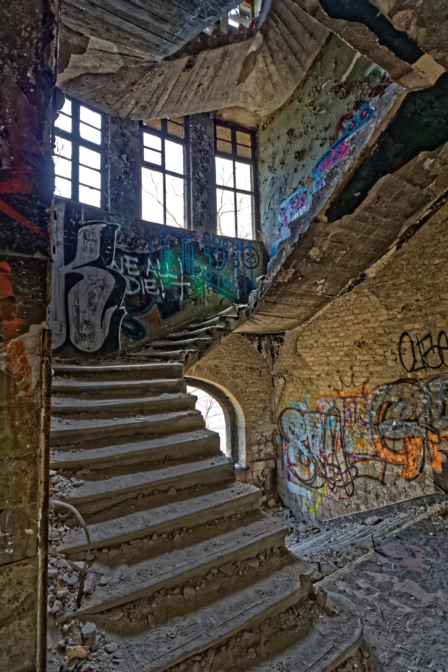 Once a huge childrens clinic now a shattered and abandoned place that was long time free accessible. For this reason Berlin´s artists and sprayers used this site to show their art. Even Graffiti artists from switzerland used this place to create their huge pictures.